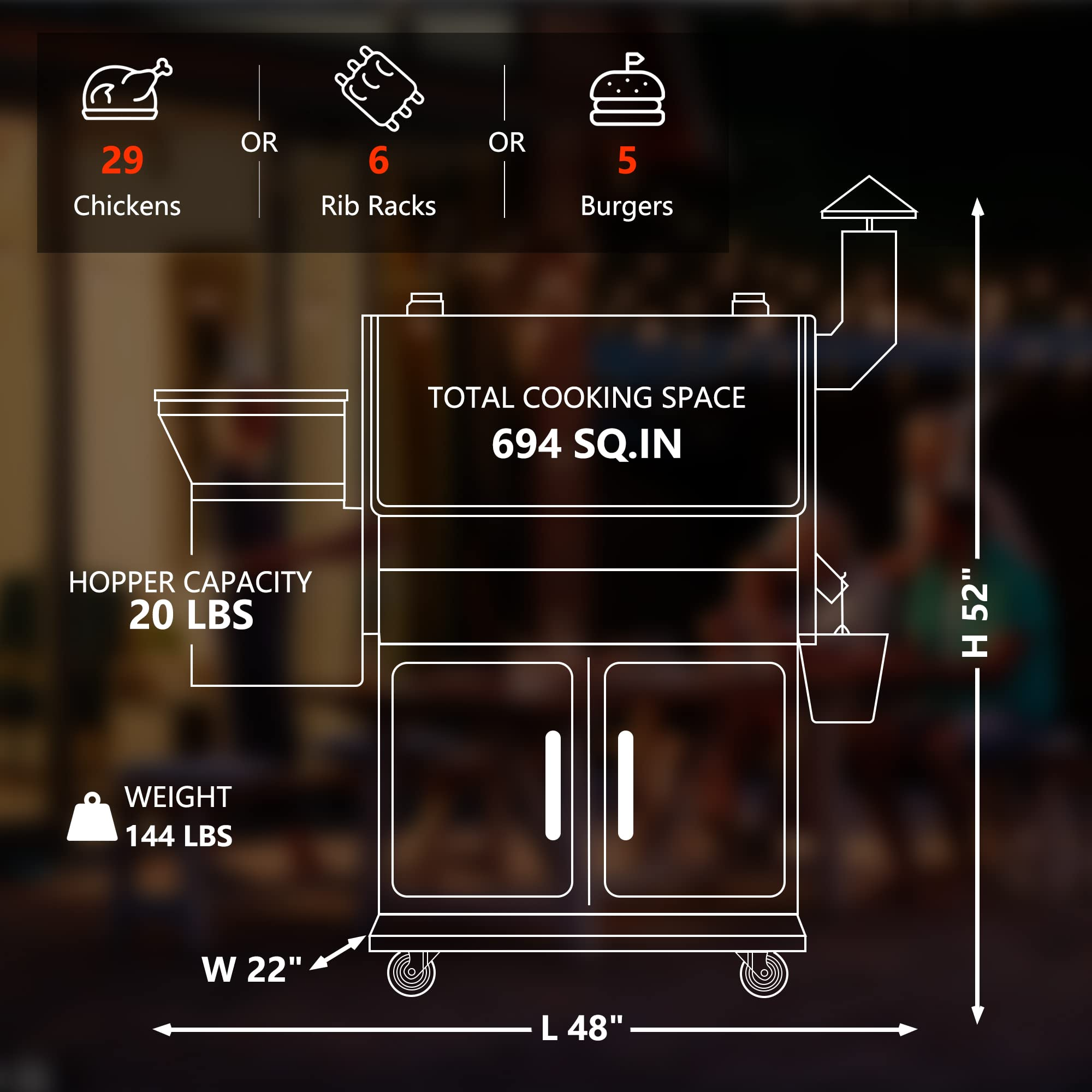 【Appliances】Wood Pellet Grill Smoker with Digital Controls, Cover, 700 sq. in. Cooking Area for Outdoor BBQ