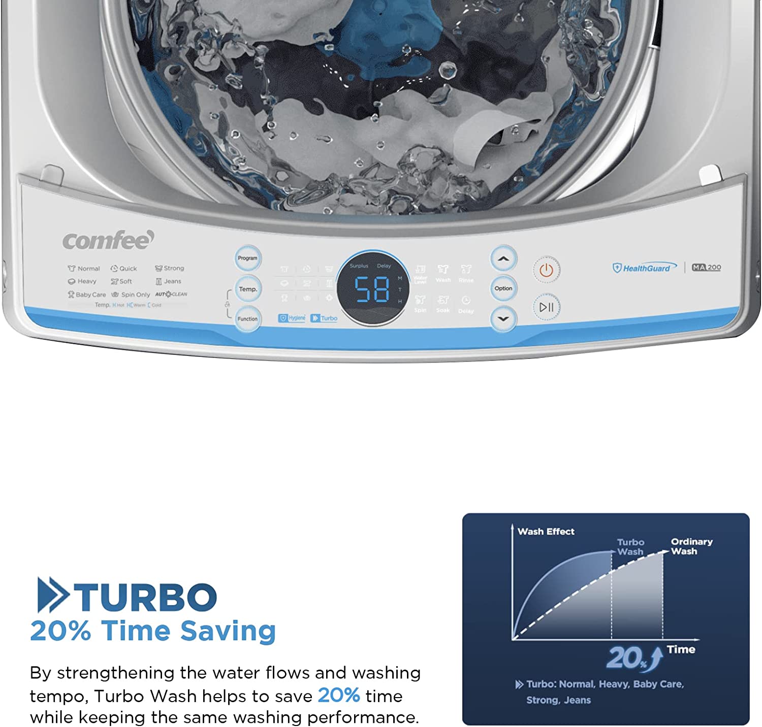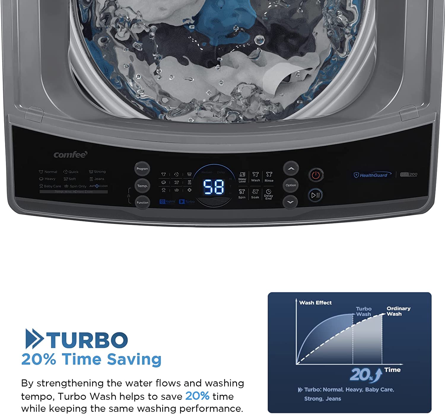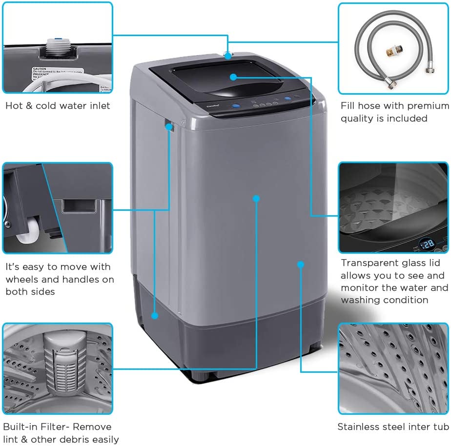 COMFEE’ Washing Machine 2.4 Cu.ft LED Portable Washing Machine and Washer Lavadora Portátil Compact Laundry, 8 Models, Environmentally Friendly, Child Lock for RV, Dorm, Apartment Magnetic Gray