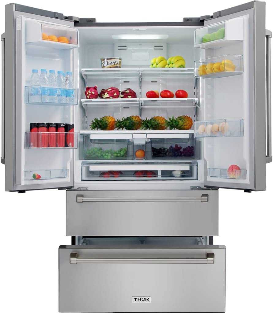 Thor Kitchen Thorkitchen HRF3601F Cabinet Depth French Door Refrigerator, Ice Maker, 36", Stainless Steel