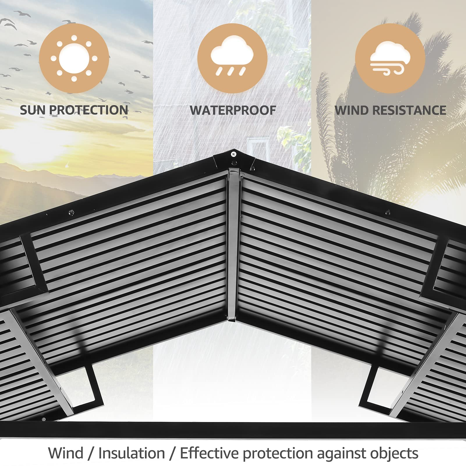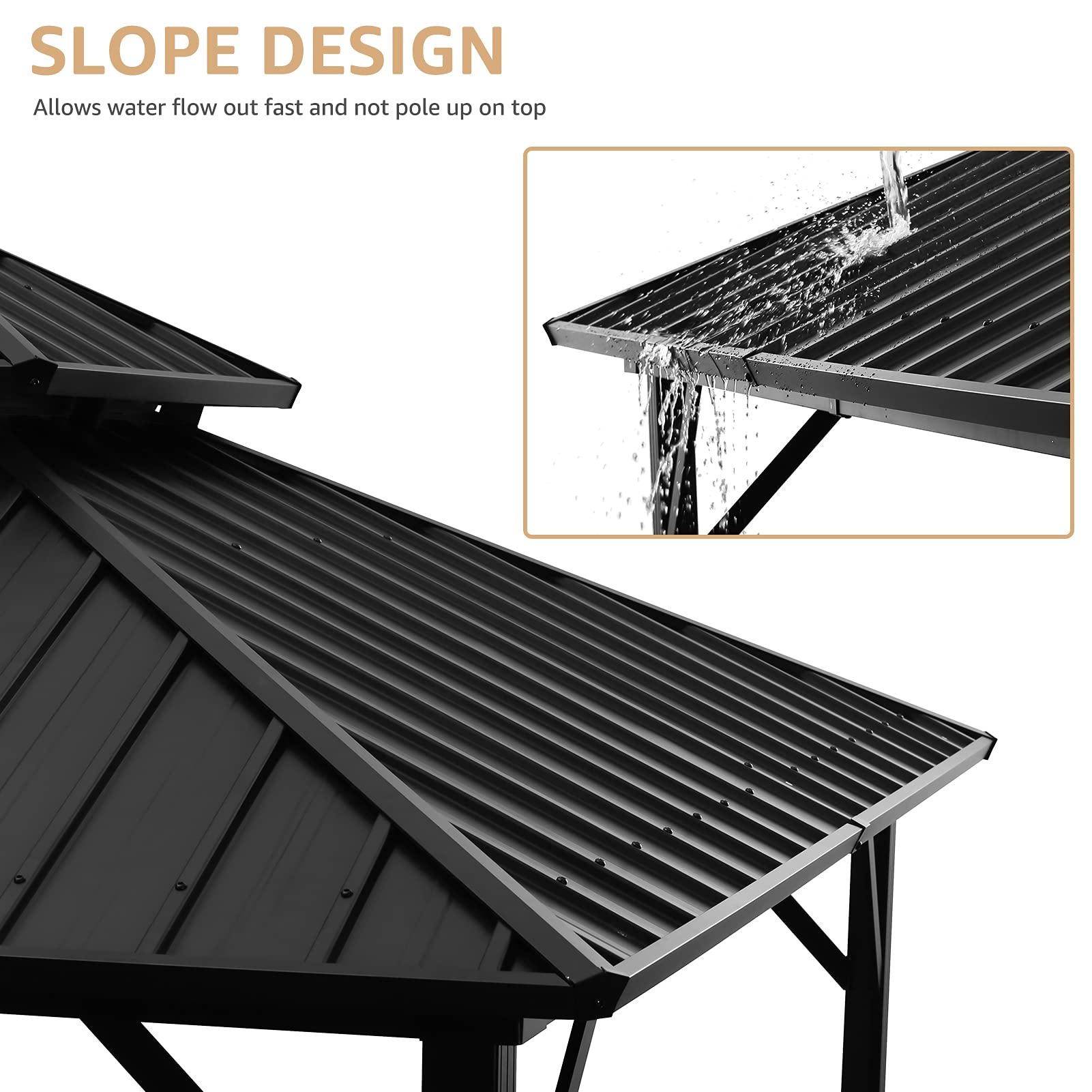 【Gazebo】10'x12' Outdoor Hardtop Polycarbonate Gazebo Canopy Curtains Aluminum Frame for Garden, Patio