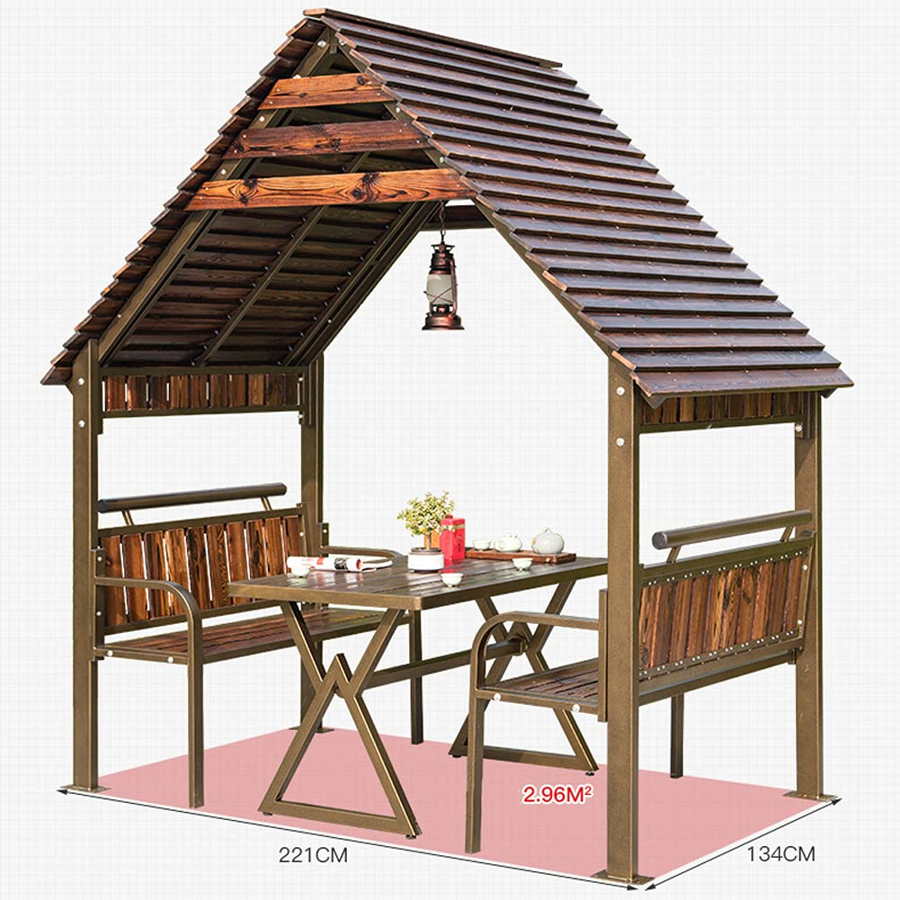 【Gazebo】Leisure Log Cabin Solid Wood Outdoor Patio Garden Pavilion Rain Proof Removable House