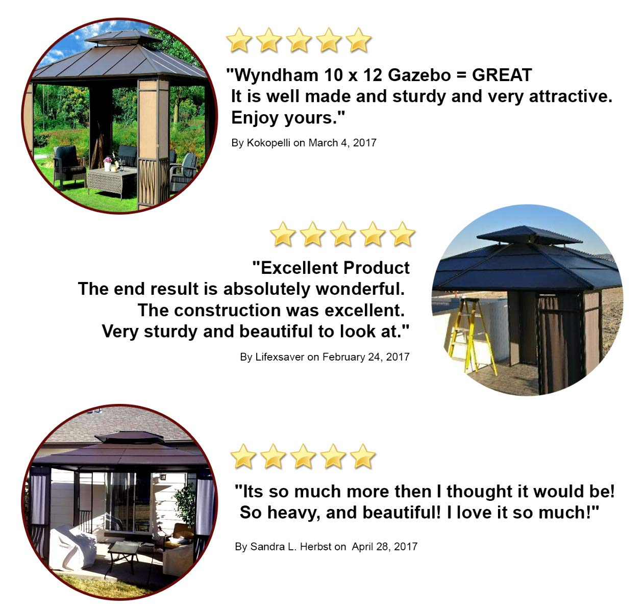 【Gazebo】Outdoor Patio 11x13 Cedar Framed Wood Gazebo with Brown Steel & Polycarbonate Hip Roof Hardtop