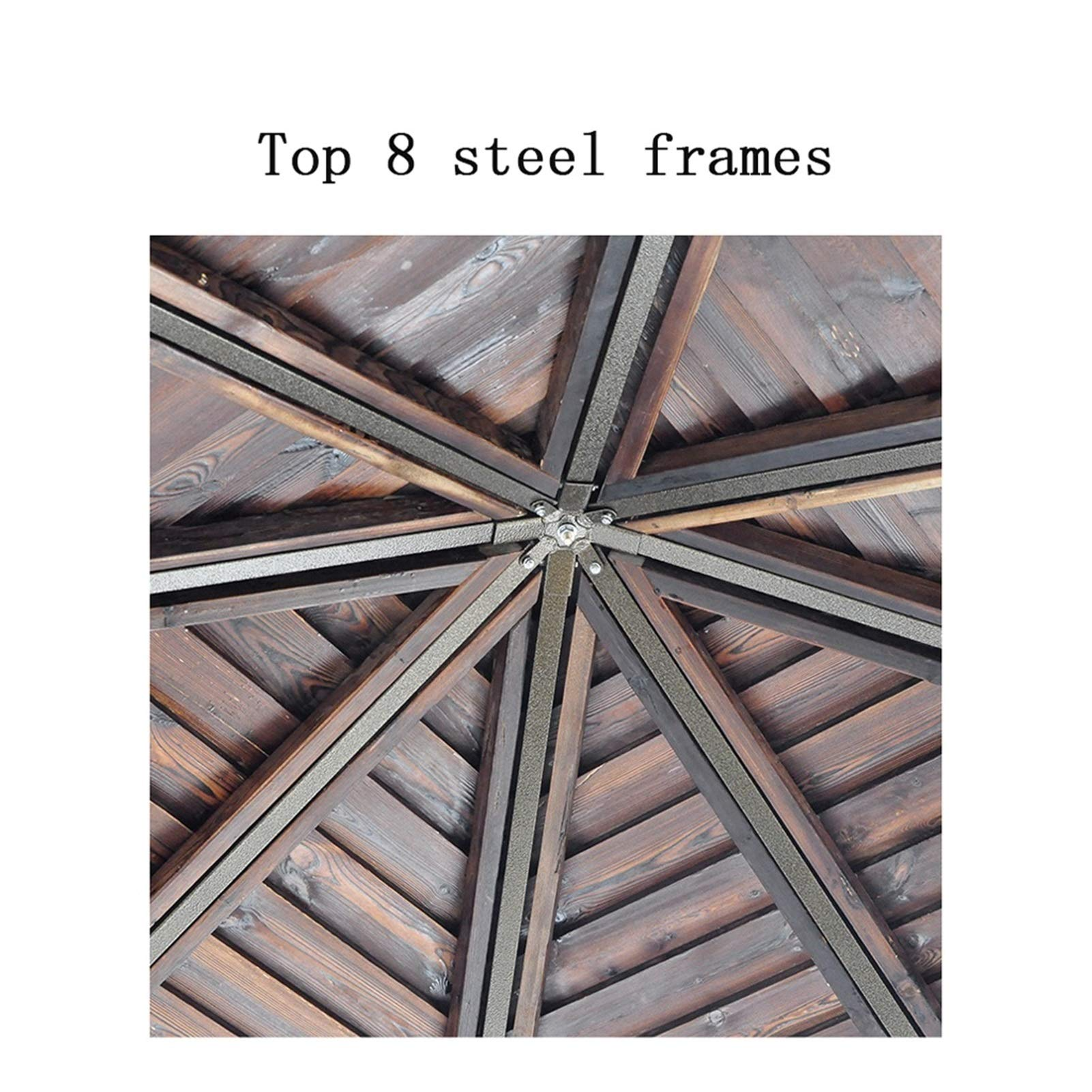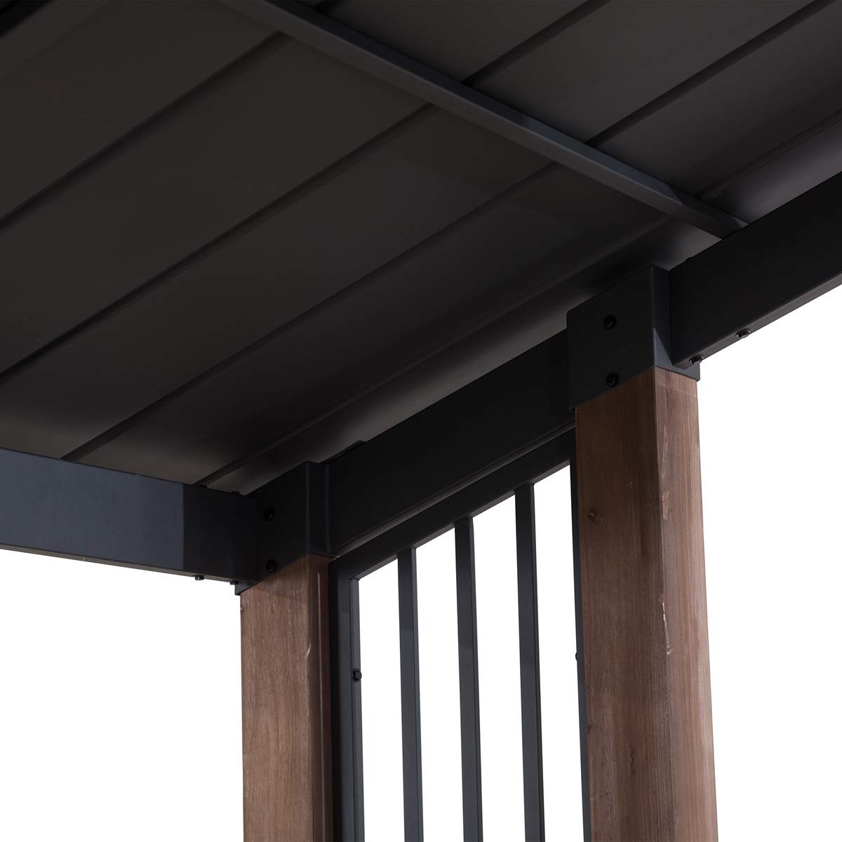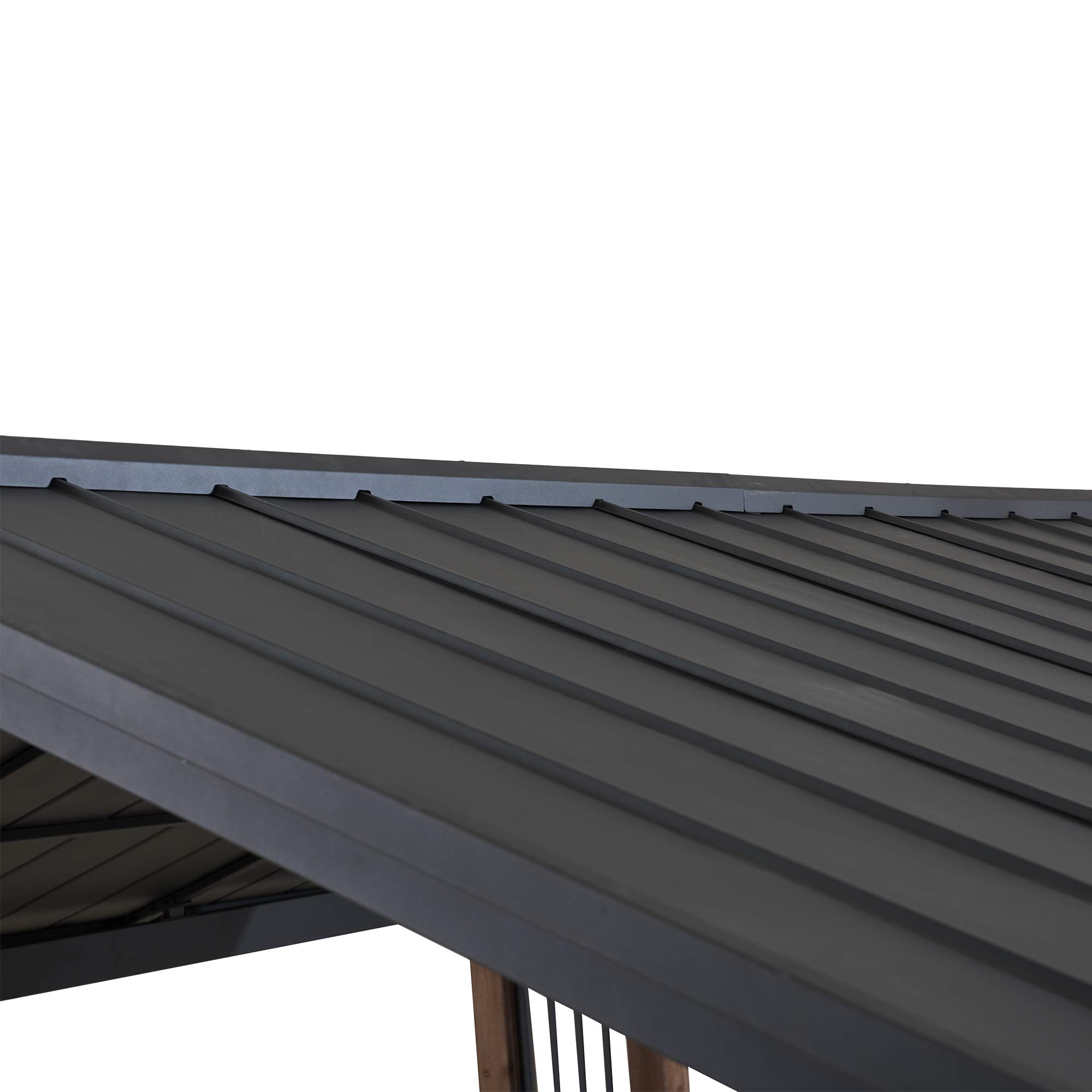 【Gazebo】11x13 Outdoor Cedar Frame Wood Gazebo with Black Steel Hardtop Roof for Patio, Garden, Backyard