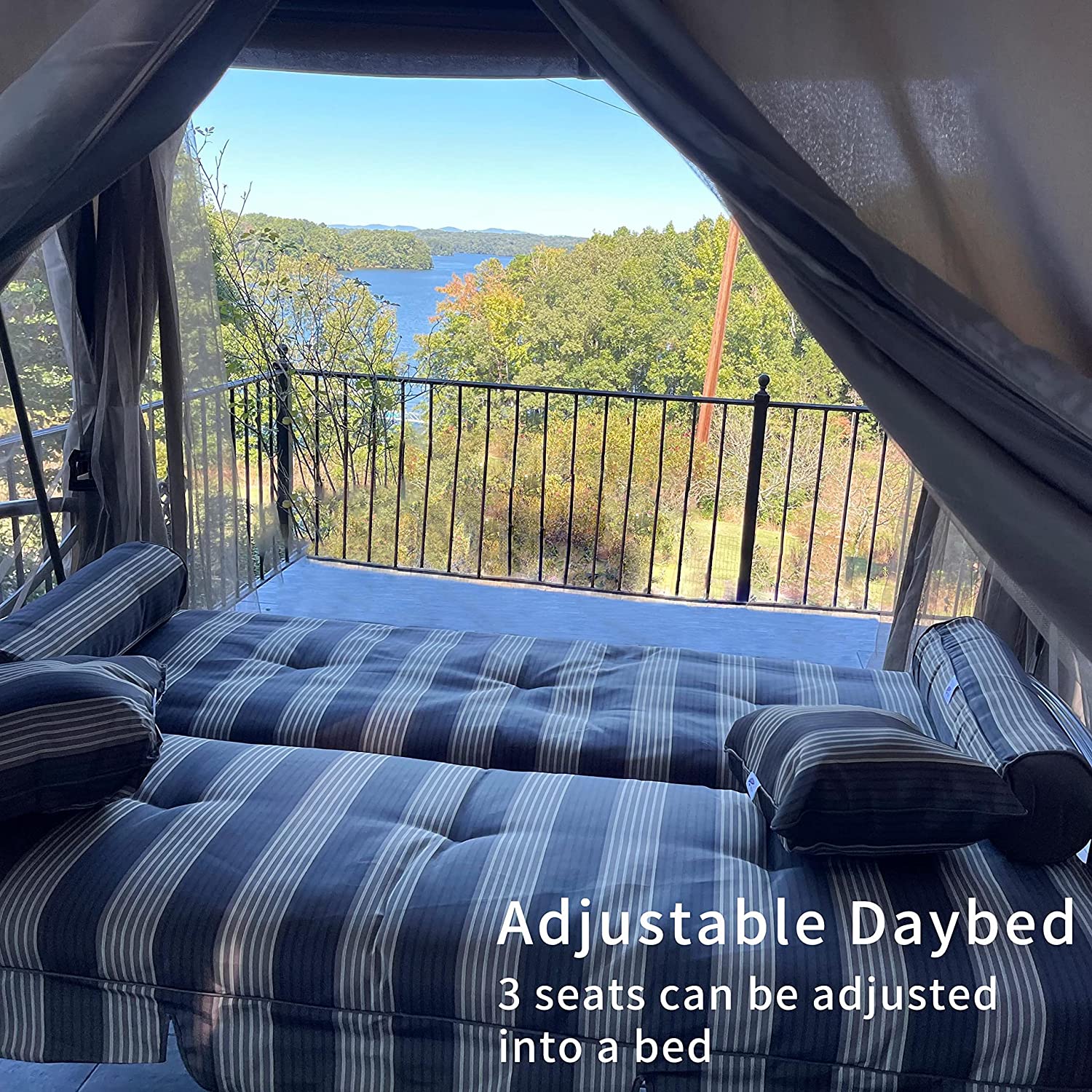 【Gazebo】【BS】3 Person Outdoor Patio Porch Swing Gazebo with Netting & Gazebo Curtains