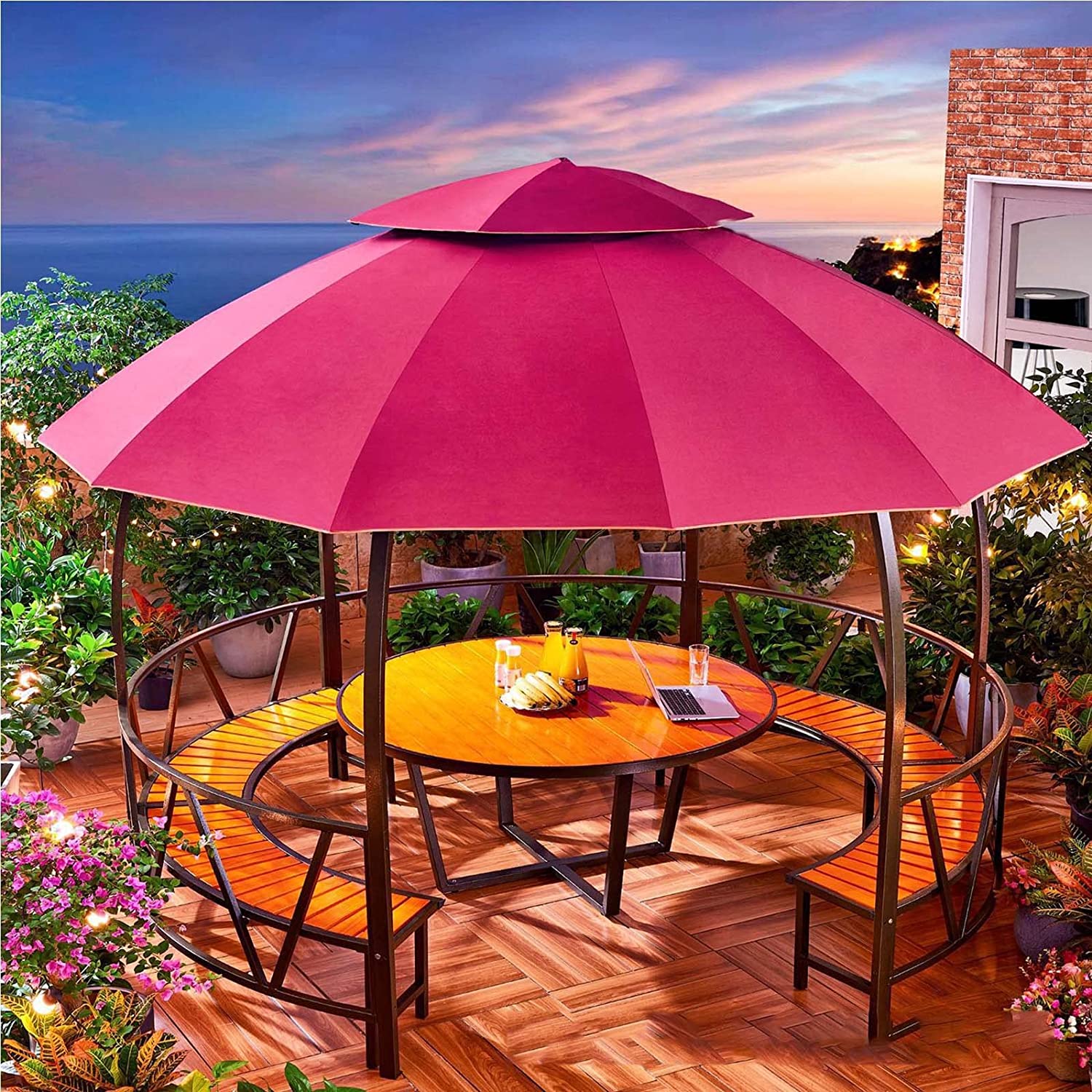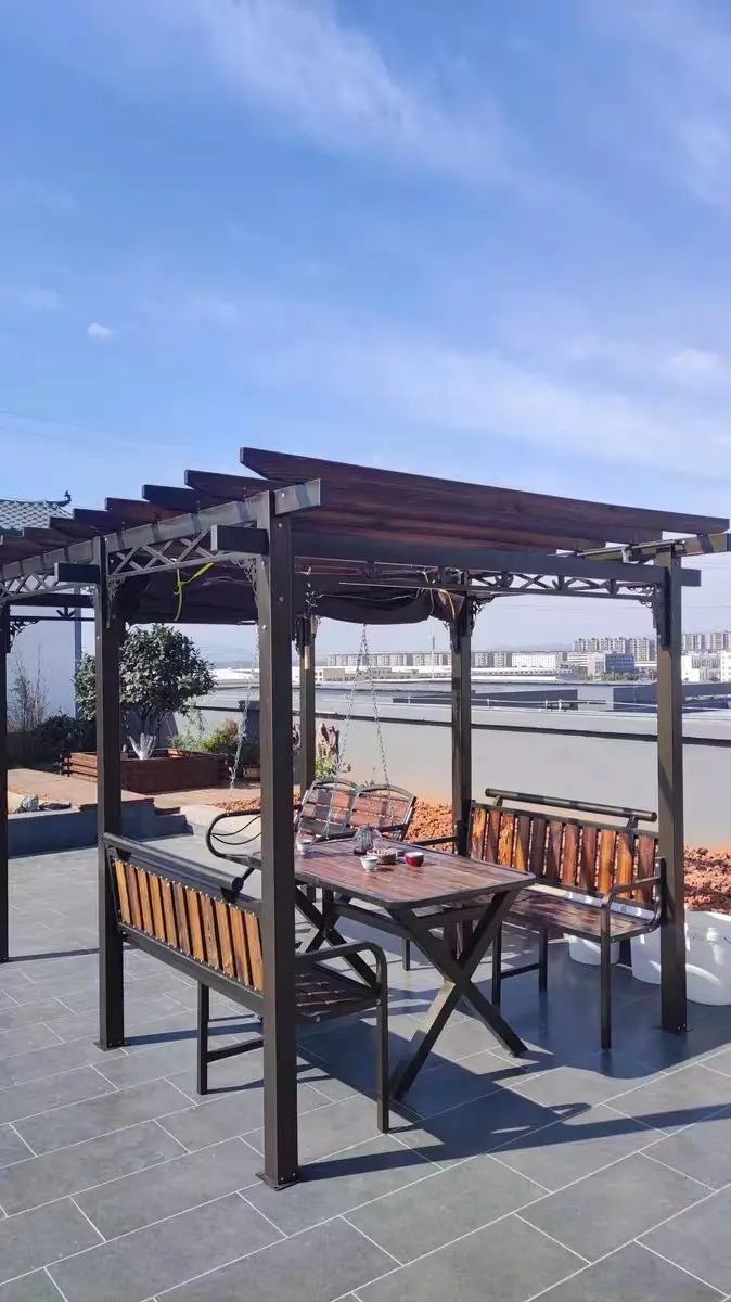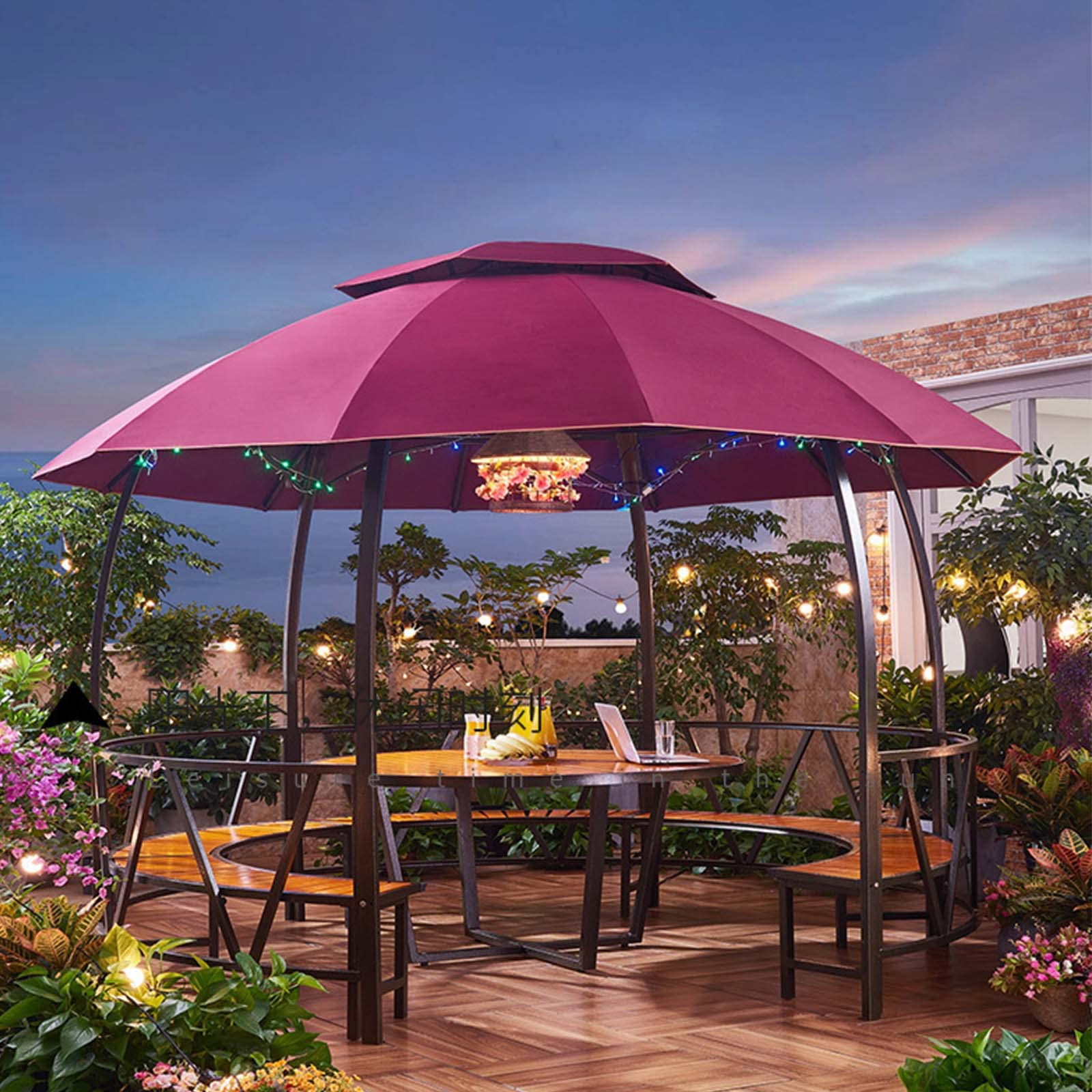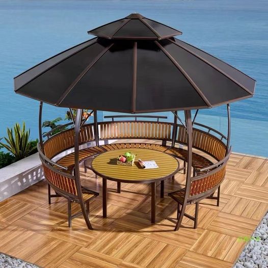 【Gazebo】Double Top Gazebos for Gardens, Castle Pergola with Chair & Table for Outdoor Courtyard Garden Villa