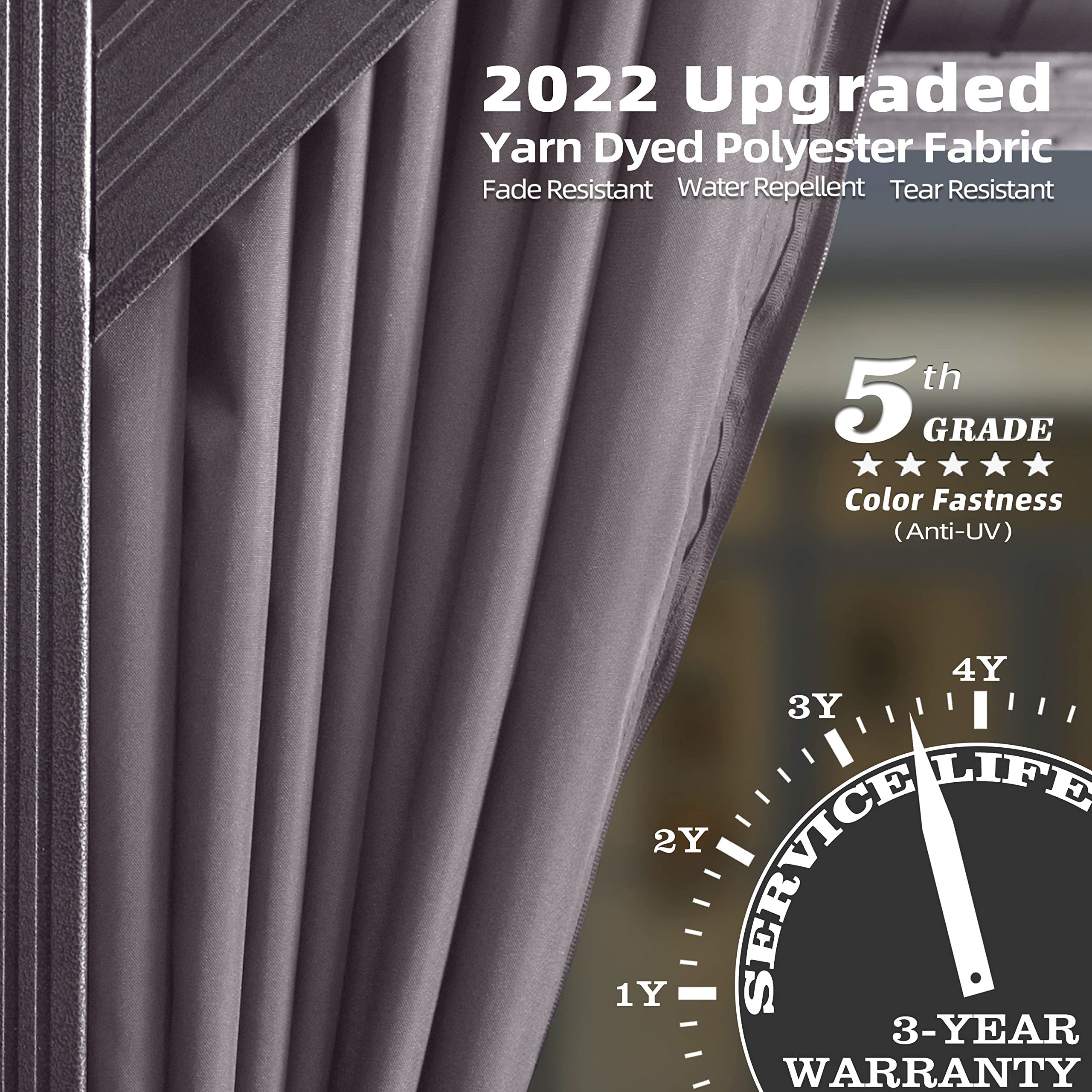 【Home&Garden】【BS】9.5x11 Steel Arched Pergola with 2-Tone Adjustable Shade, Tan & Brown