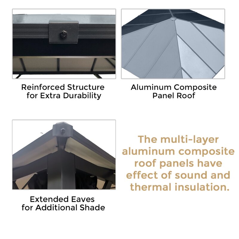 【Gazebo】【BS】10x10 ft Hardtop Gazebo, Outdoor Canopy Gazebo with Netting & Shaded Curtains for Patio