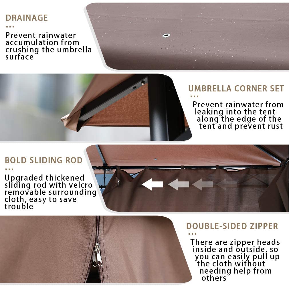 【Gazebo】10x10 ft Hardtop Gazebo, Outdoor Canopy Gazebo with Netting & Shaded Curtains for Patio