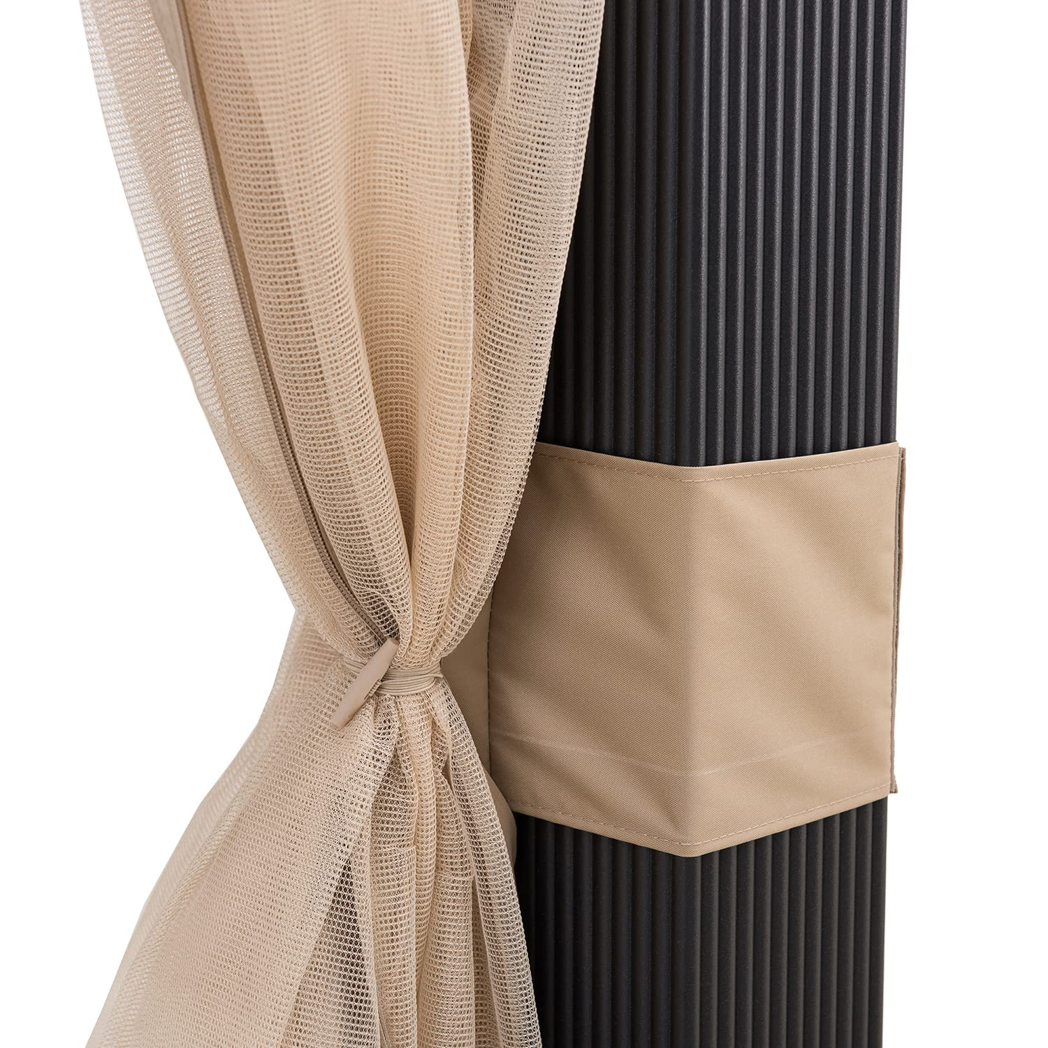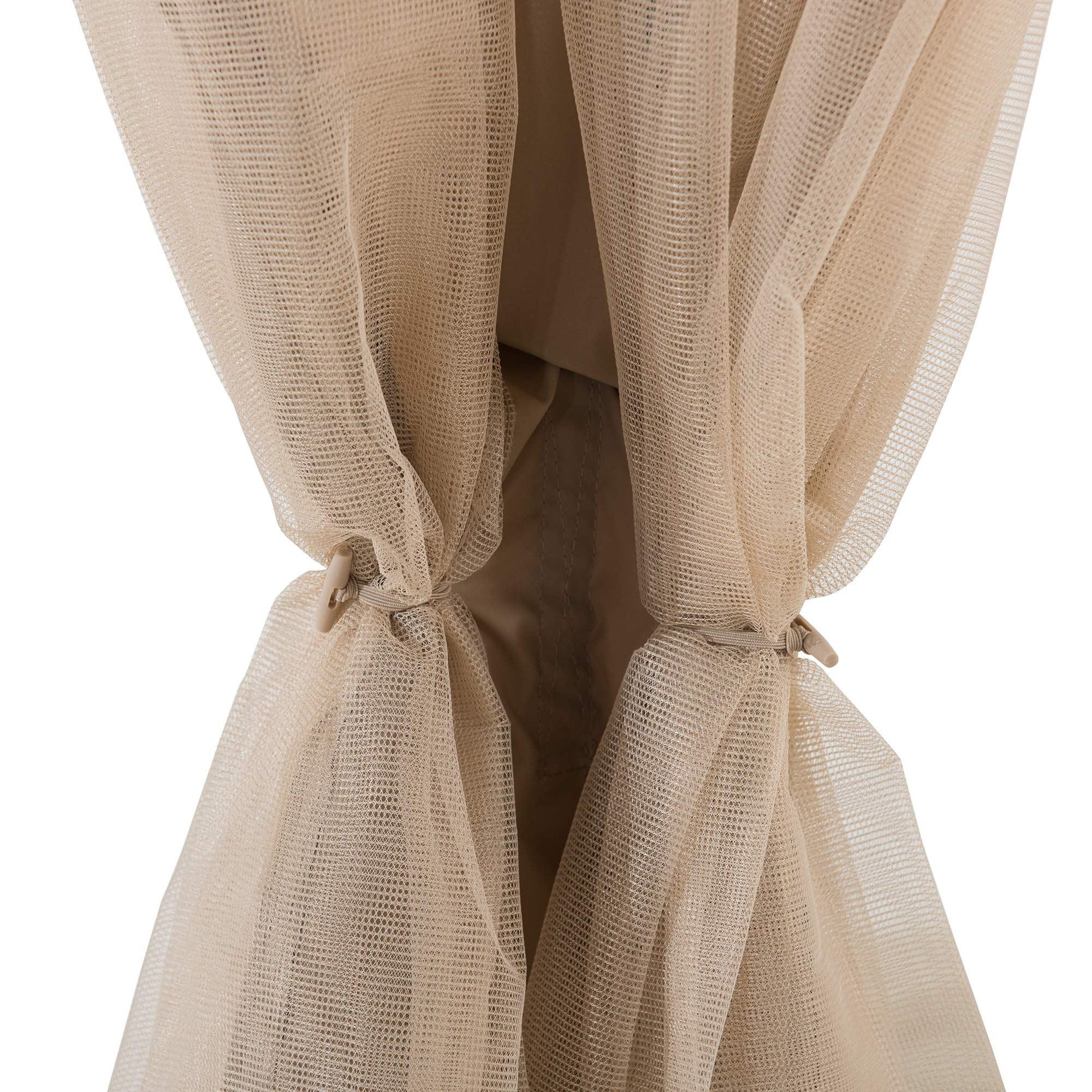 【Gazebo】10x10 Ft Patio BBQ Gazebo w/Side Wall & Mosquito Netting for Outdoor Party Activities, Beige