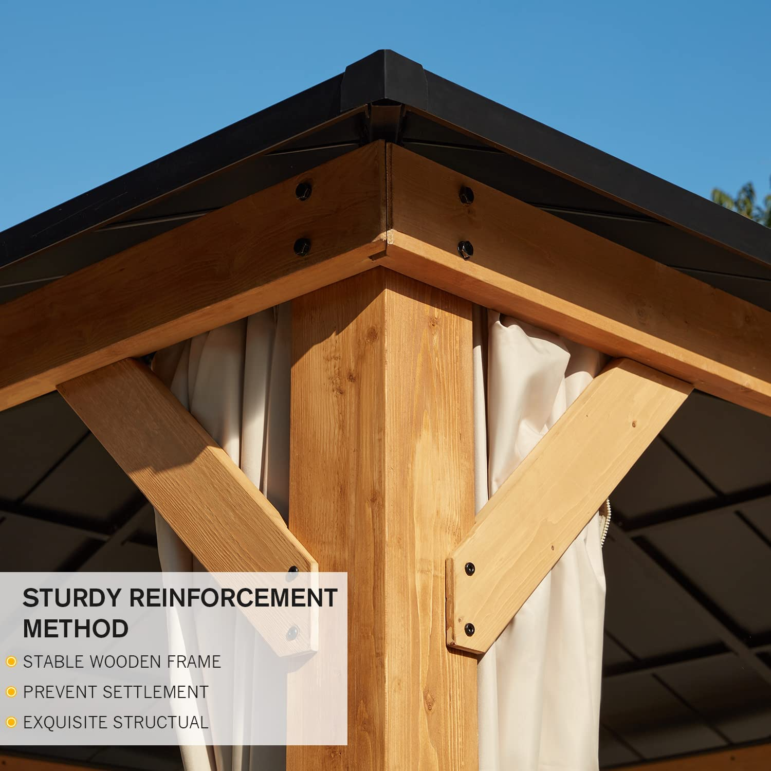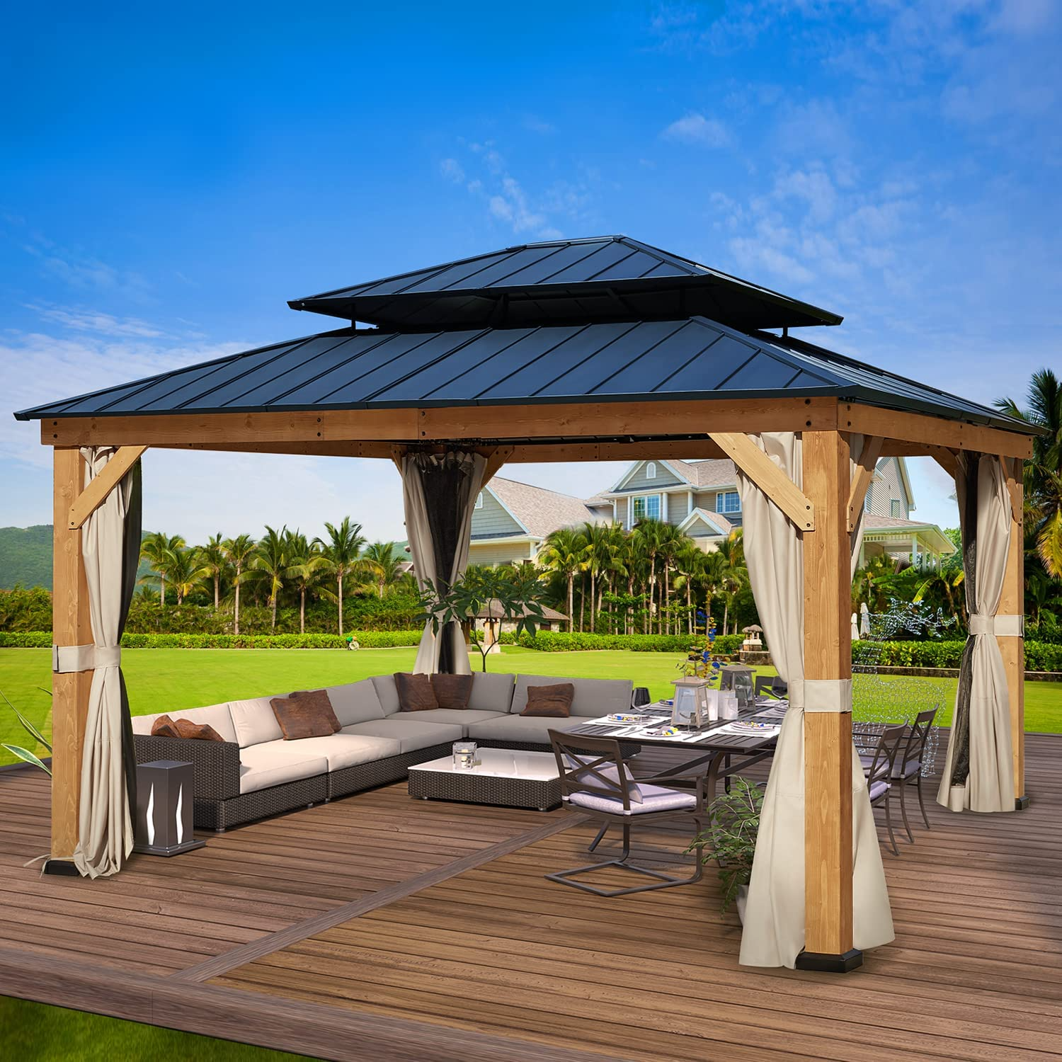 【Gazebo】13x13 Cedar Framed Octagon Wood Gazebo with Brown Double Tiered Steel Hardtop Roof & Ceiling Hook