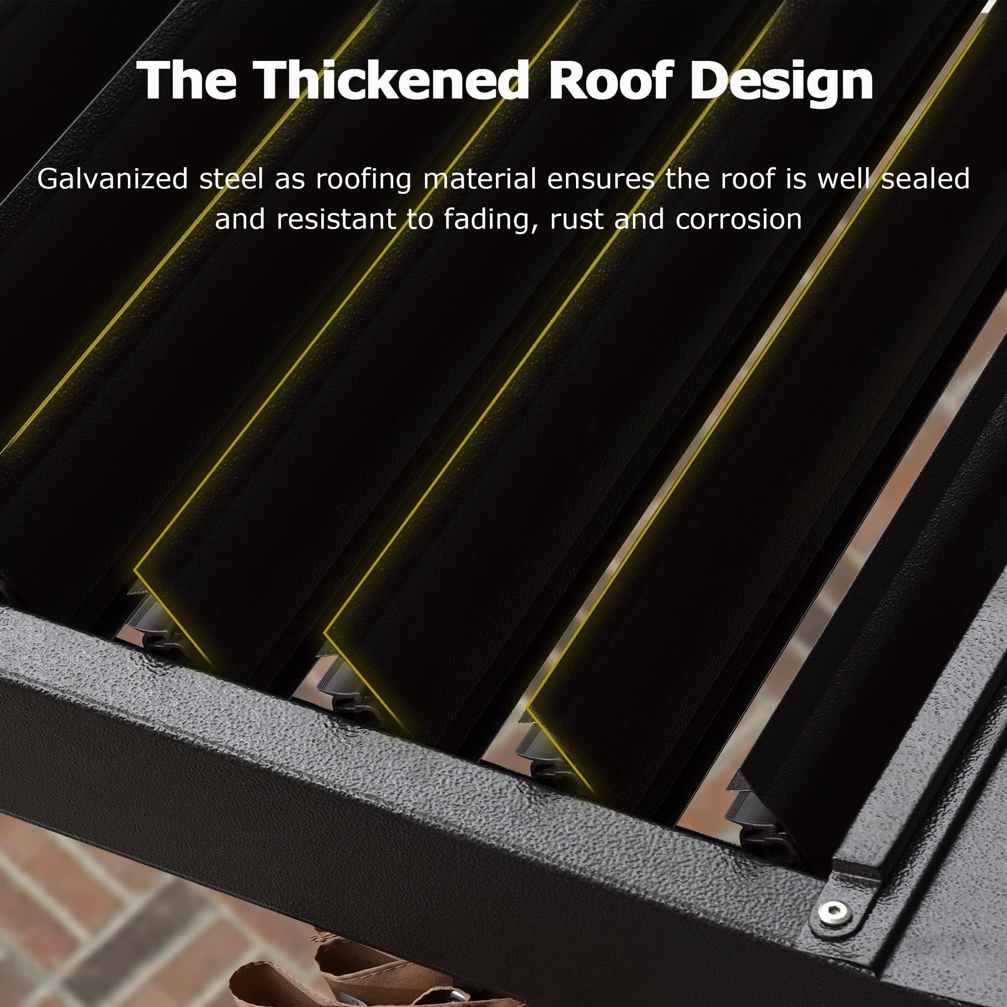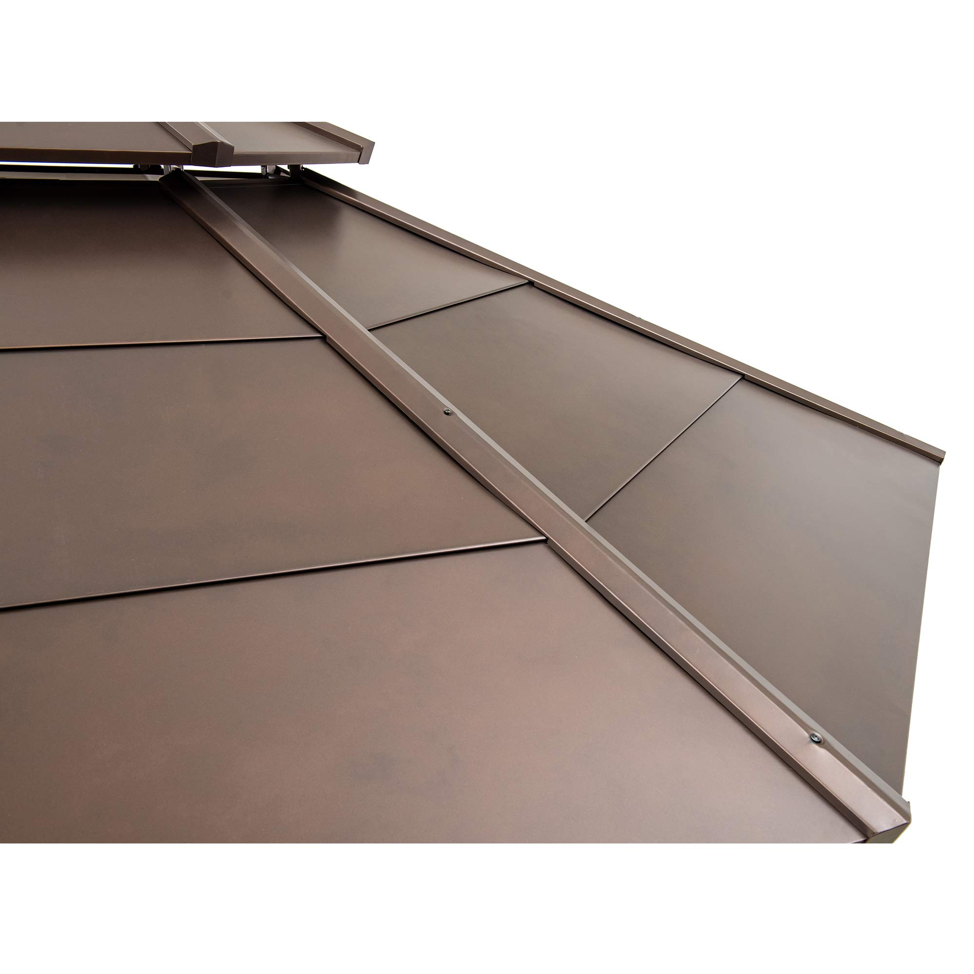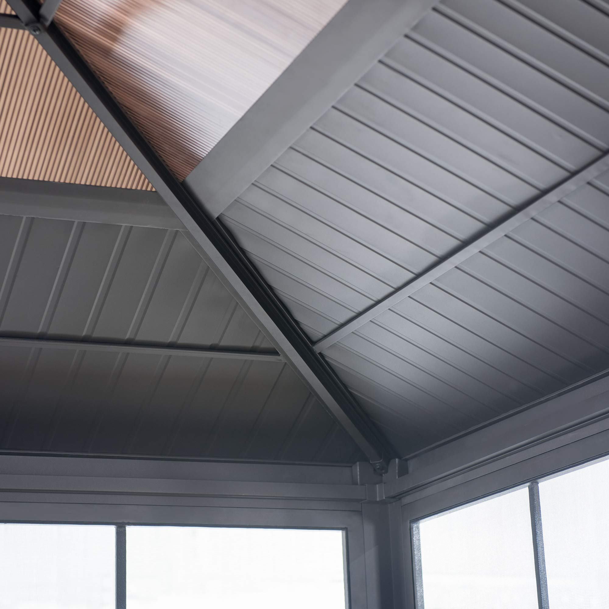 【Home&Garden】Outdoor Sunroom 12x14 ft. Steel Screenhouse with 2-Tier Hardtop Hot Tub Gazebo, Brown