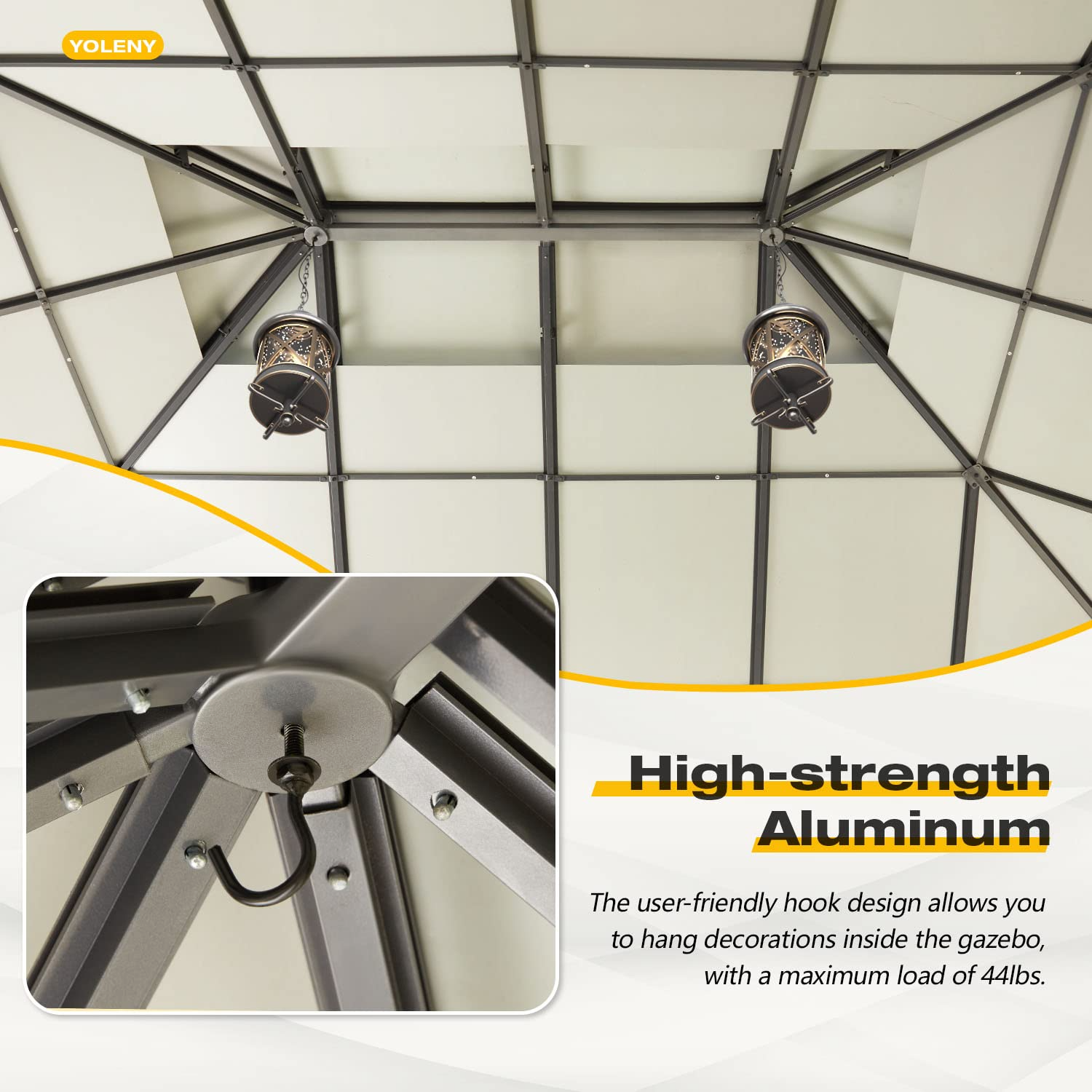 【Gazebo】12' x 16' Hardtop Gazebo, Permanent Outdoor Aluminum Patio Gazebo with Composite Double Roof