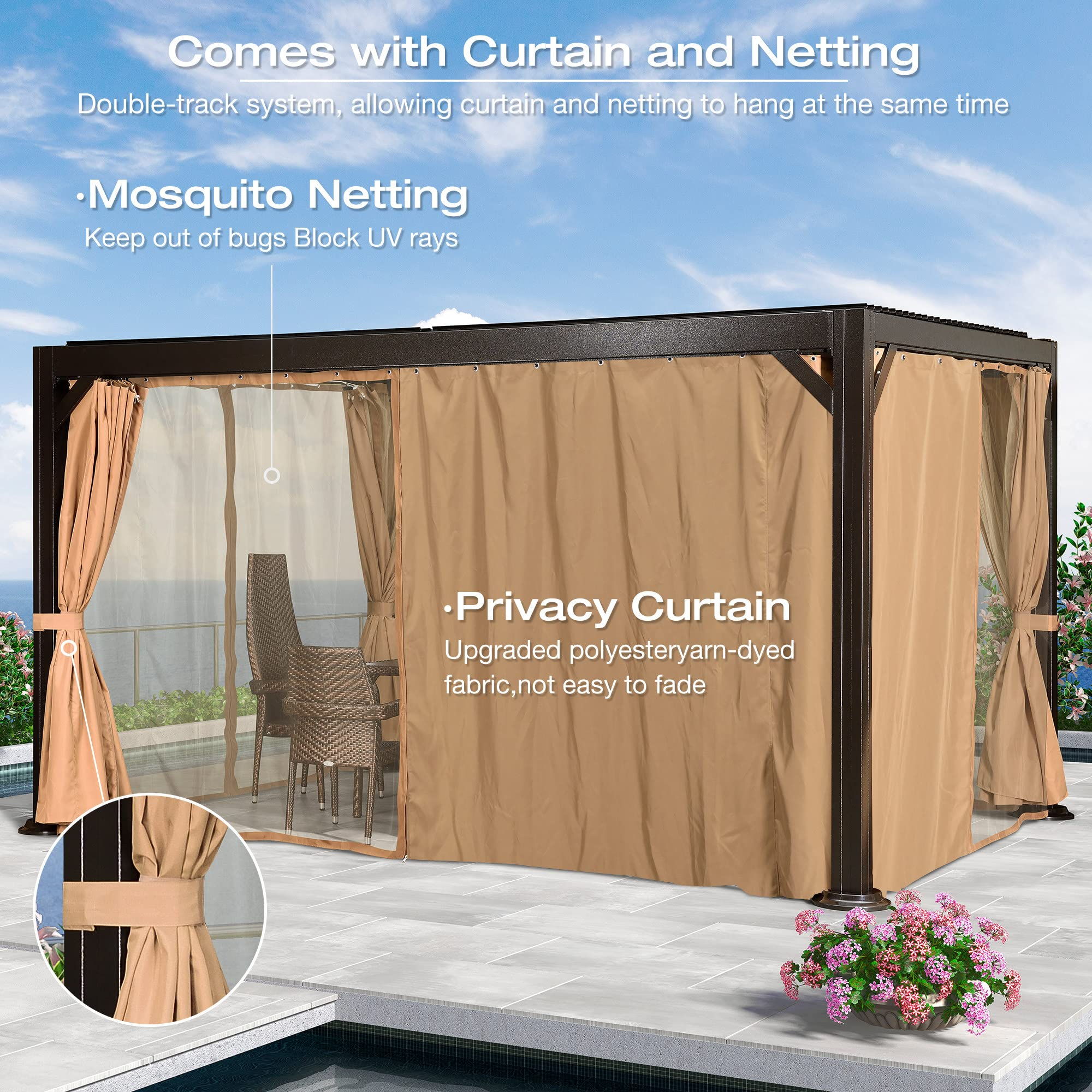 【Gazebo】13'x13' Gazebo Tent Outdoor Pop up Gazebo Canopy Shelter with Nets, Brown