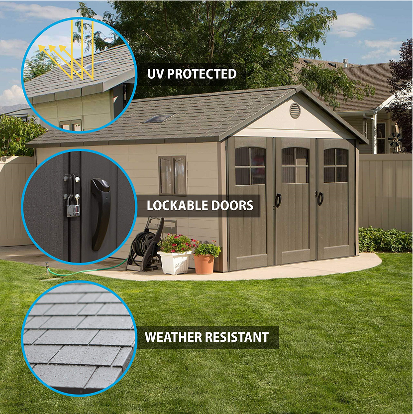 【Storage Shed】10'x12' Resin Outdoor Storage Shed with Shutters, Windows & Skylights for Garden Patio