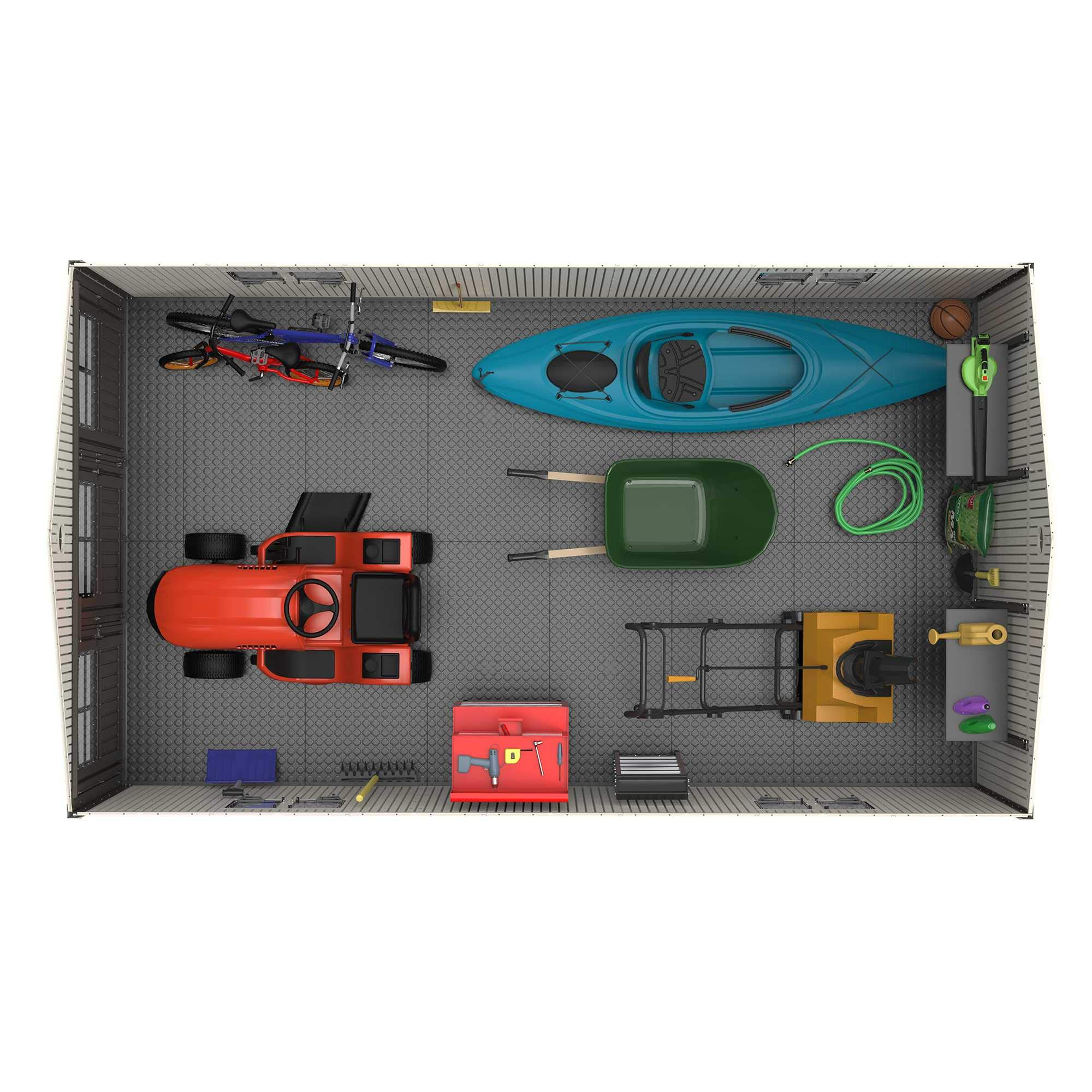 【Storage Shed】7x7 PLUS Plastic Garden Shed with Heavy-Duty Plastic Floor & Fixed Window on Doors