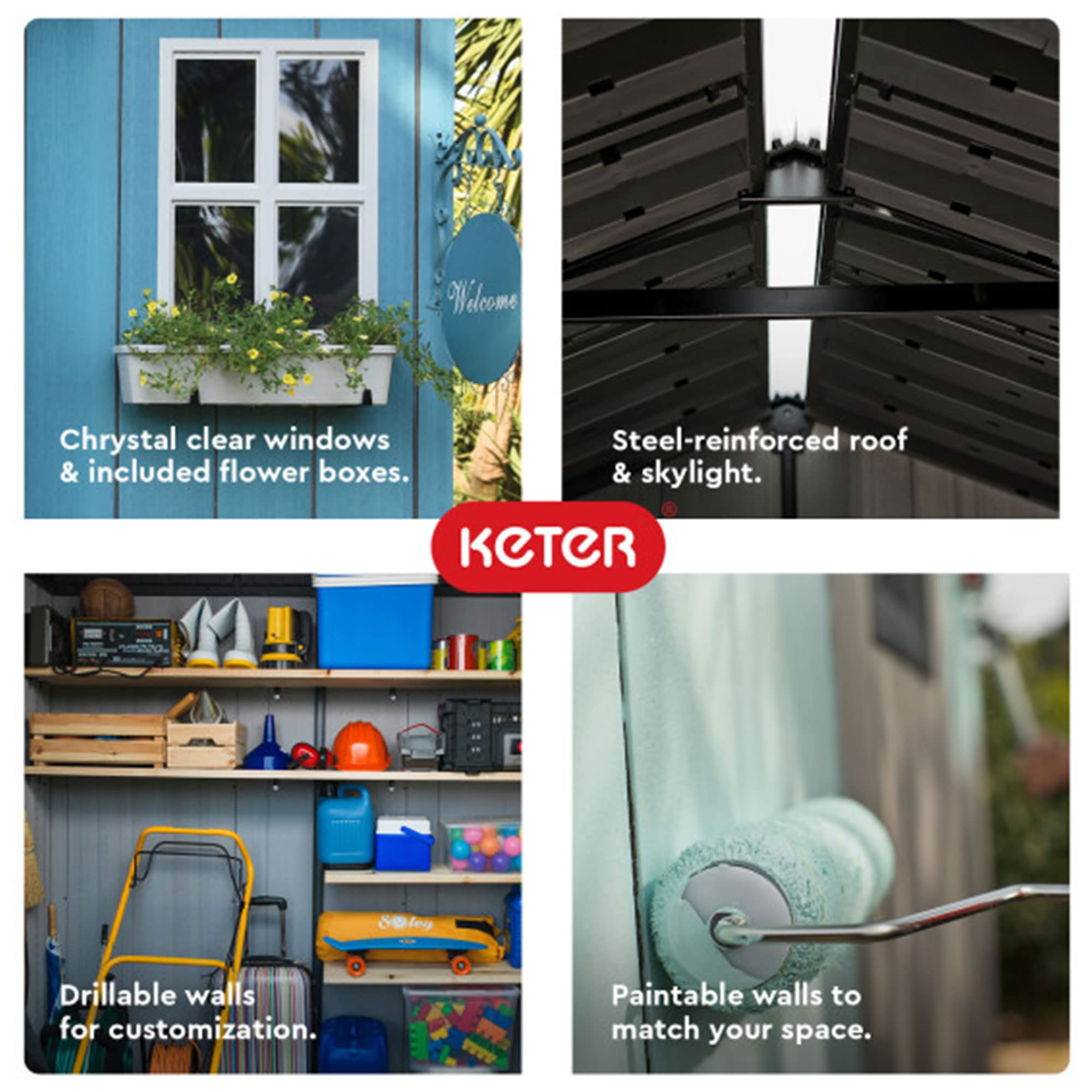 【Storage Shed】【BS】10'x12' Resin Outdoor Storage Shed with Shutters, Windows & Skylights for Garden Patio