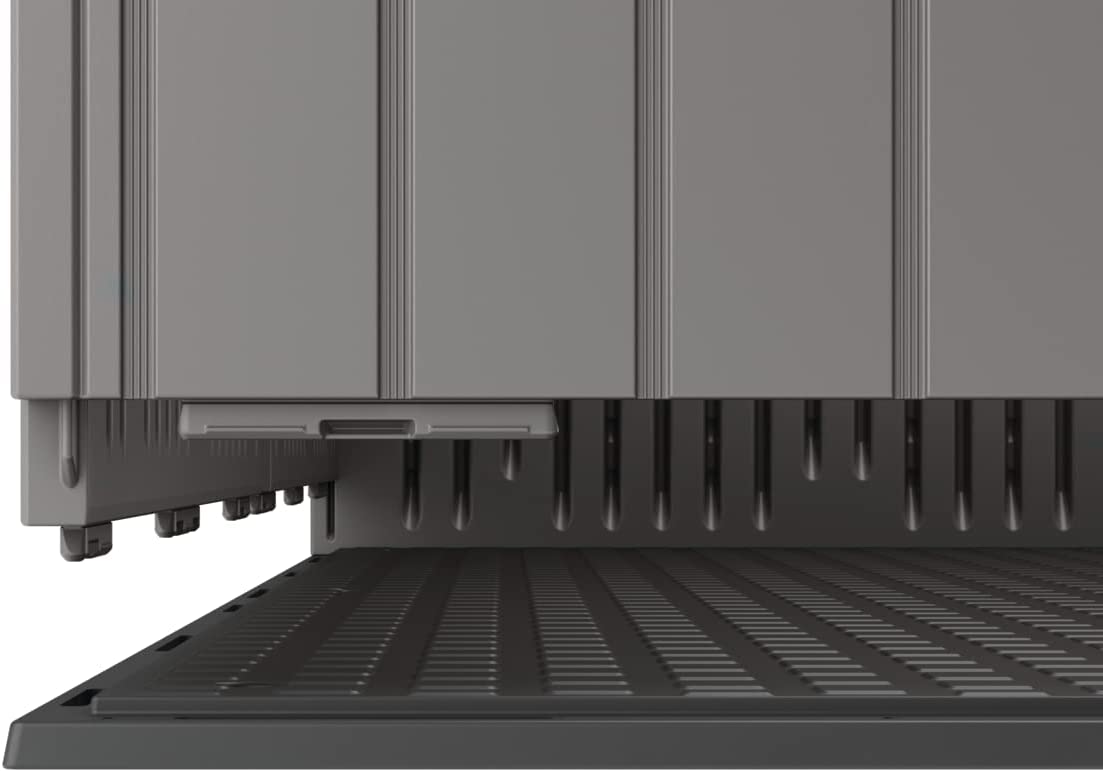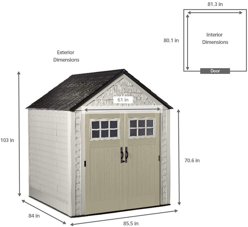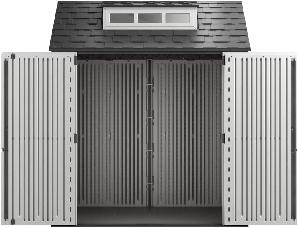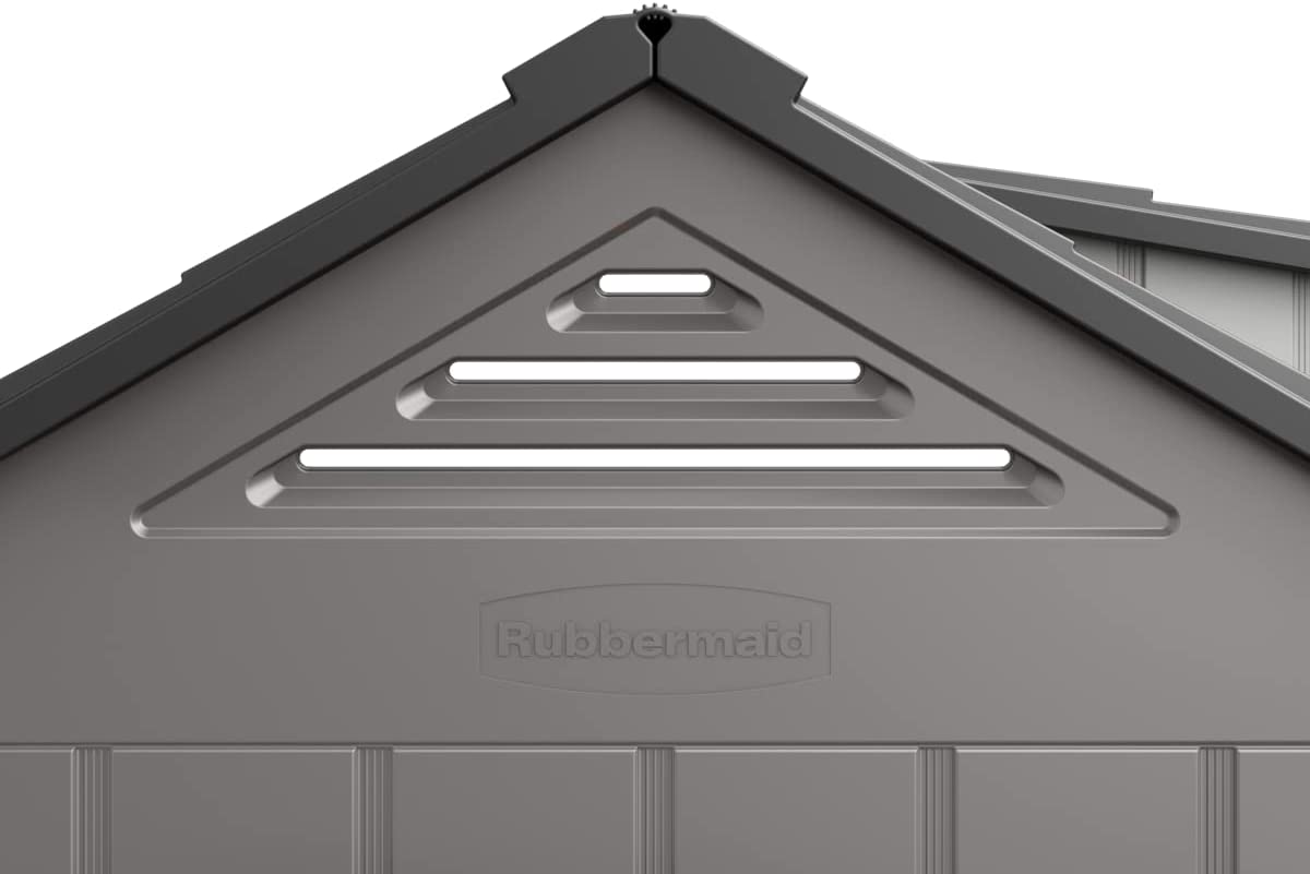 Rubbermaid Resin Weather Resistant Outdoor Storage Shed, 7 x 7 ft., Simple Gray/Onyx, for Garden/Backyard/Home/Pool