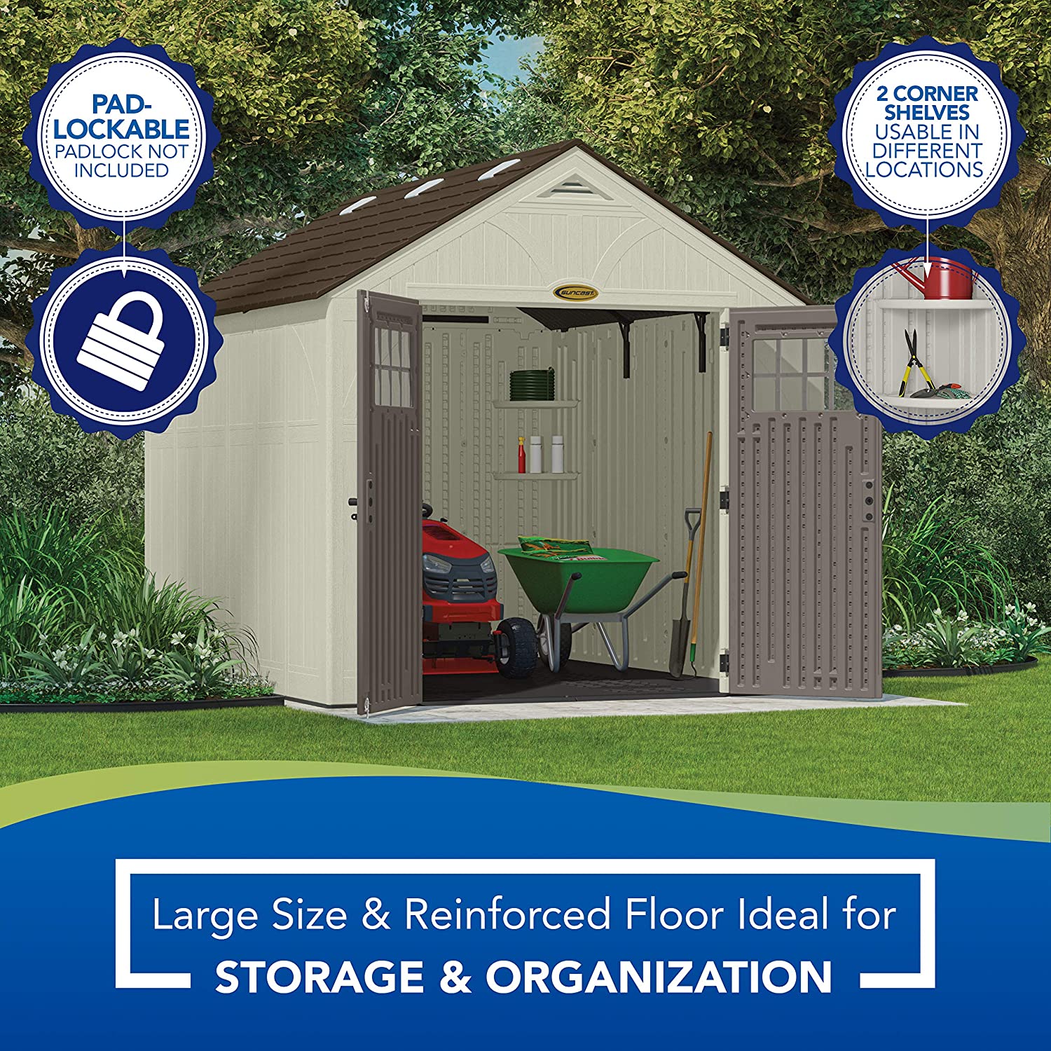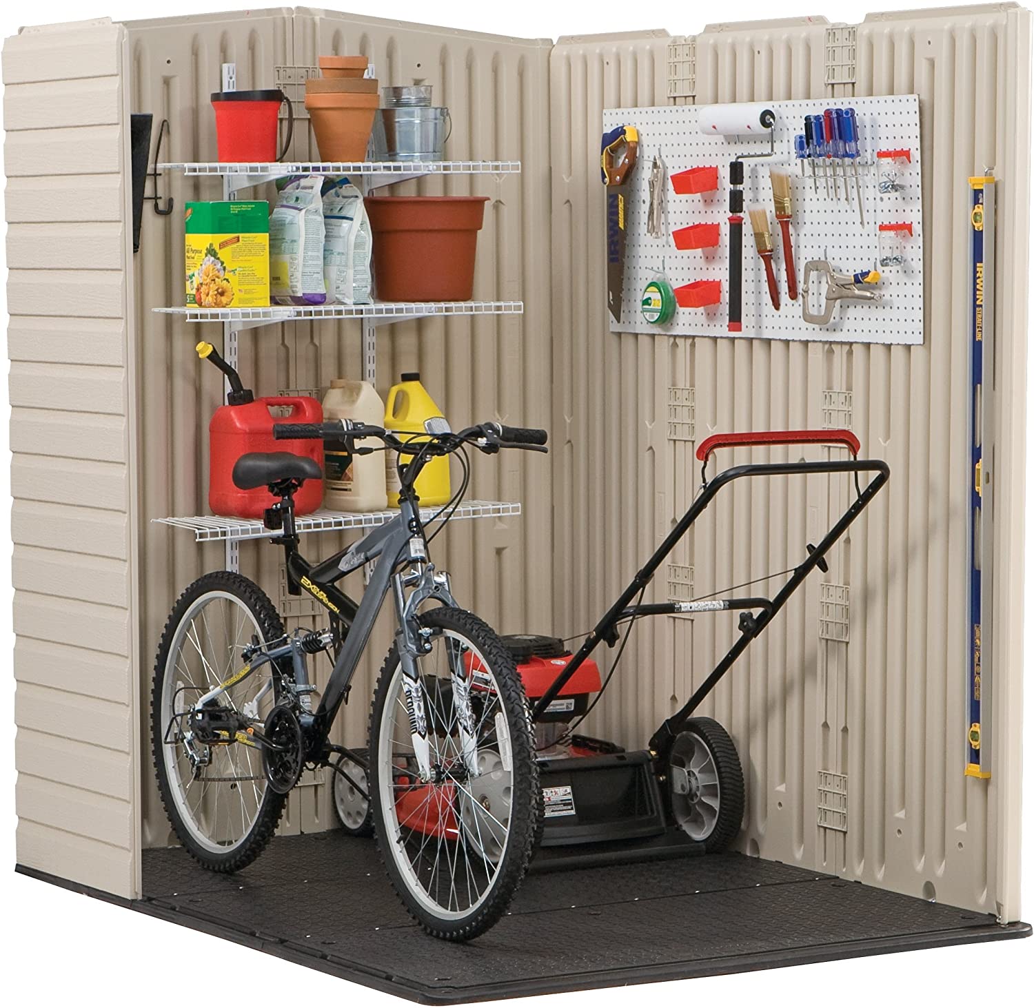Rubbermaid Large Plastic Vertical Resin Weather Resistant Storage Shed, 5 x 6 Ft., Sandstone, for Garden/Backyard/Home/Pool/Bikes/Lawn Mowers