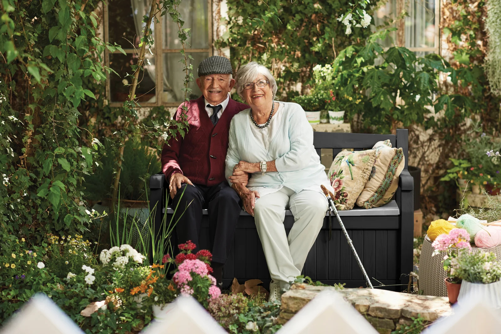 【Storage Shed】Solana Chic Elegant Wood-Look Storage Bench with Comfy Durable Weather Resistance Sitting