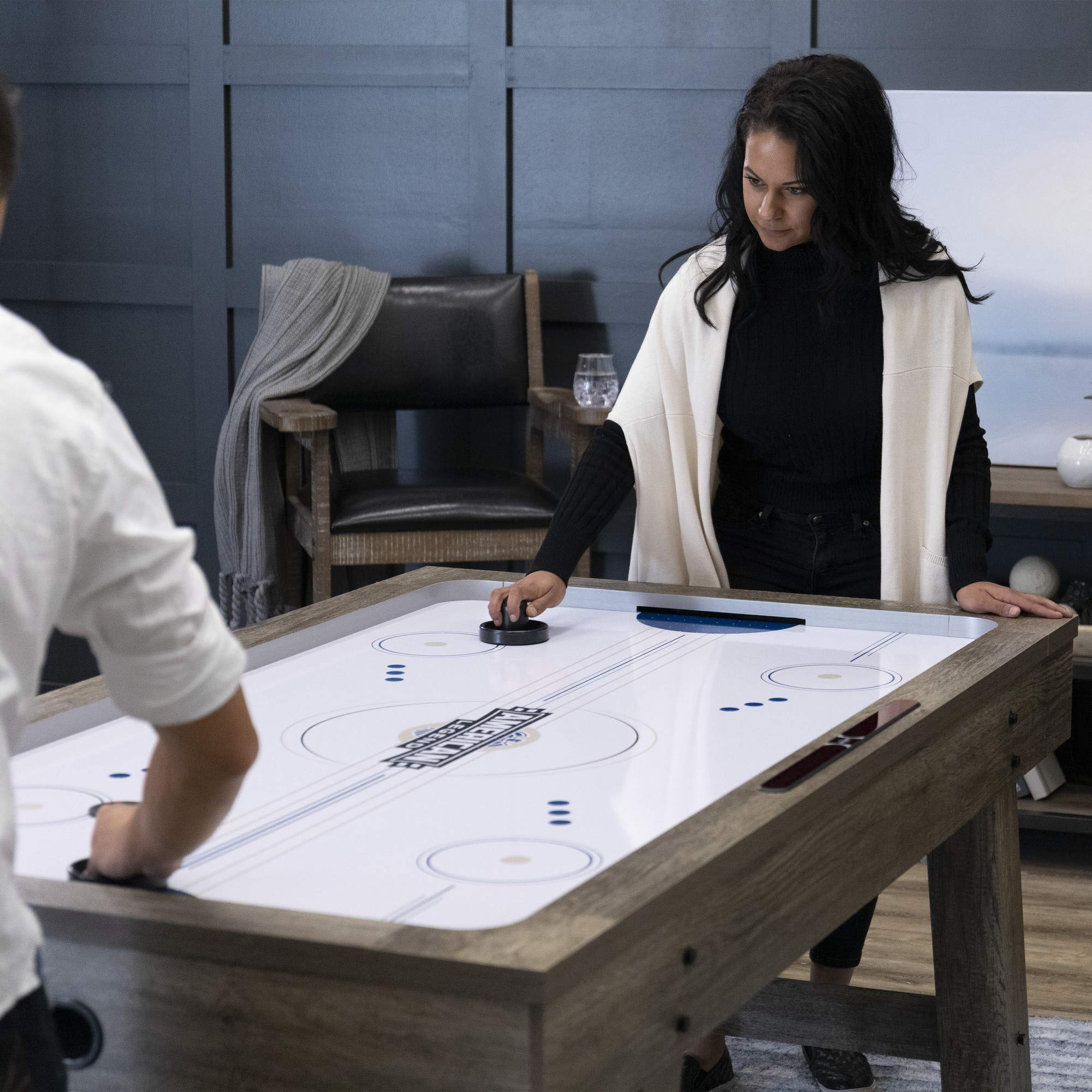【Sports&Outdoors】Brookdale Air-Powered Hockey Table with Rustic Wood Grain Finish