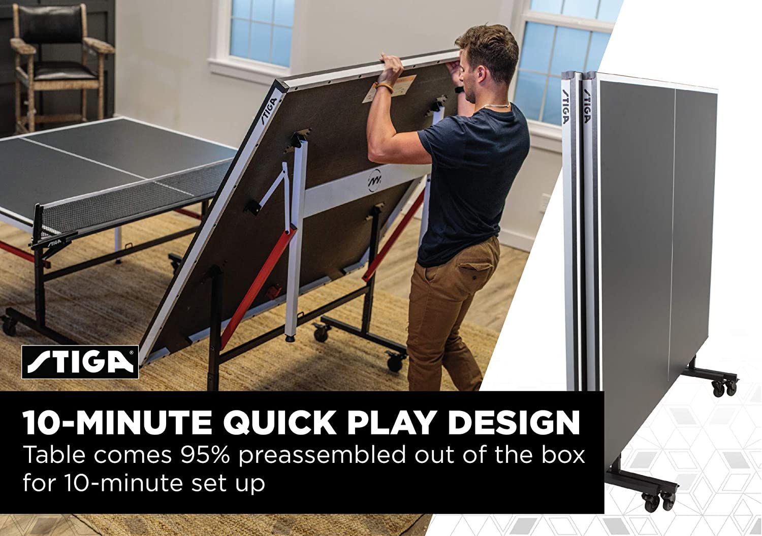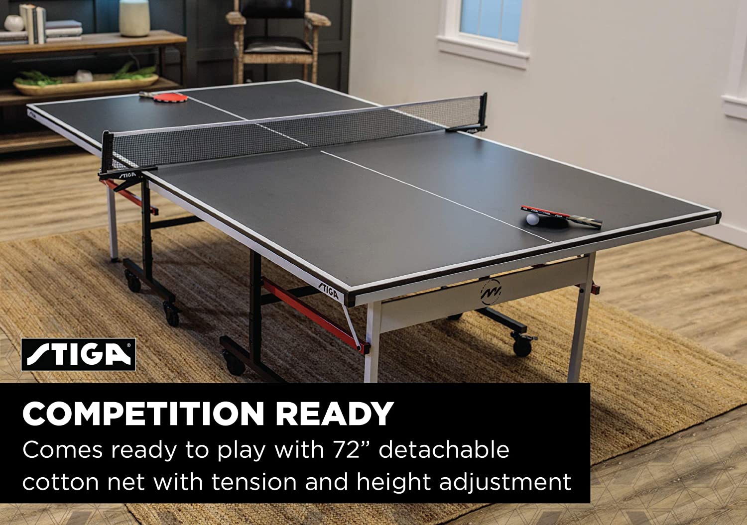 STIGA Advantage Professional Table Tennis Tables - Competition Indoor Design with Net & Post - 10 Minute Easy Assembly Ping-Pong Table with Single Player Playback and Compact Storage