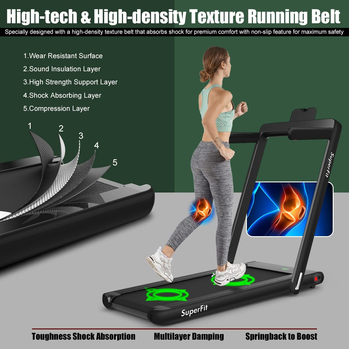 【Sports&Outdoors】2 in 1 Folding Treadmill, 2.25HP Superfit Under Desk Electric Treadmill, Installation-Free