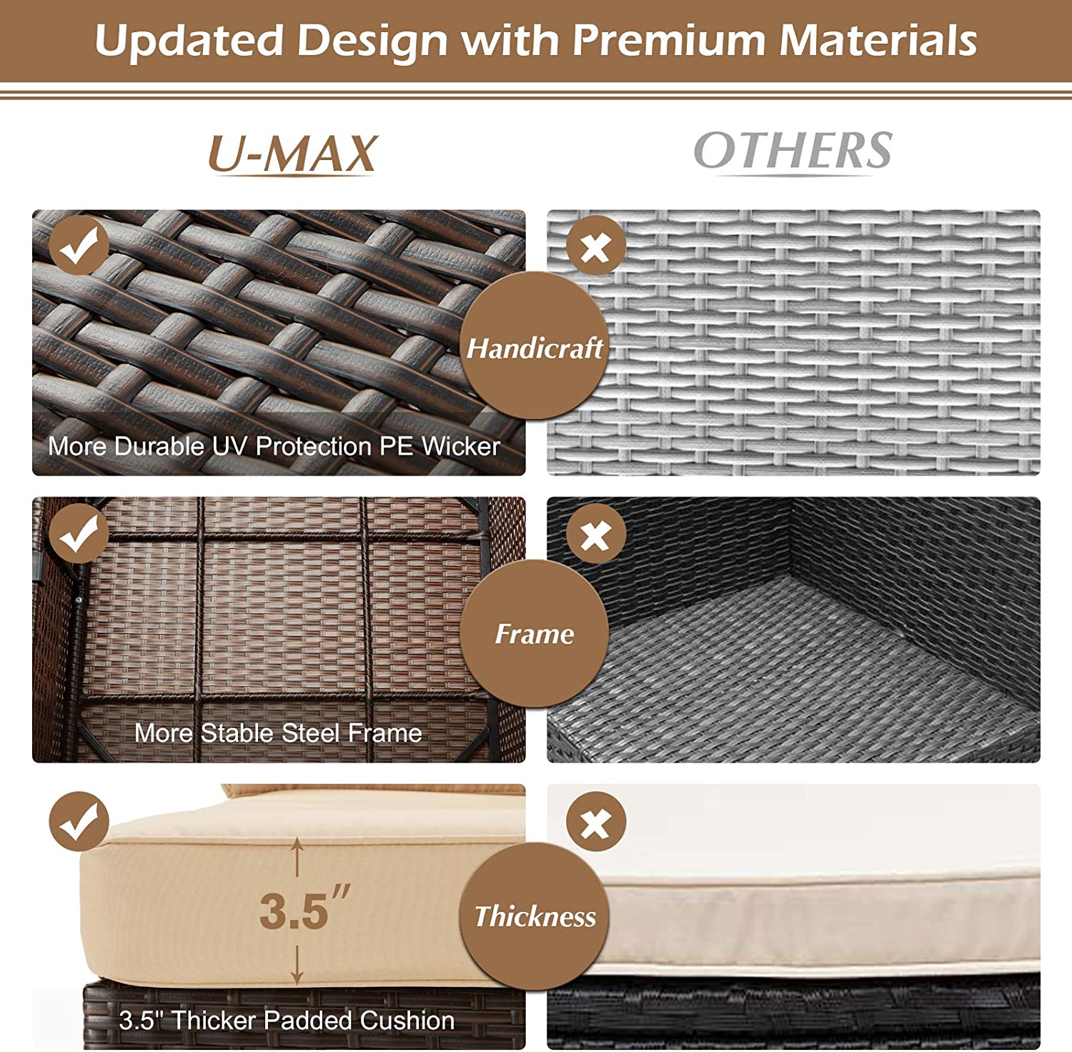 【Furniture】9 PCS Patio Outdoor Furniture Sets, Sectional Manual Weaving Wicker Conversation Sofa Set