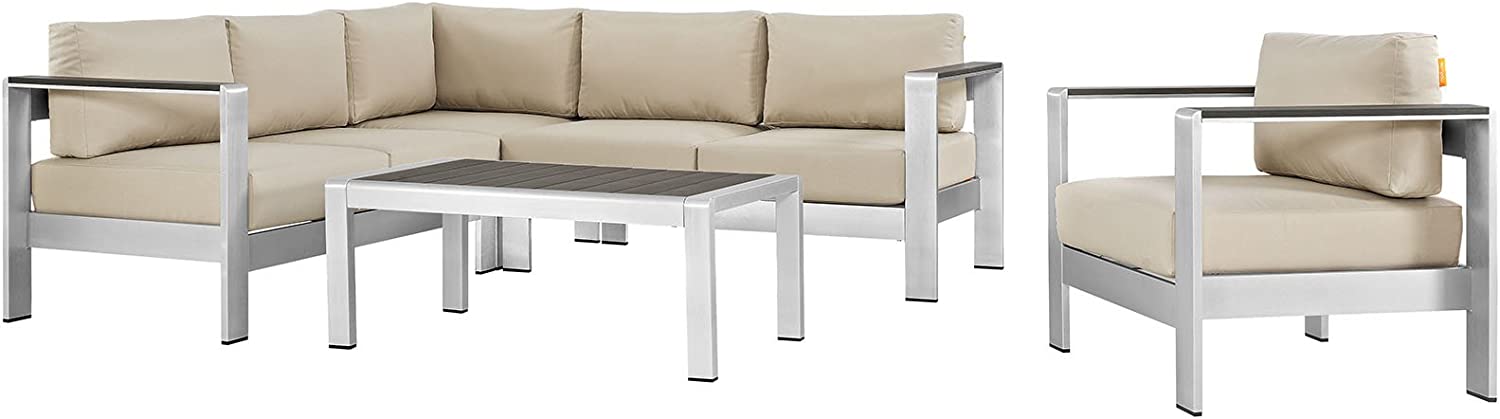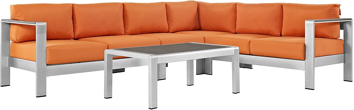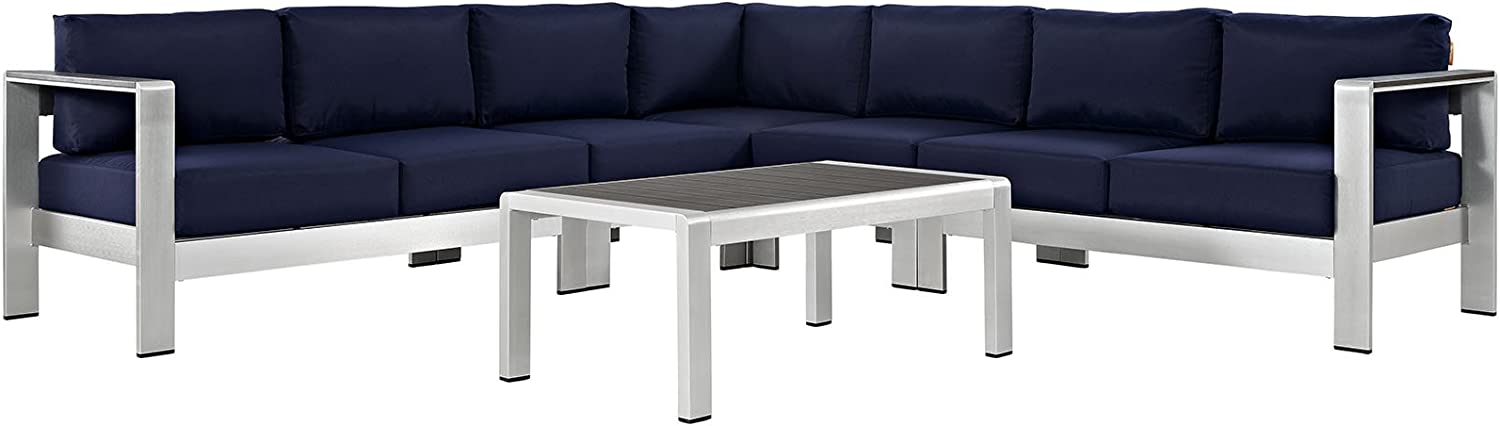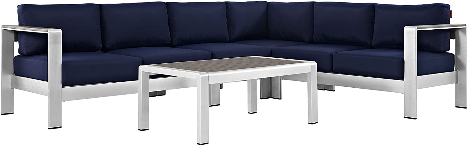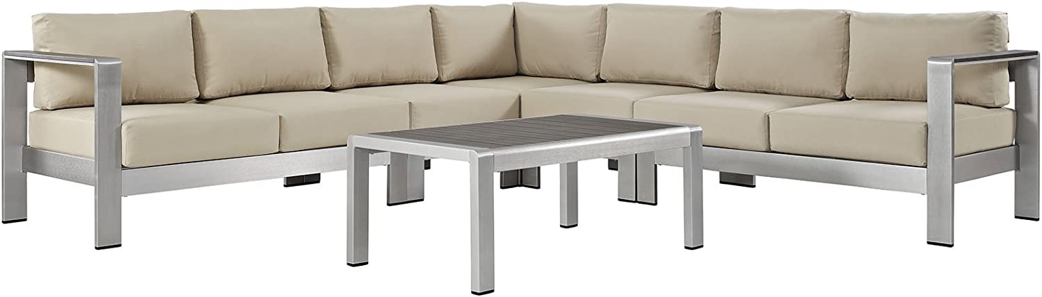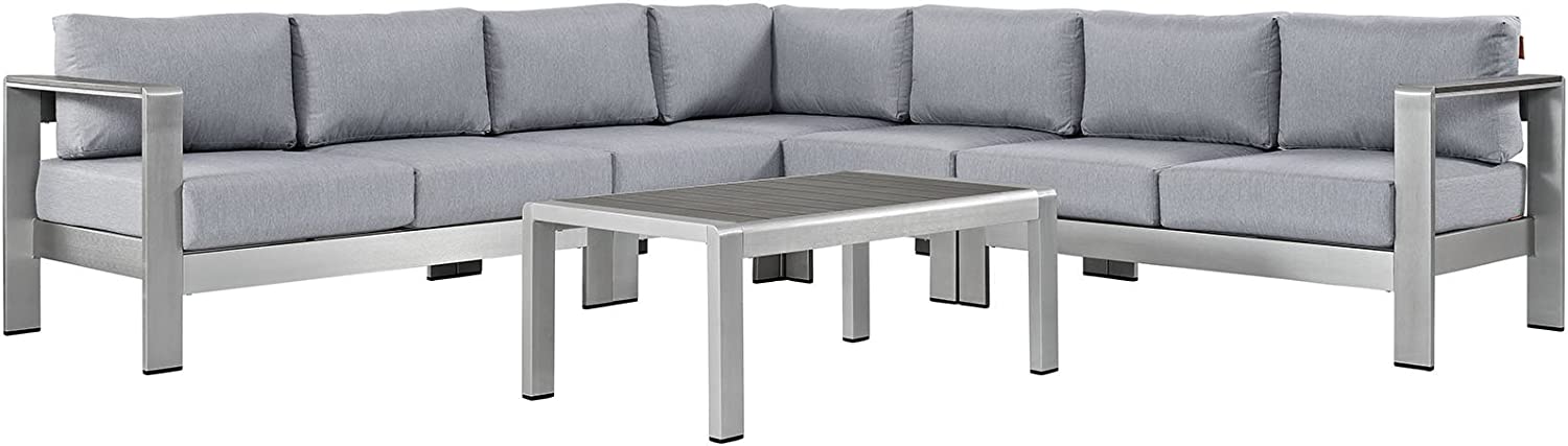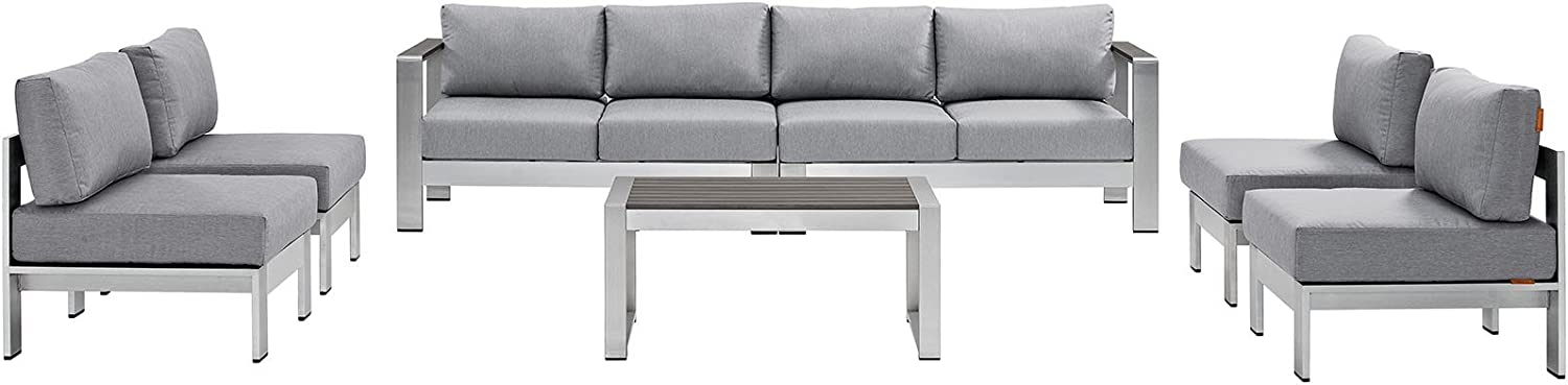 Modway Shore 6-Piece Aluminum Outdoor Patio Sectional Sofa Set in Silver Gray