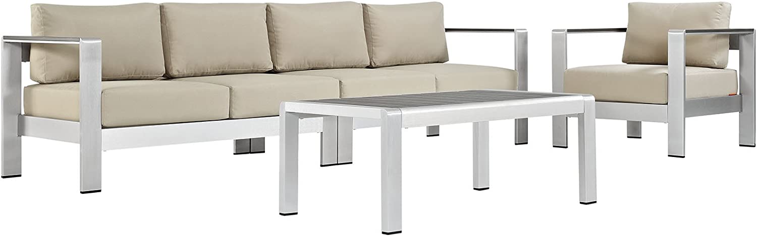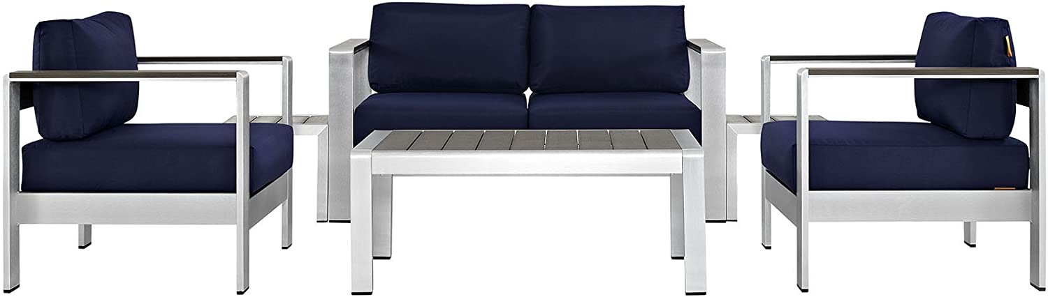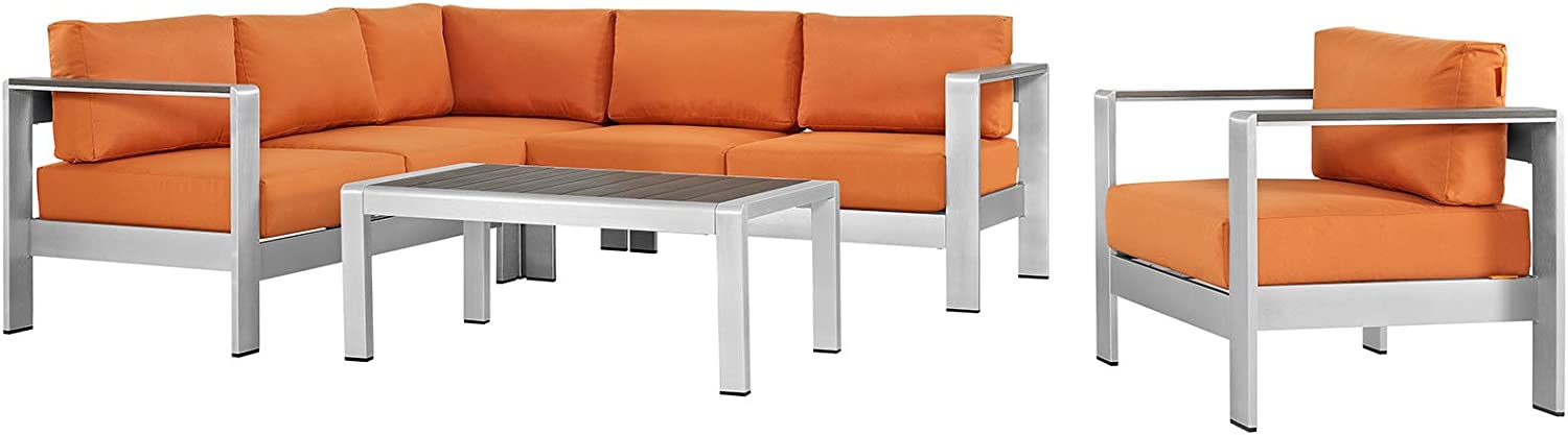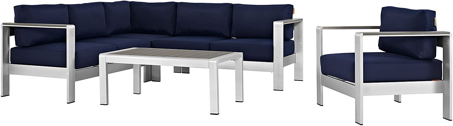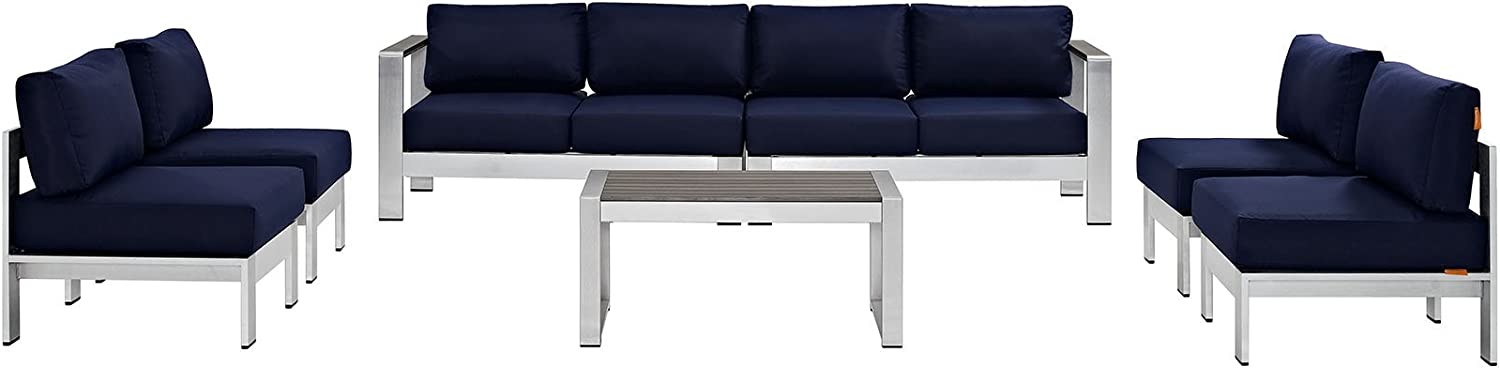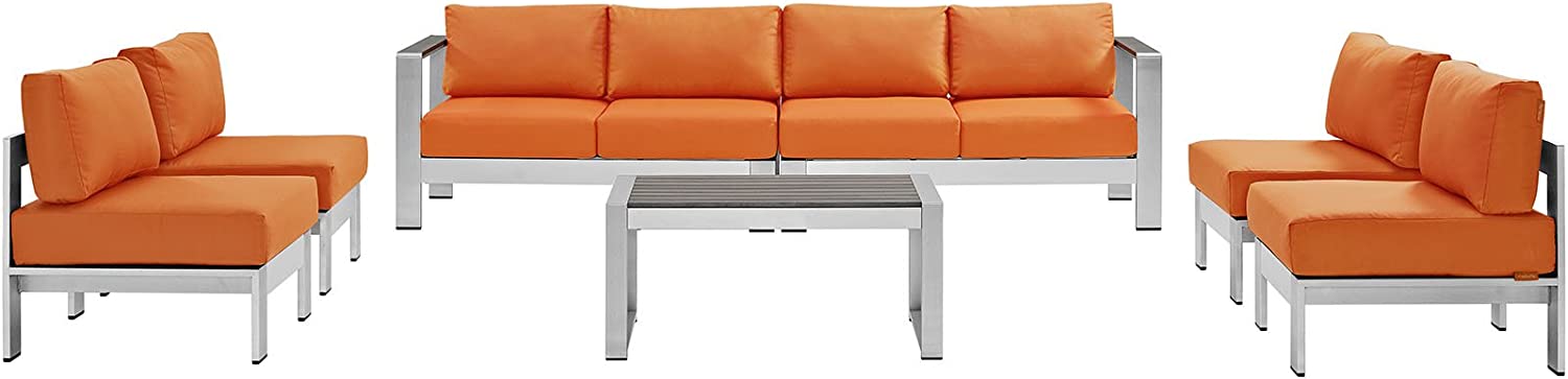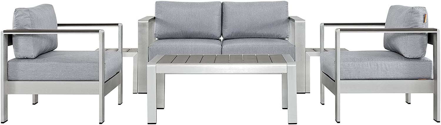 Modway Shore 6-Piece Aluminum Outdoor Patio Sectional Sofa Set in Silver Gray