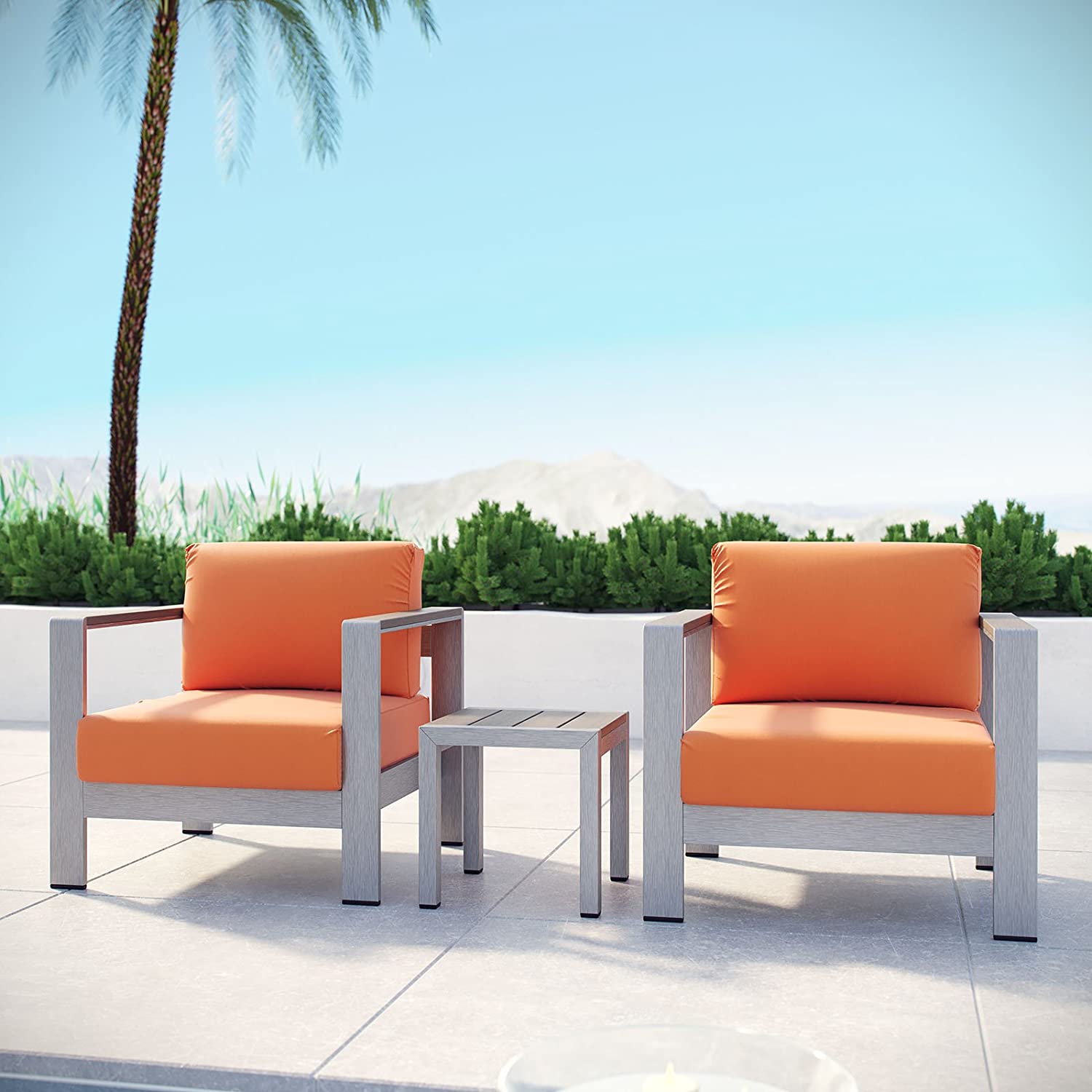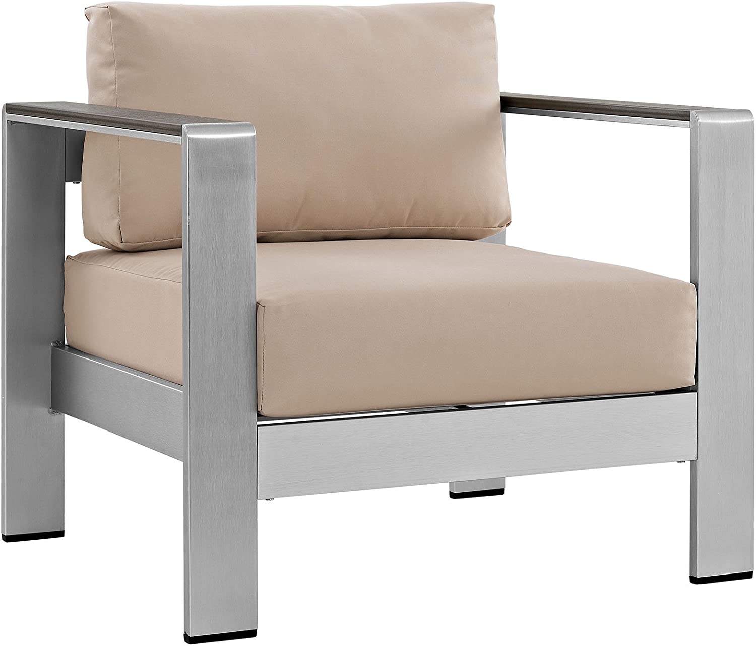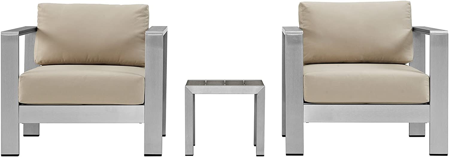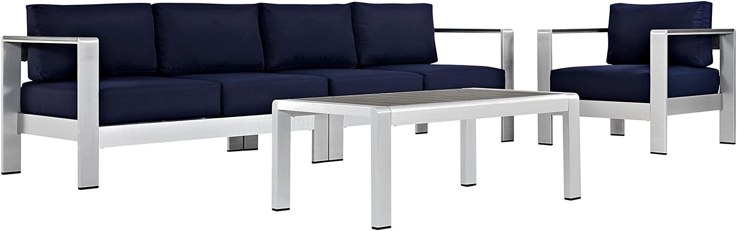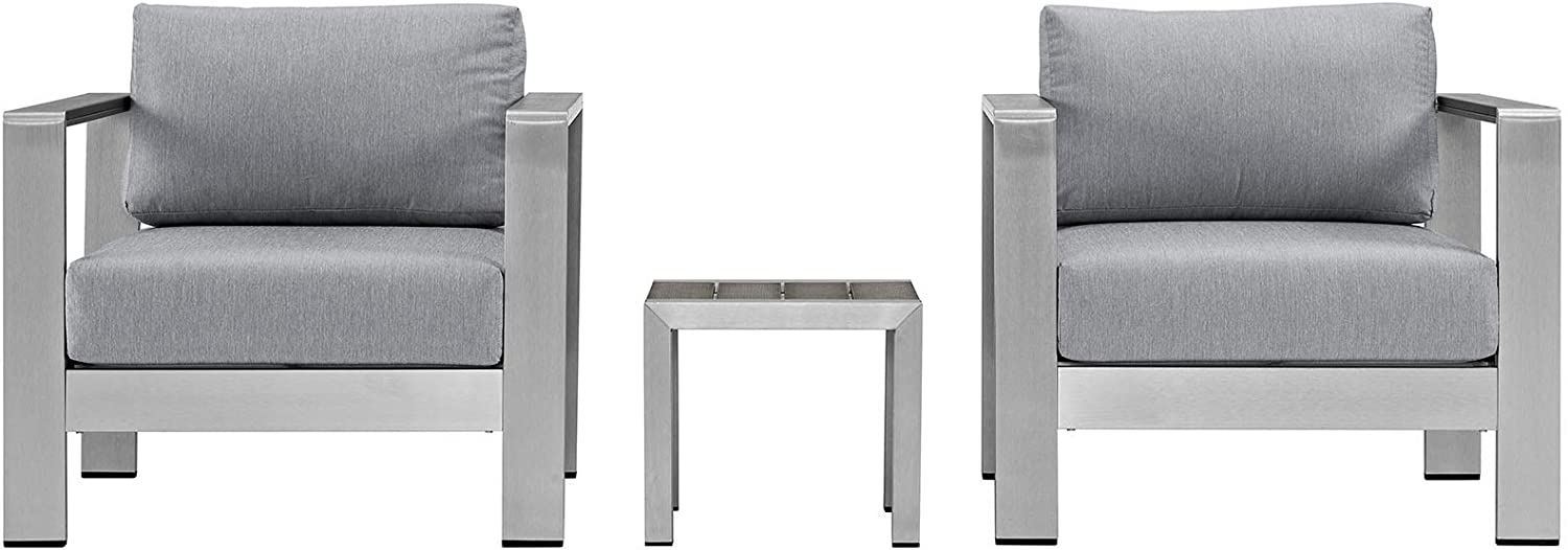 Modway Shore 6-Piece Aluminum Outdoor Patio Sectional Sofa Set in Silver Gray