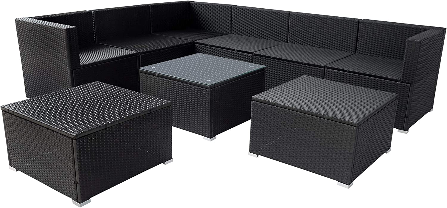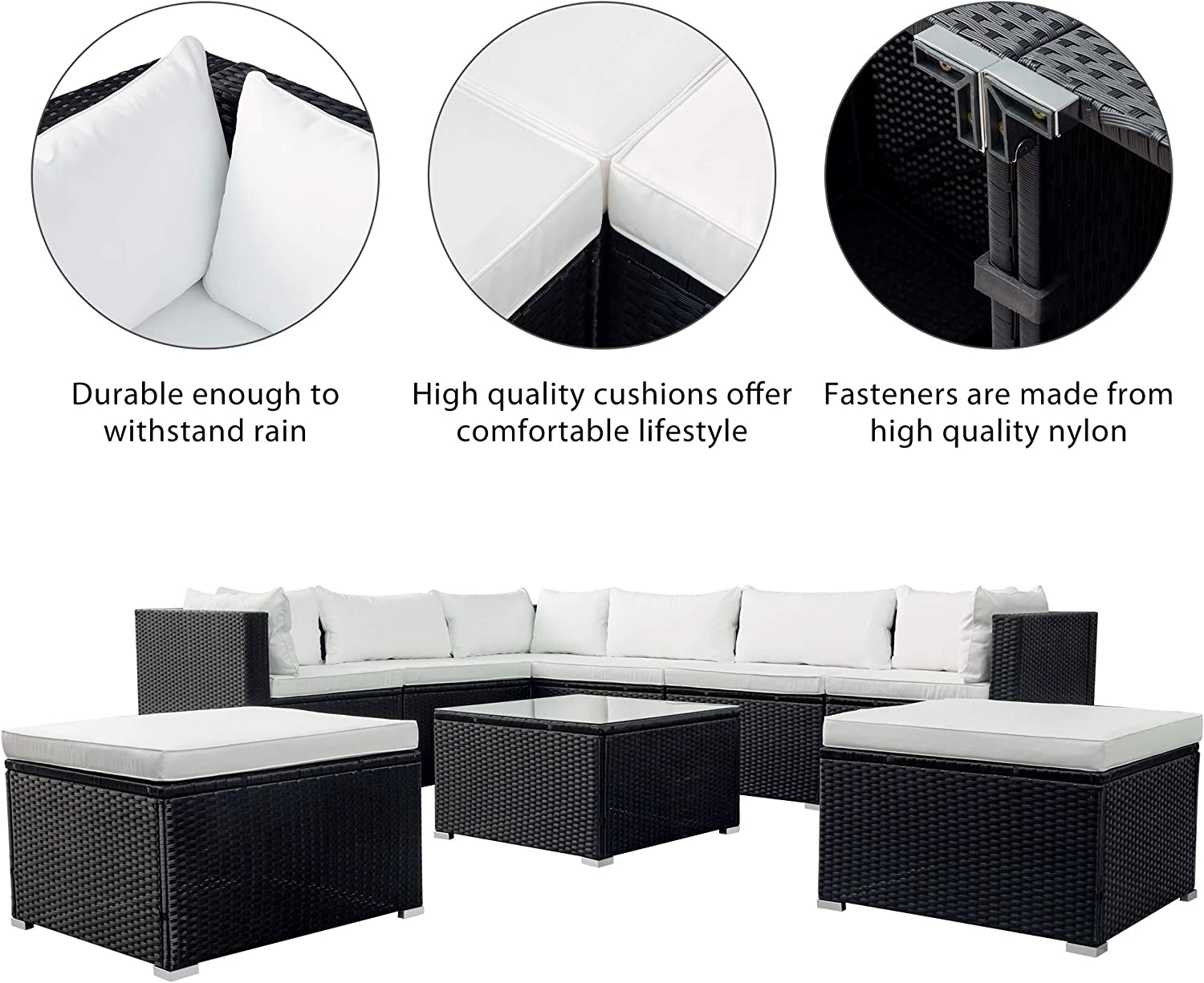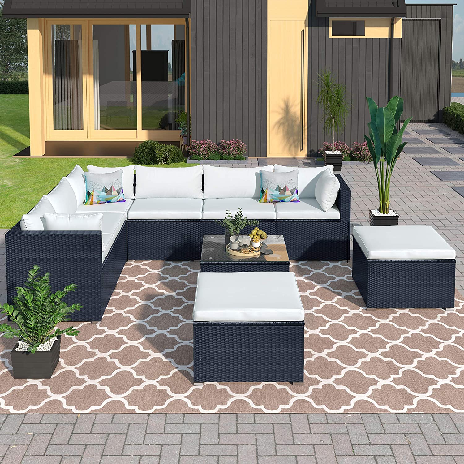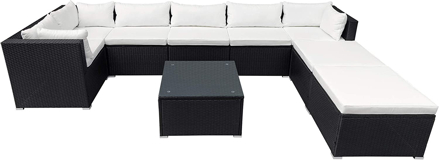 Evedy Funiture 9-Piece Patio Rattan Conversation, Outdoor PE Sectional Sofa Sets(Black Wicker, Beige Cushion)