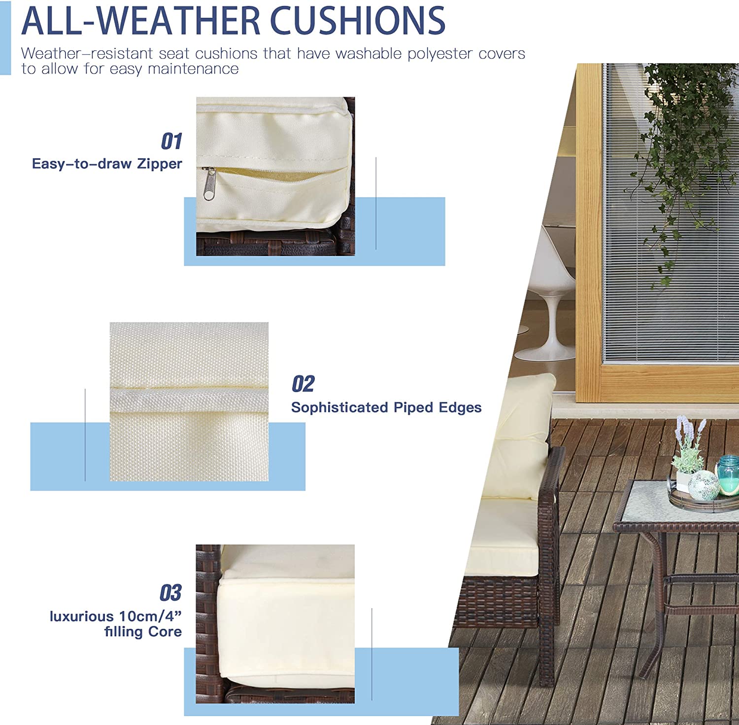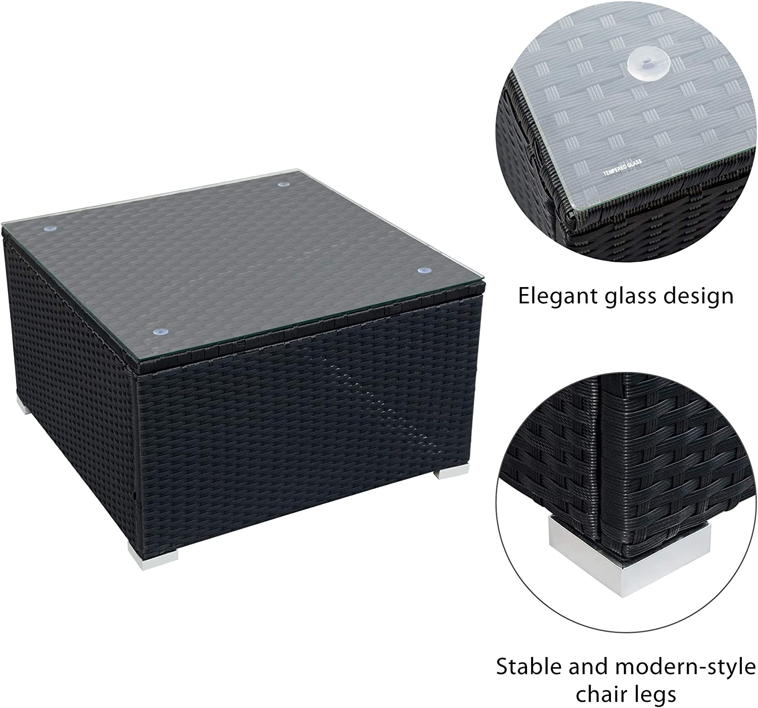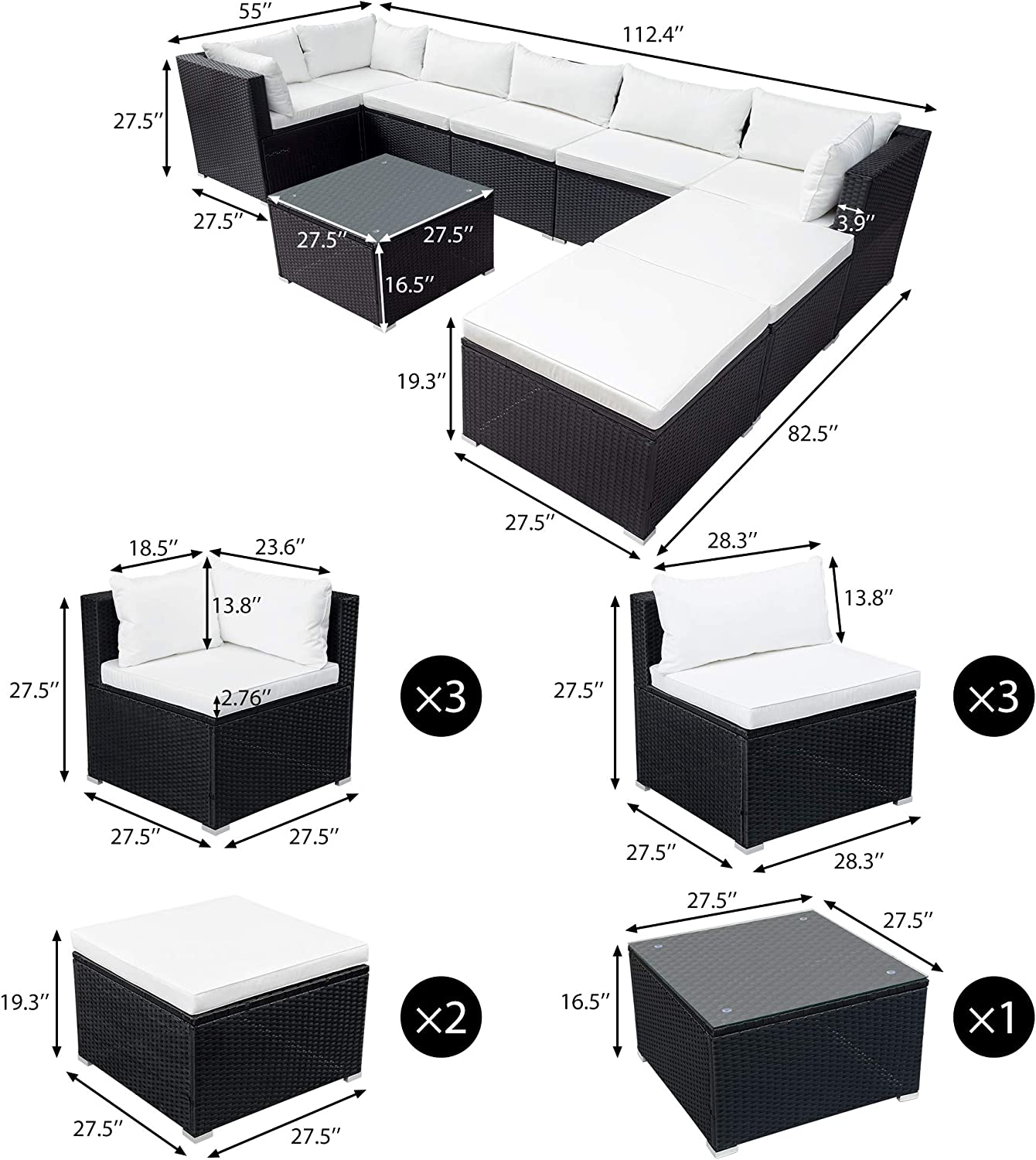 Evedy Funiture 9-Piece Patio Rattan Conversation, Outdoor PE Sectional Sofa Sets(Black Wicker, Beige Cushion)
