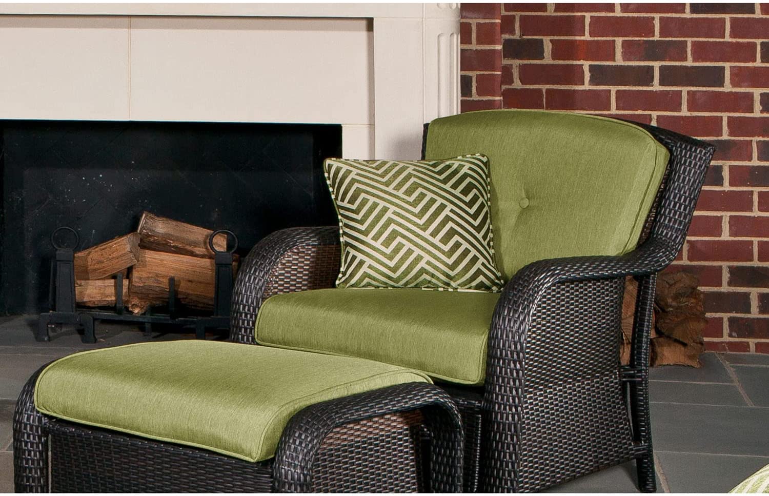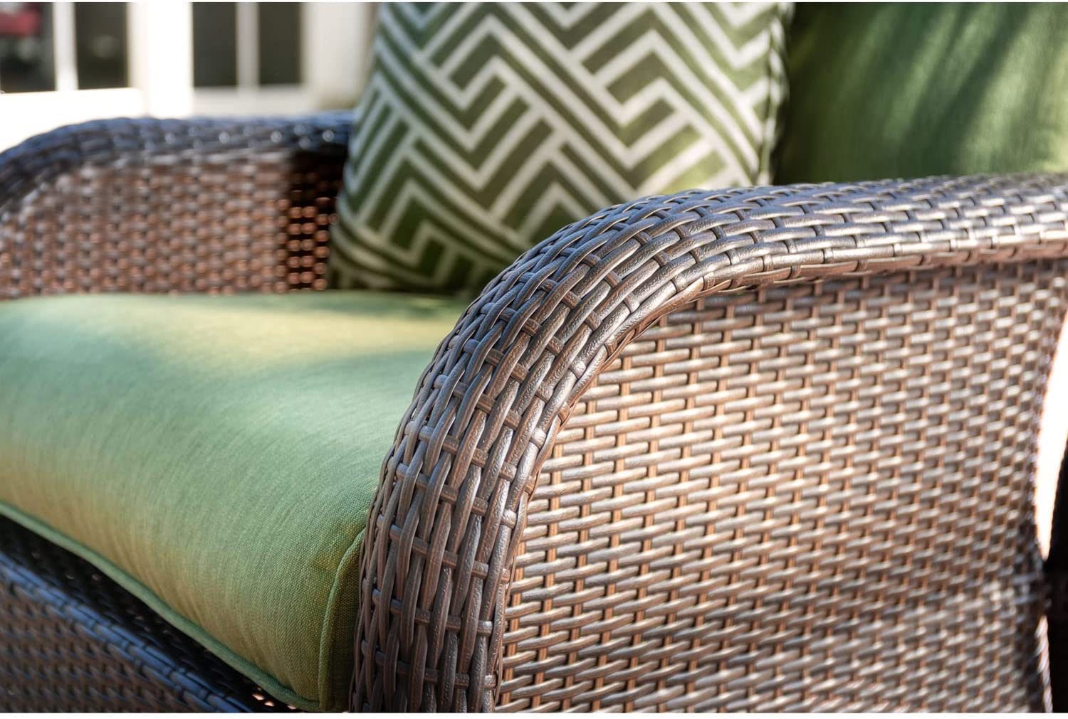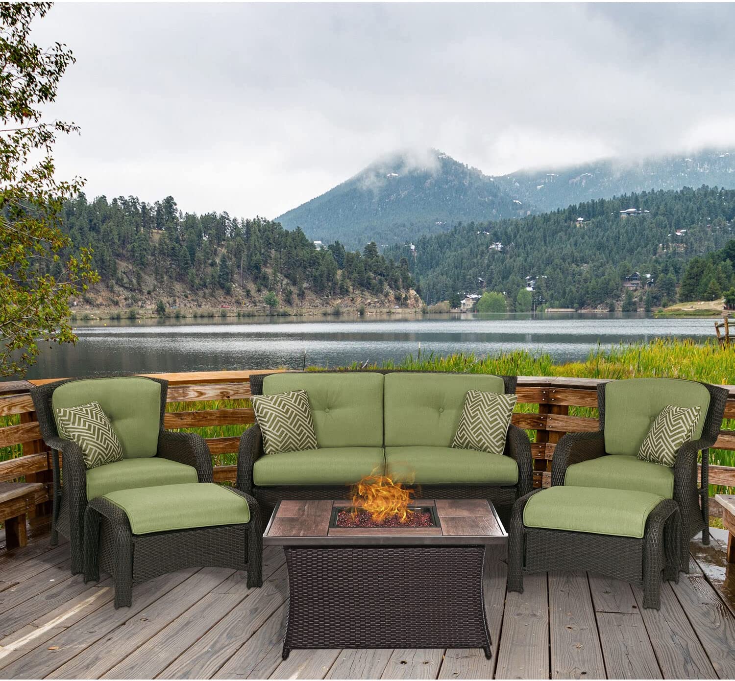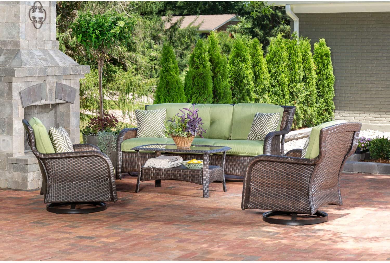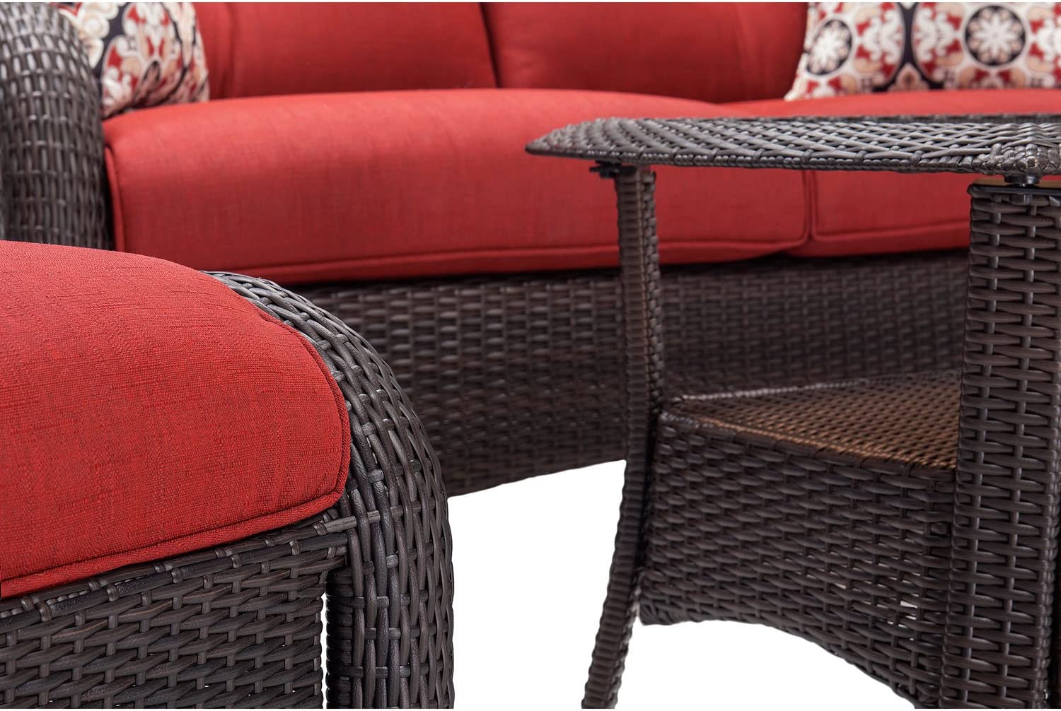 Hanover Strathmere 6-Piece Patio Conversation Set with Sofa, 2 Arm Chairs, 2 Ottomans, Accent Pillows and Tempered Glass-Top Coffee Table