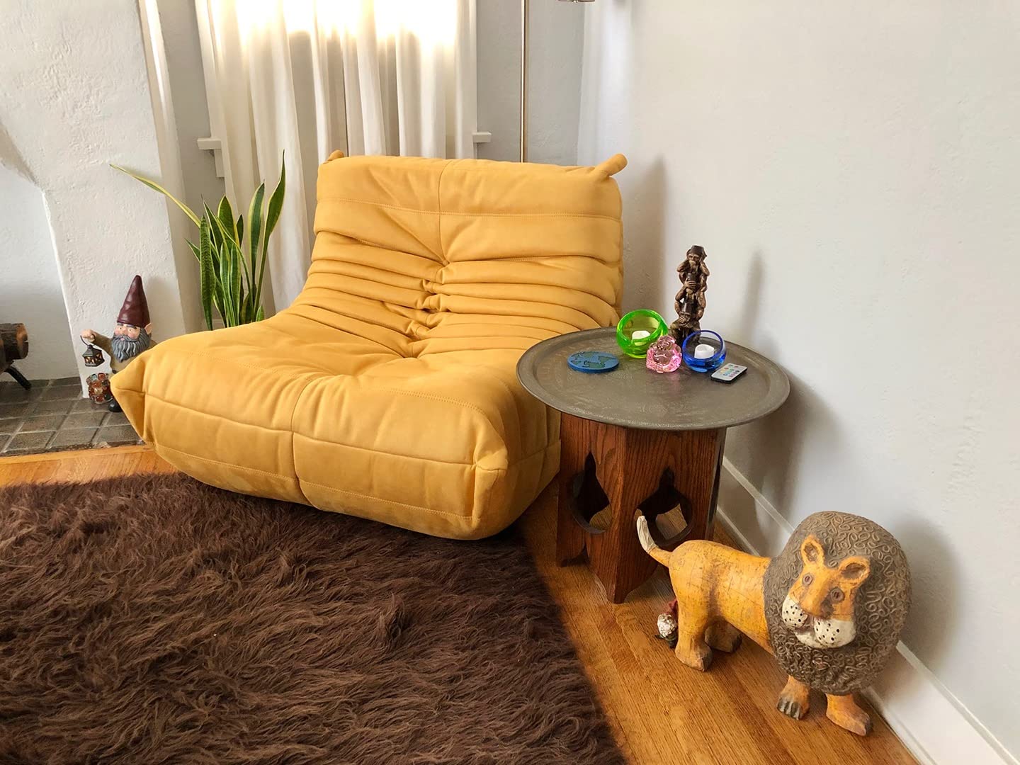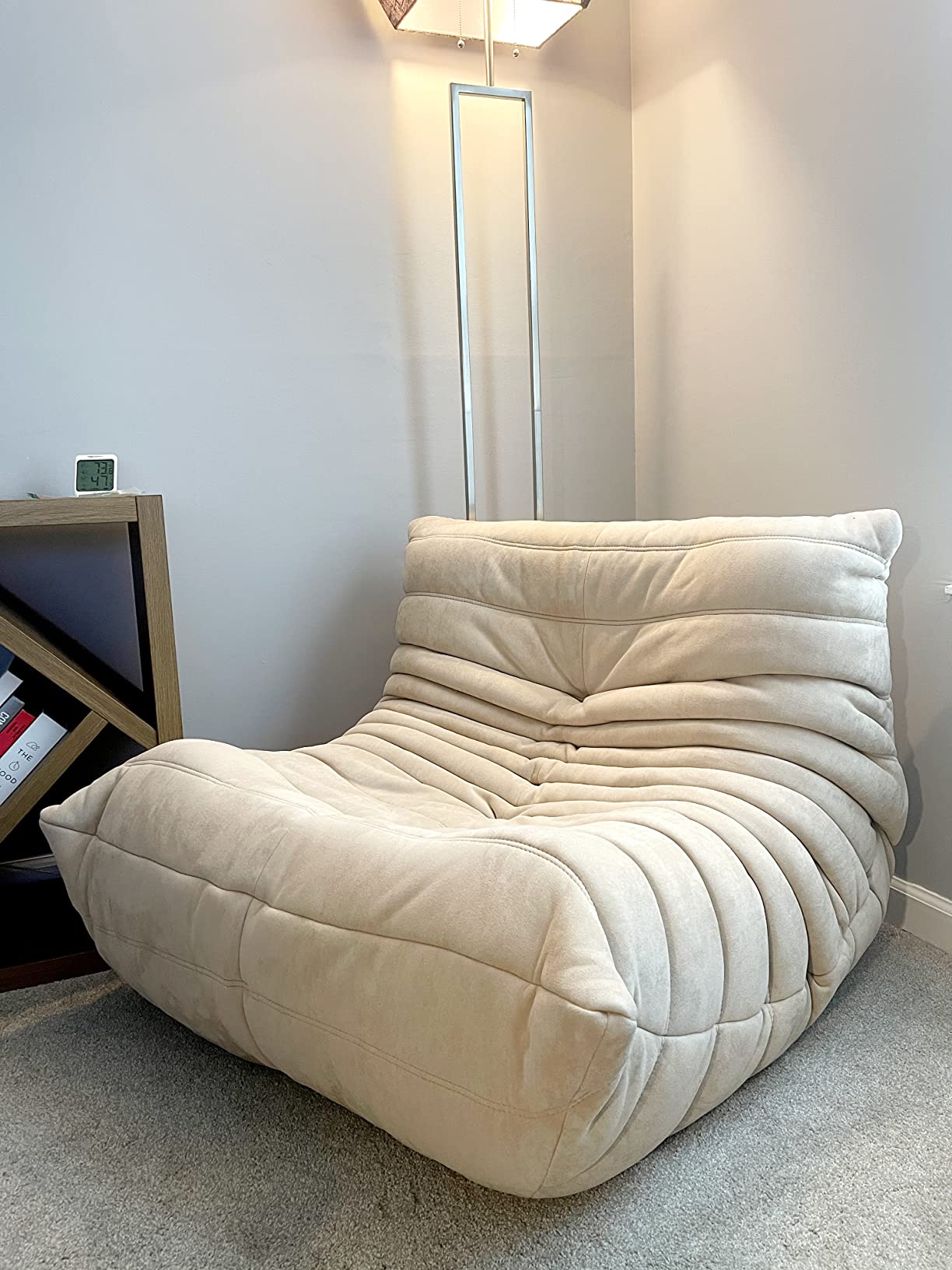 【Furniture】Chair with Ottoman, Soft Suede Oversized Chair with Ottoman Lazy Floor Sofa