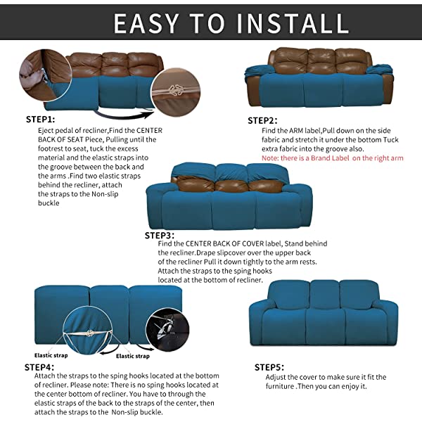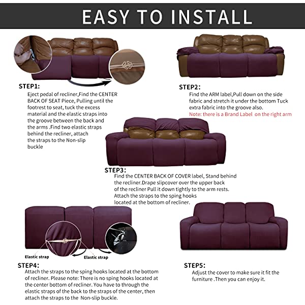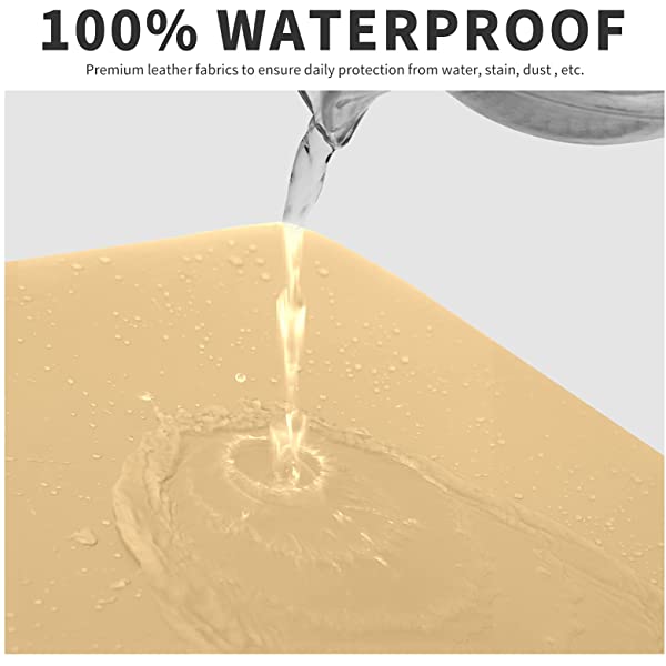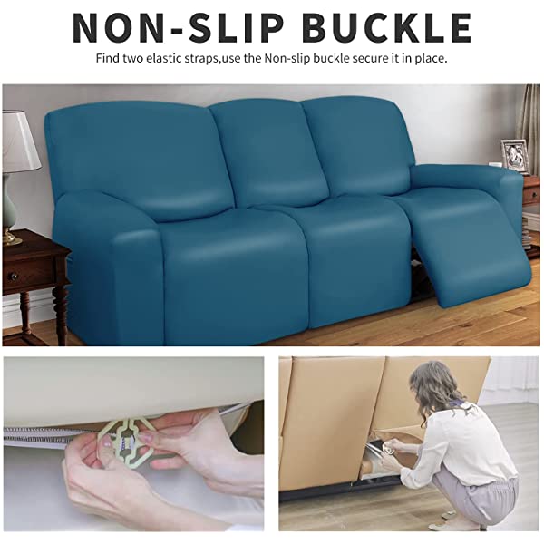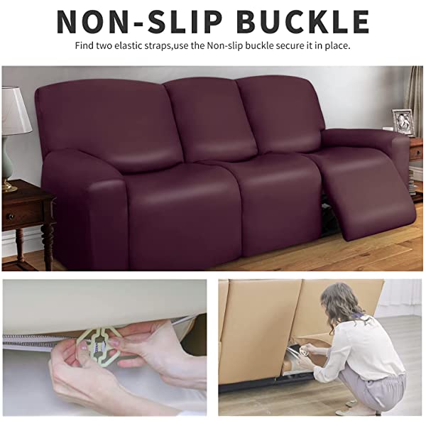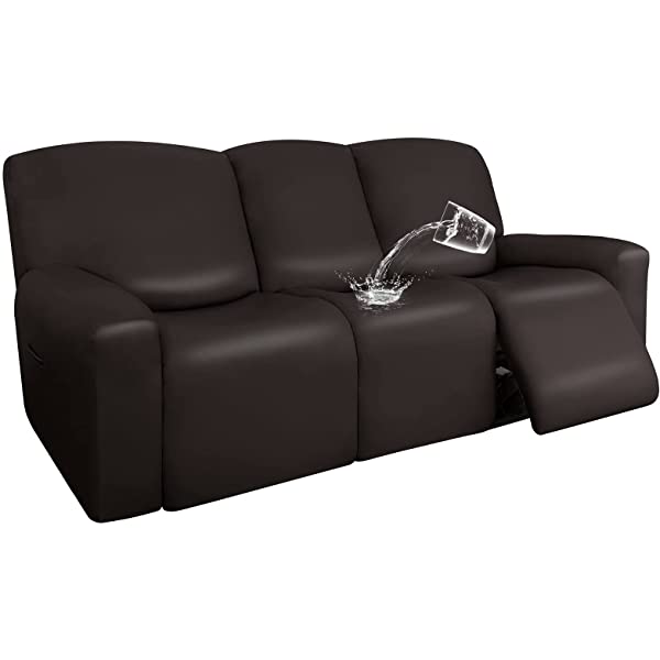 Easy-Going PU Leather Recliner Sofa Slipcovers, Waterproof Stretch Sofa Covers, 8 Pieces Stretch Furniture Protector, Elastic Strap Shield Pets Kids Children Cats Dogs Beige