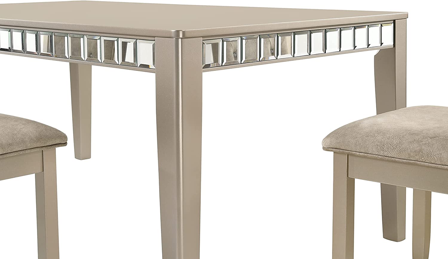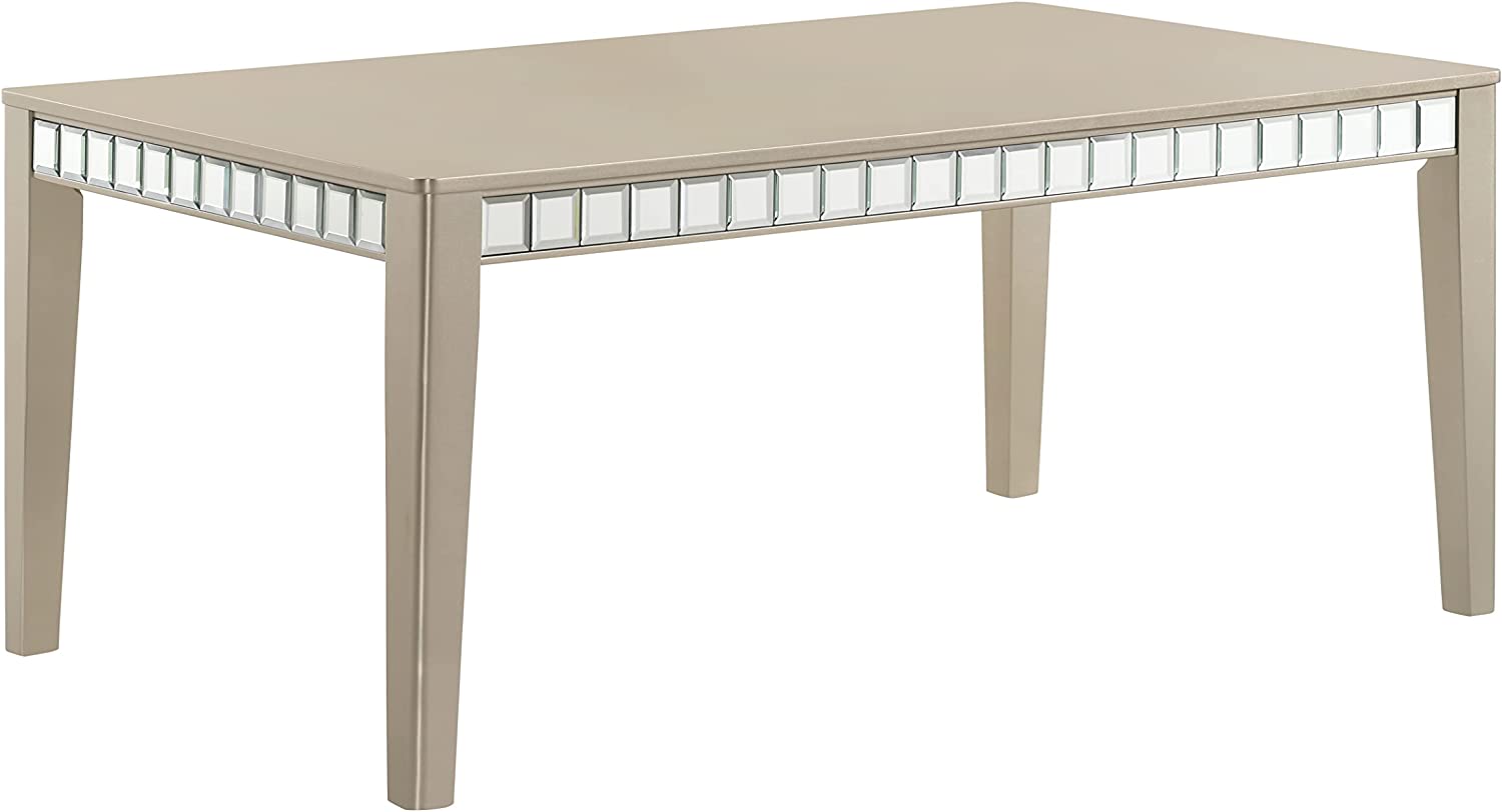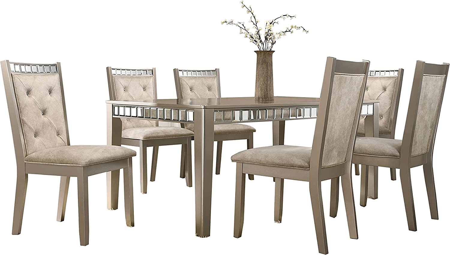 Liveasy Furniture Dining Table Set for 6, Kitchen & Dining Room Sets with Button Tufted Upholstered Chairs and Mirror Tile Edge (Champagne/Beige)