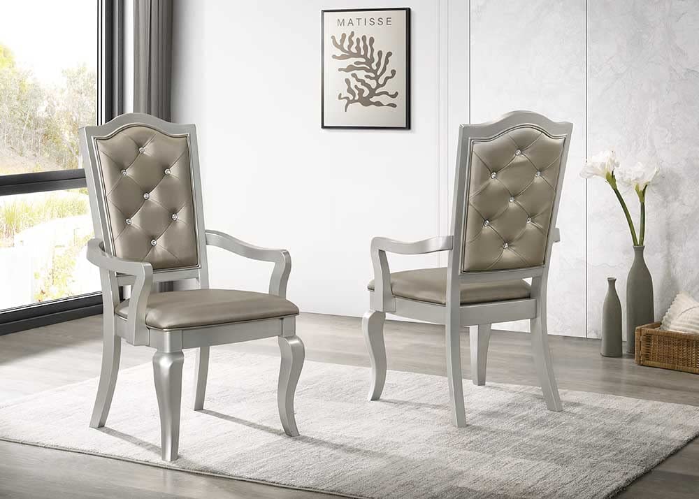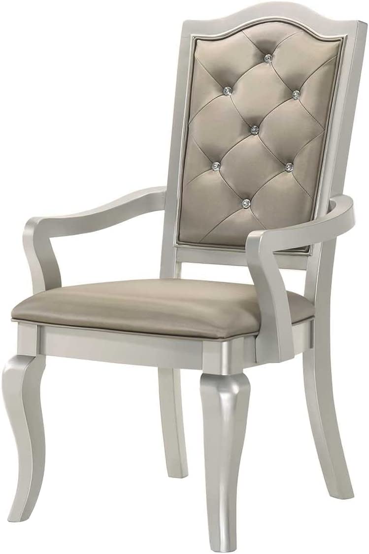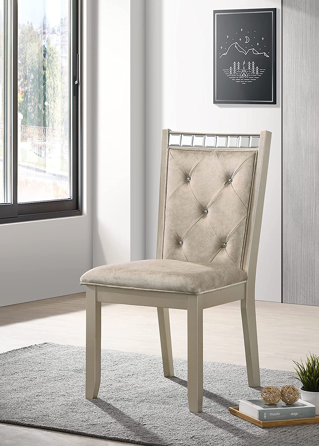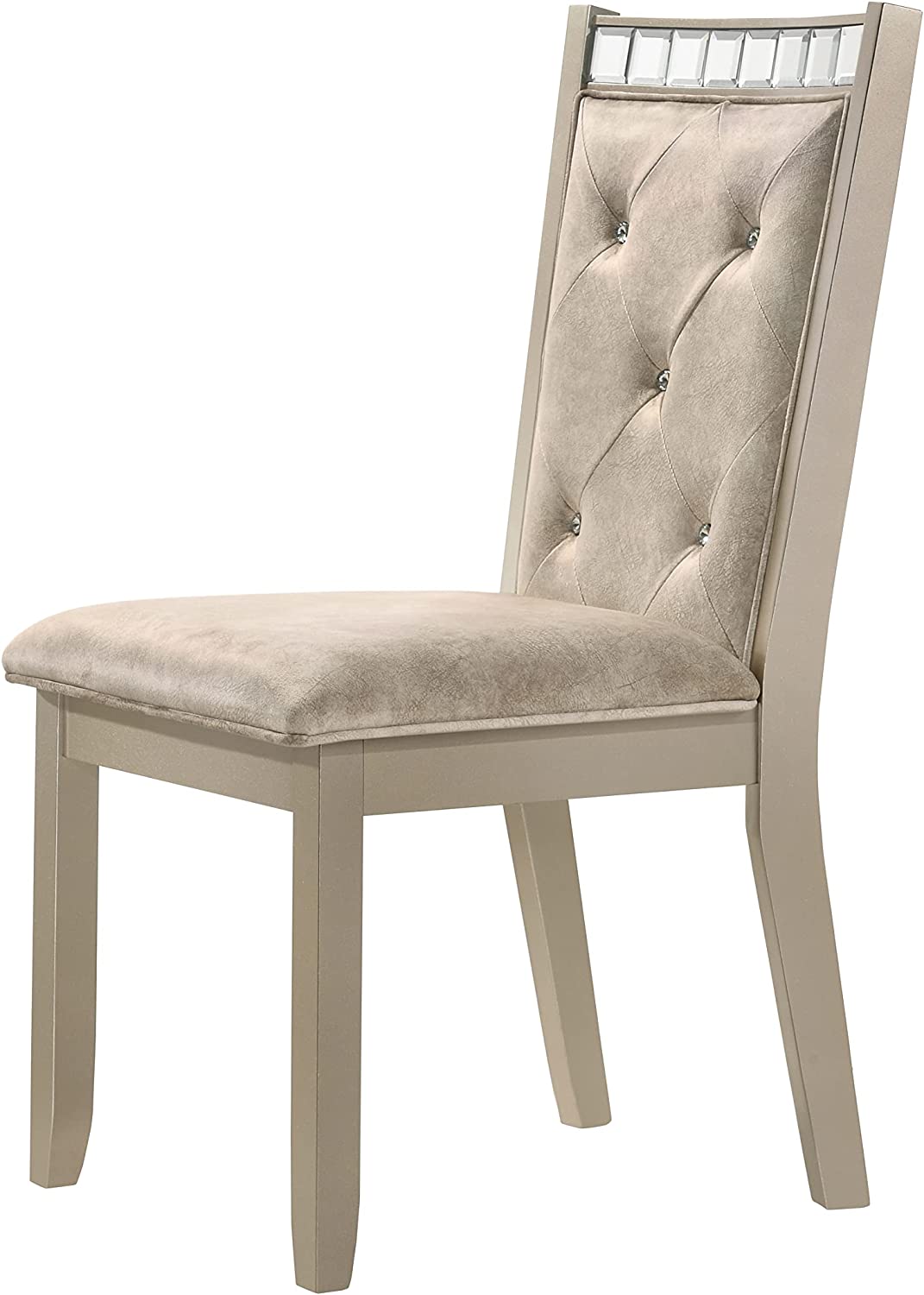 Liveasy Furniture Dining Table Set for 6, Kitchen & Dining Room Sets with Button Tufted Upholstered Chairs and Mirror Tile Edge (Champagne/Beige)