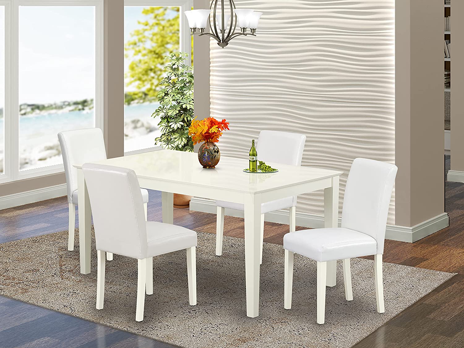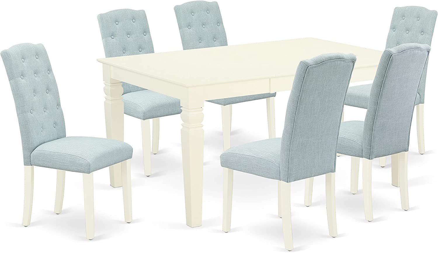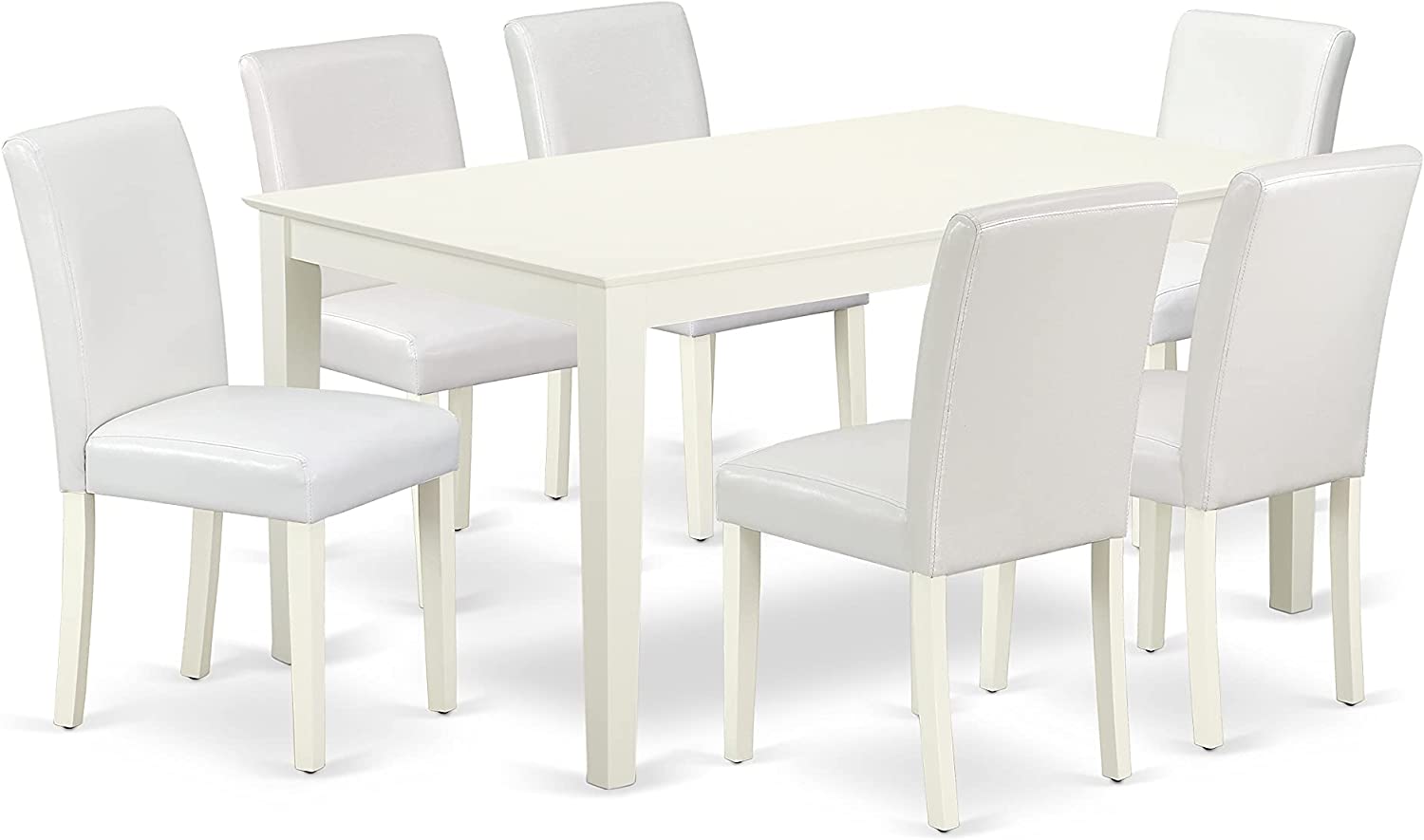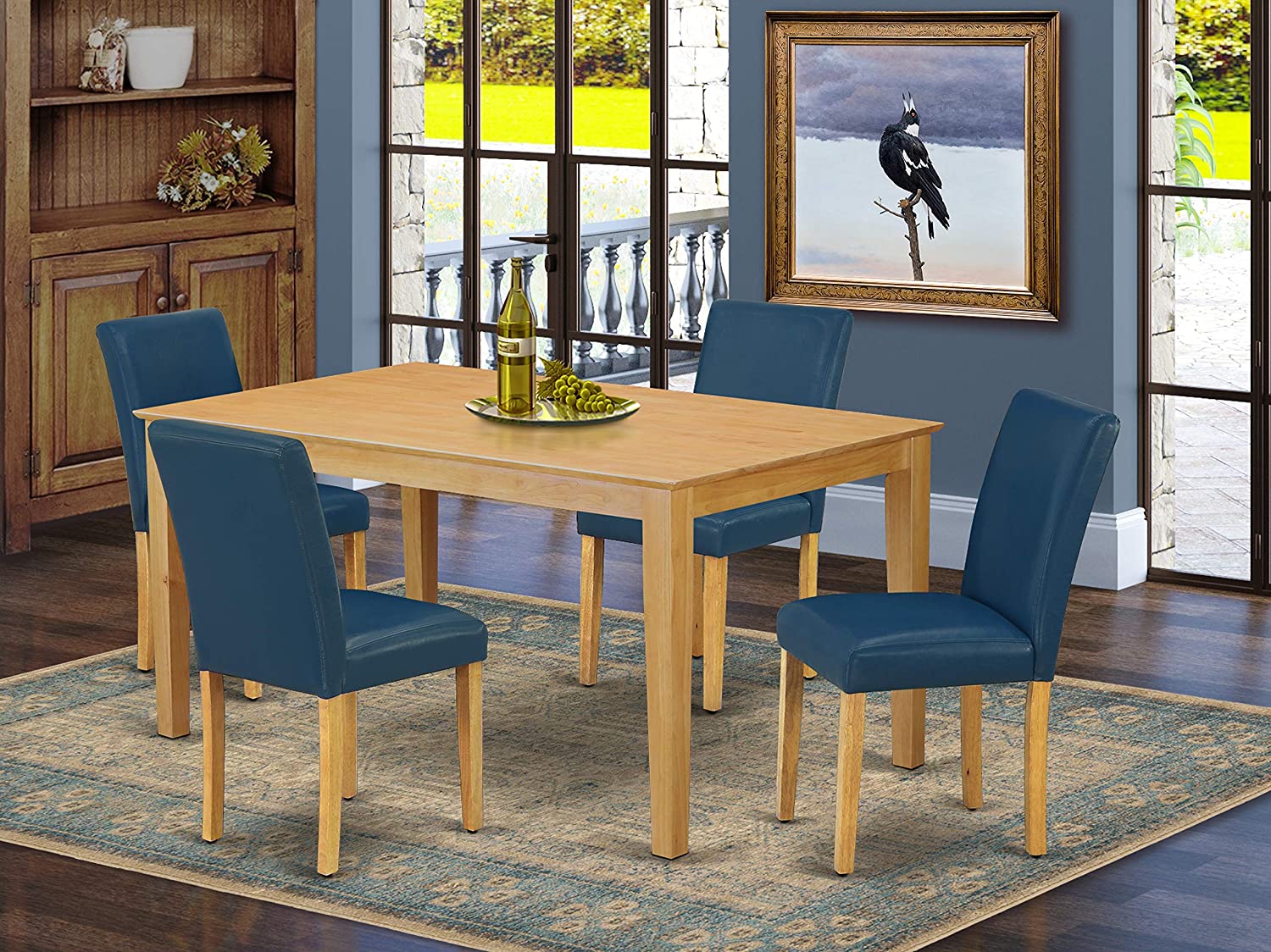 East West Furniture CAAB7-OAK-55 7Pc Rectangle 60" Dining Table And 6 Parson Chair With Oak Leg And Pu Leather Color Oasis, 7 Pieces