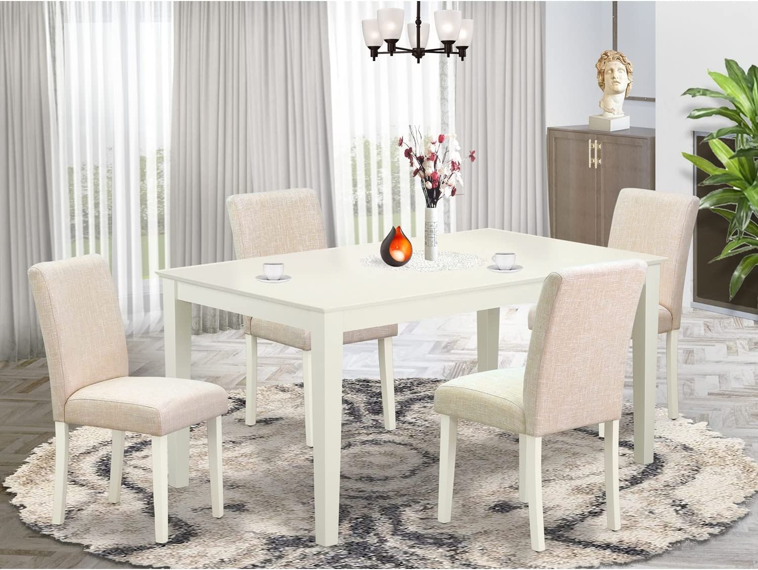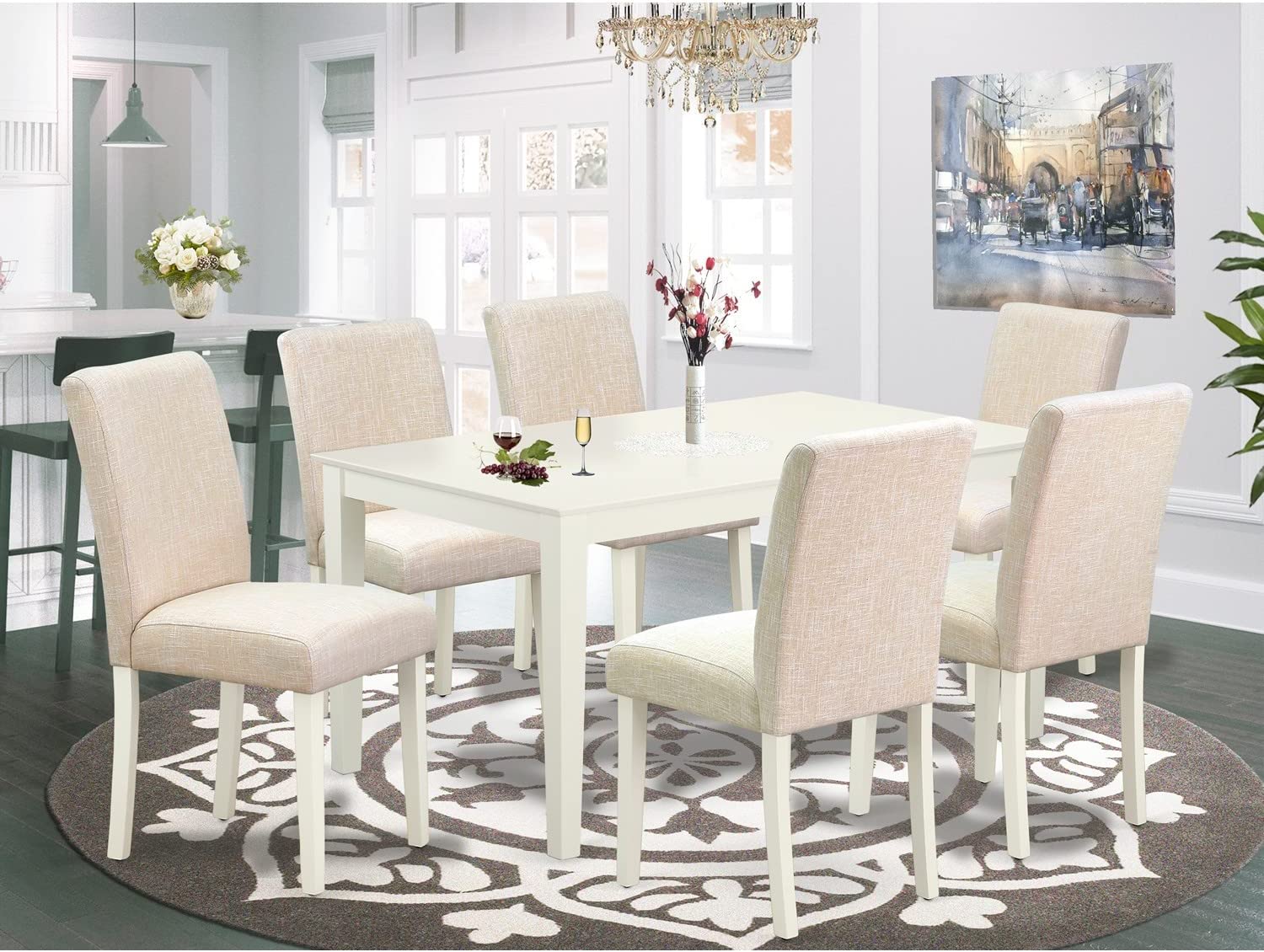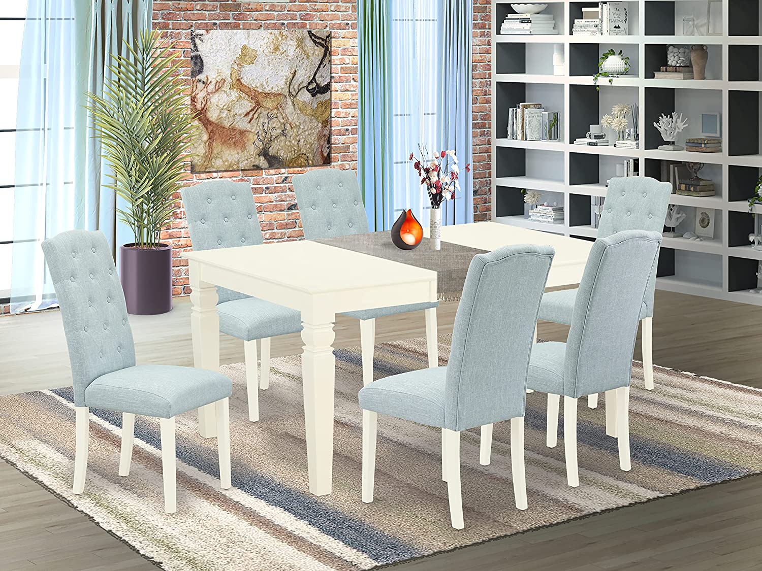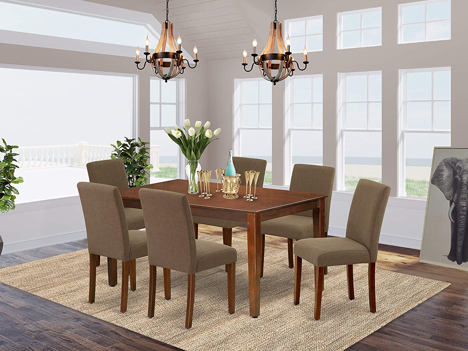 East West Furniture CAAB7-OAK-55 7Pc Rectangle 60" Dining Table And 6 Parson Chair With Oak Leg And Pu Leather Color Oasis, 7 Pieces