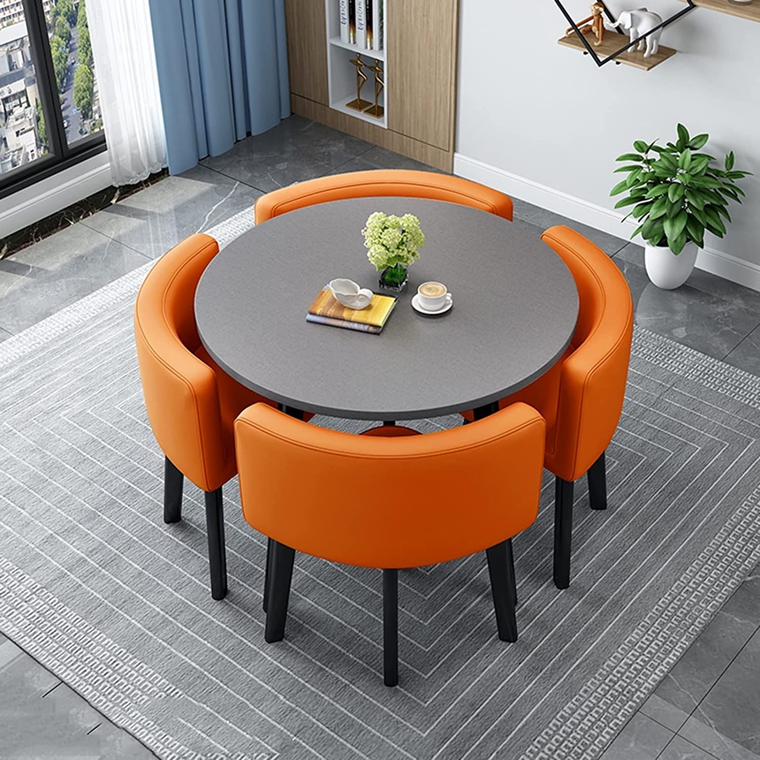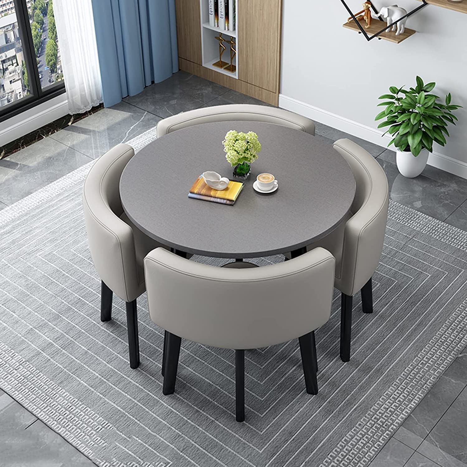 Modern Business Negotiation Dining Table and Chair Combination,Coffee Table Conference Room Table,Leisure Area Home Balcony Small Round Table, Suitable for Lounge, Living Room ( Color : Dark gray , Si
