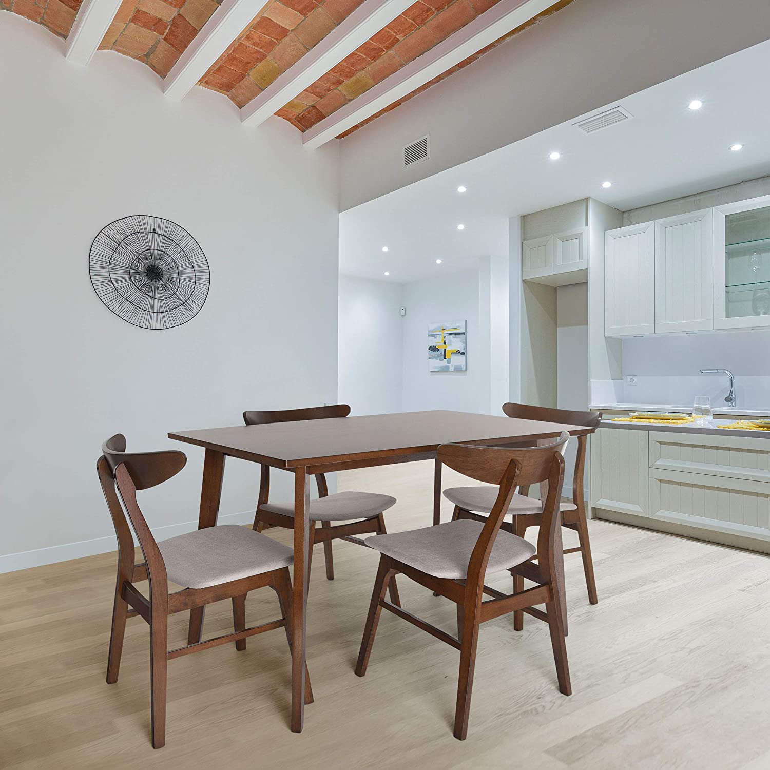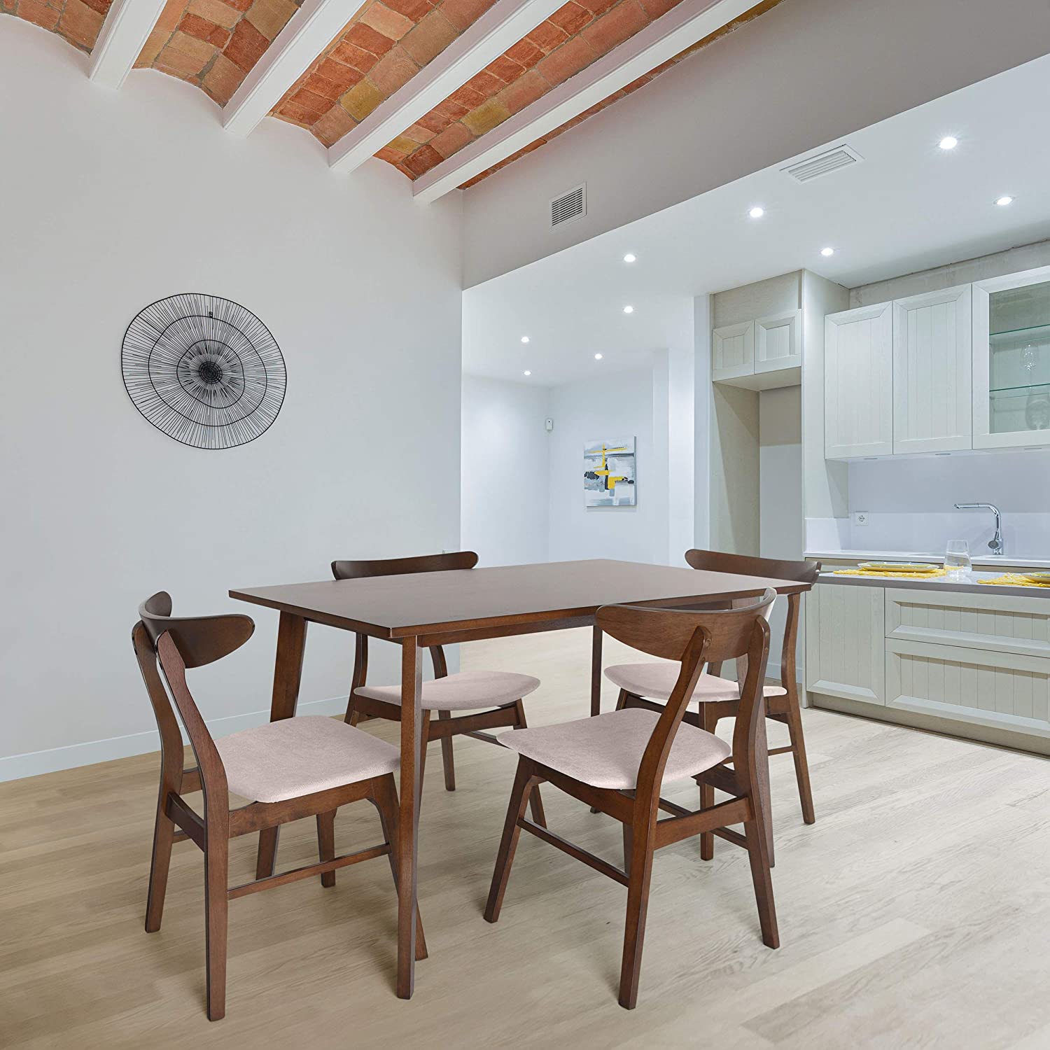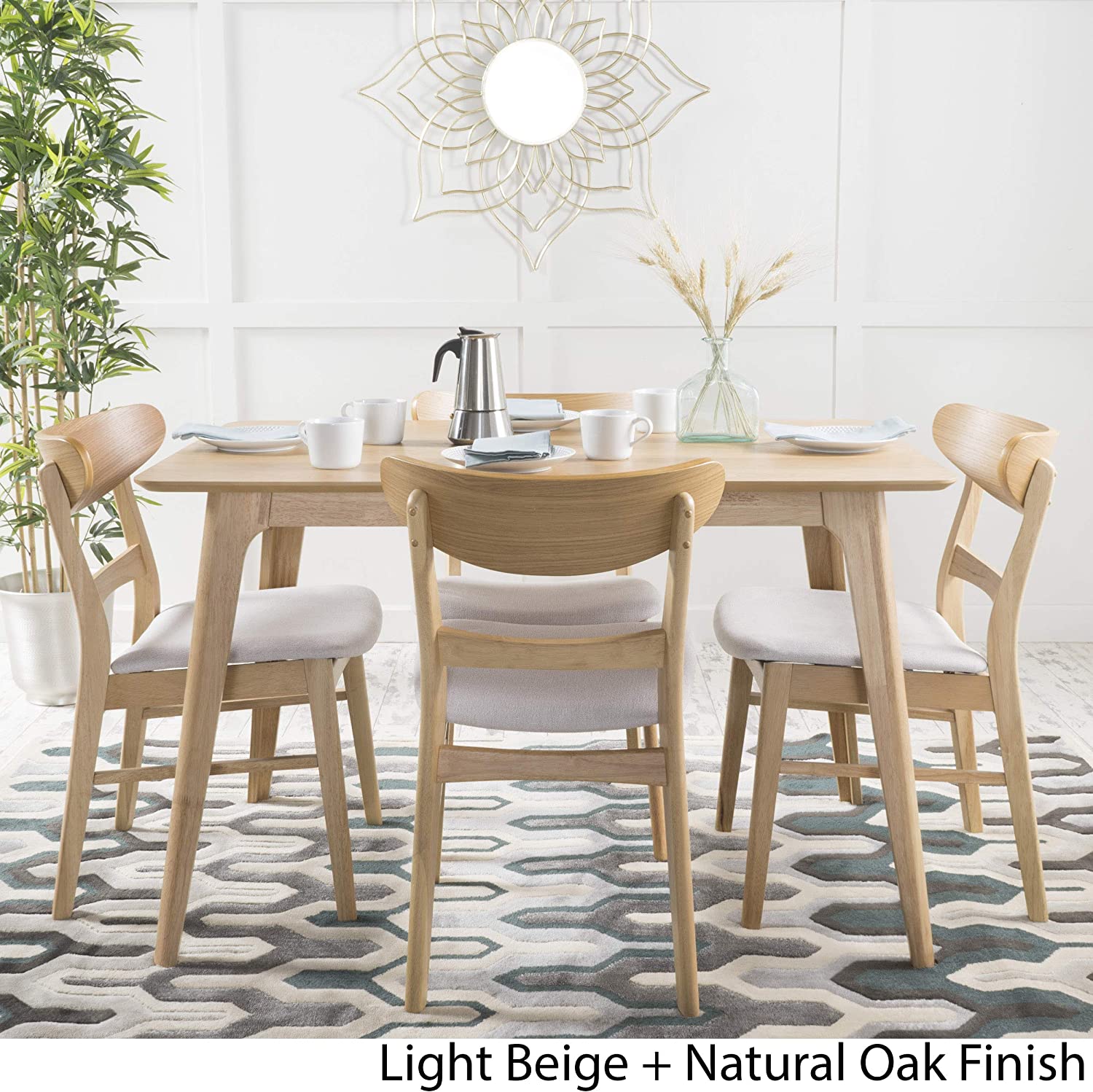 Christopher Knight Home Idalia 50" Rectangular Dining Set, 5-Pcs Set, Natural Oak / Light Beige