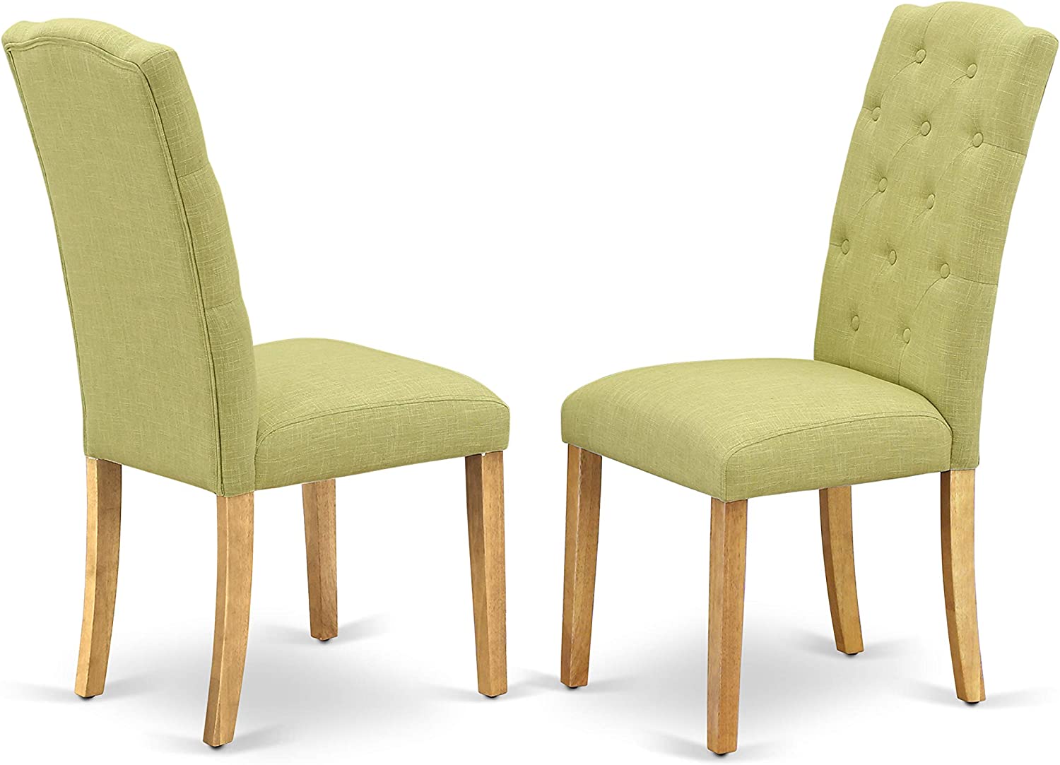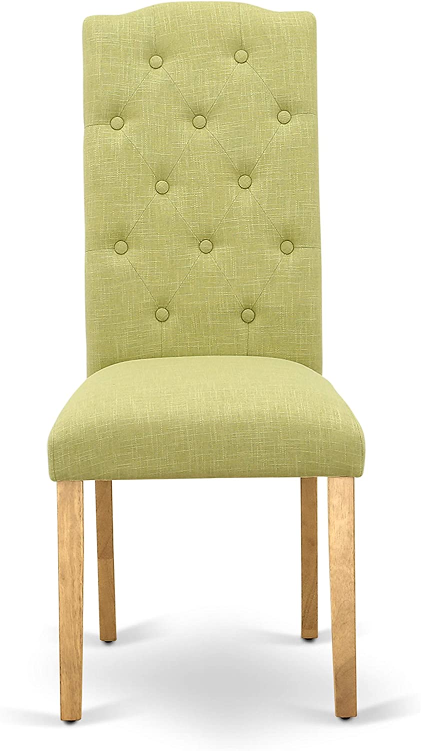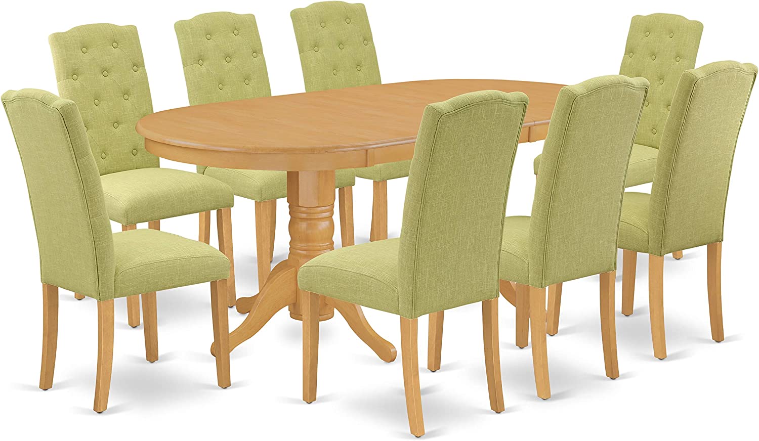 East West Furniture VACE7-OAK-07 7Pc Dinette Set Includes an Oval Dining Table with Butterfly Leaf and Six Parson Chairs with Lime Green Fabric, Oak Finish