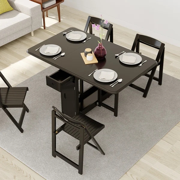57" Modern Solid Wood Folding 5 Piece Dining Table Set Drop Leaf with 4 Chairs