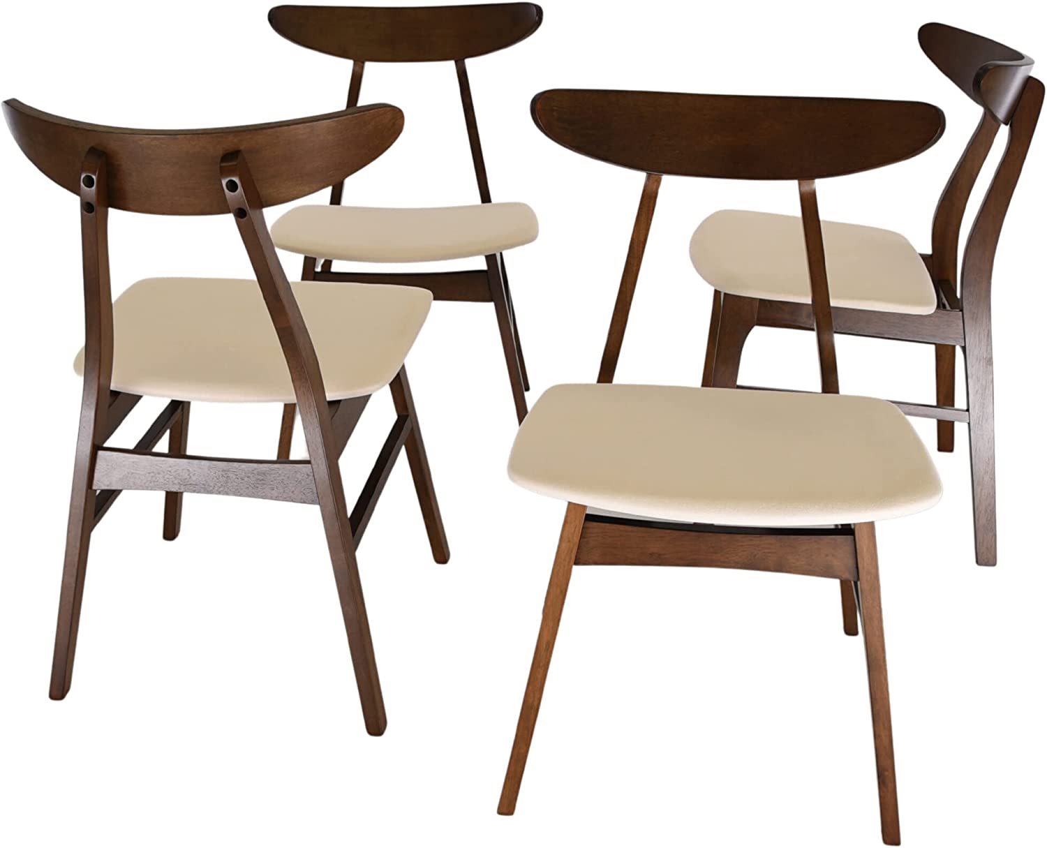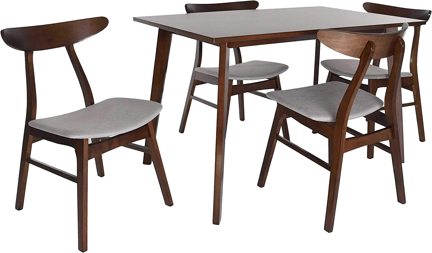 Christopher Knight Home Nissie Mid-Century Wood Dining Set with Fabric Chairs, 5-Pcs Set, Natural Walnut Finish / Mint