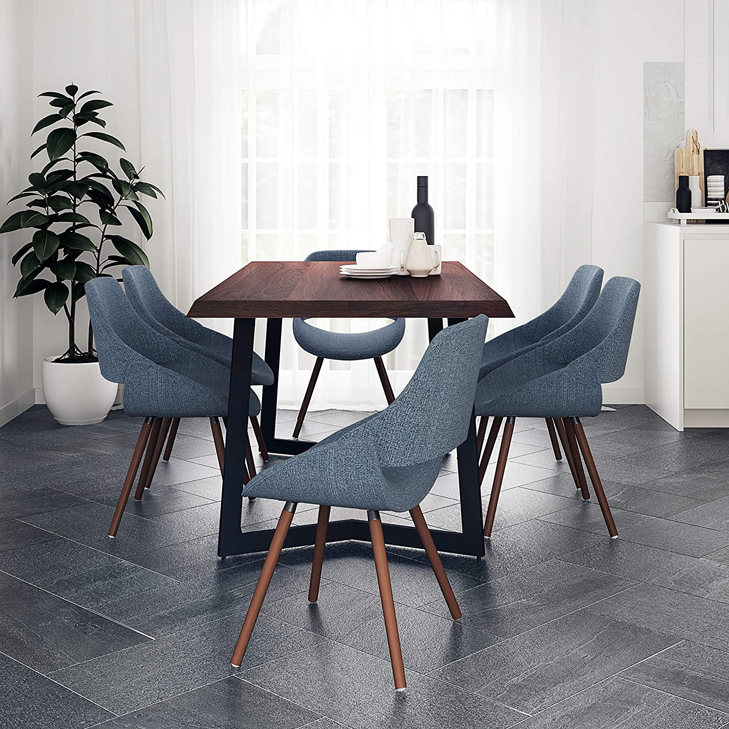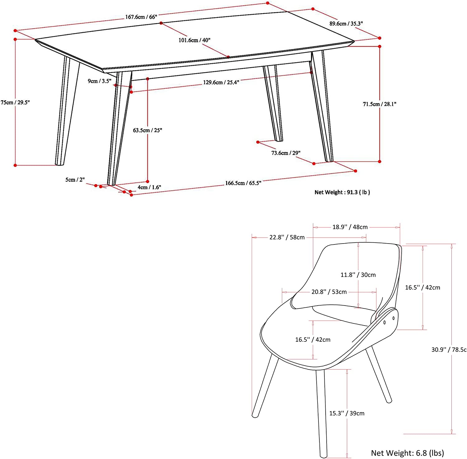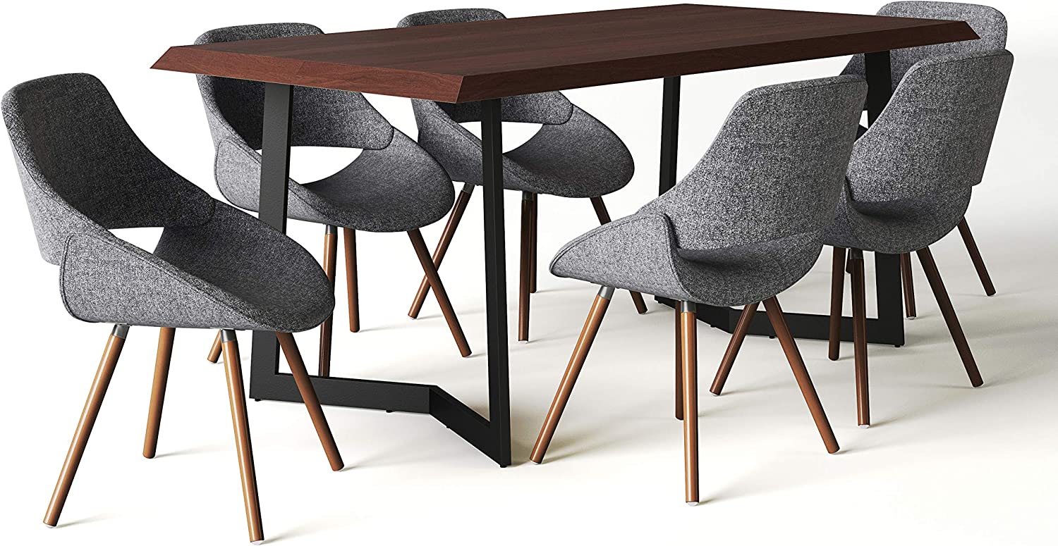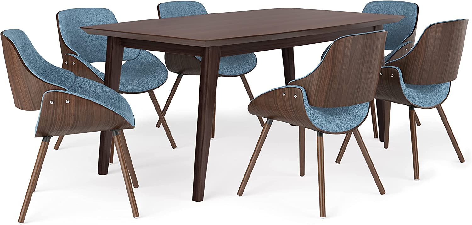 SIMPLIHOME Malden Mid Century Modern V 7 Pc Dining Set with 6 Upholstered Bentwood Dining Chairs in Natural Woven Polyester Fabric and 66 inch Wide Table SOLID MANGO WOOD Full Assembly Required