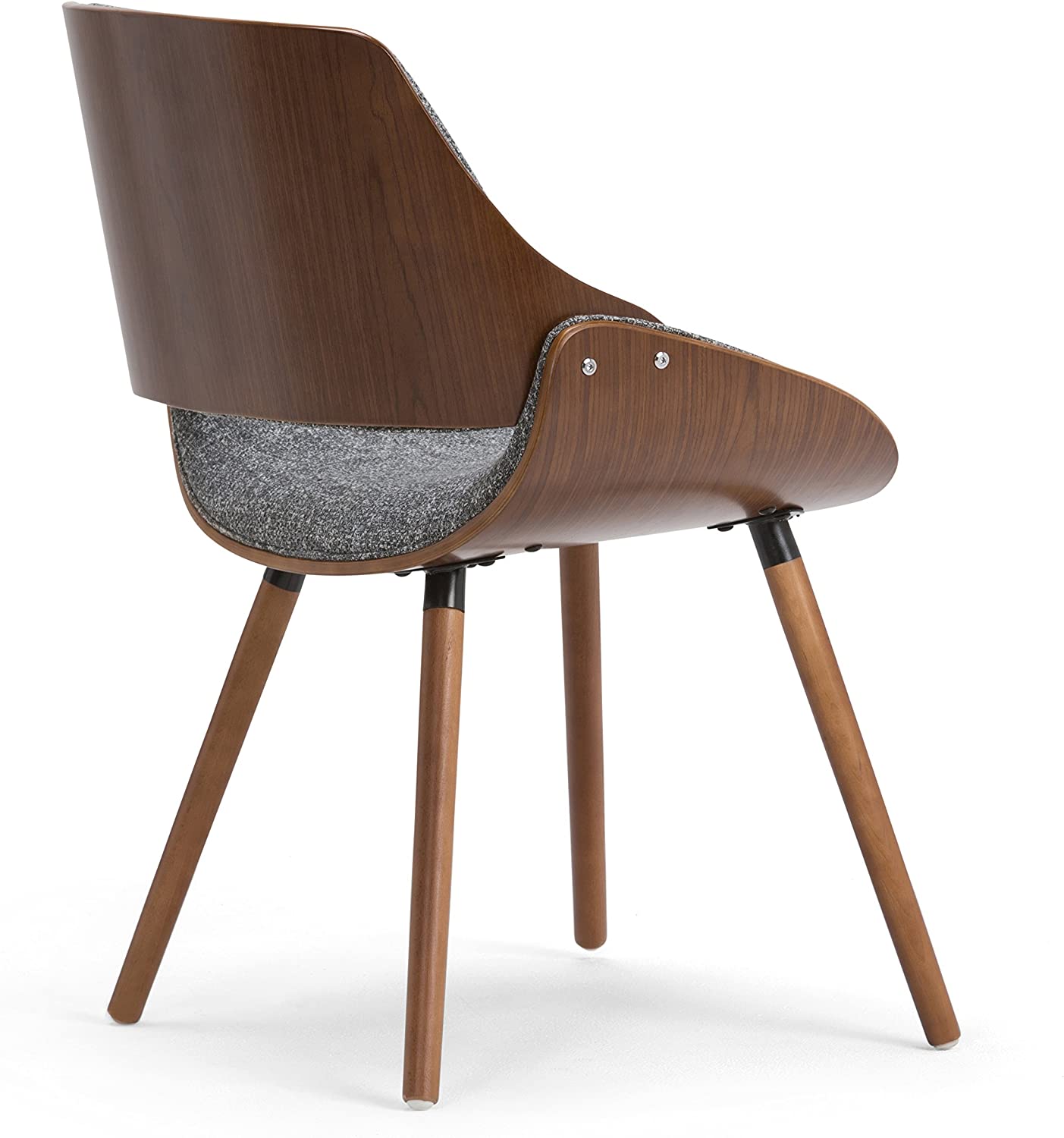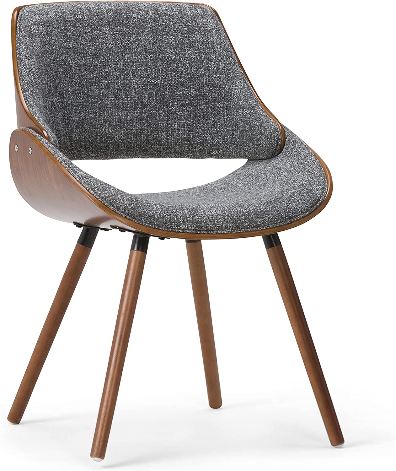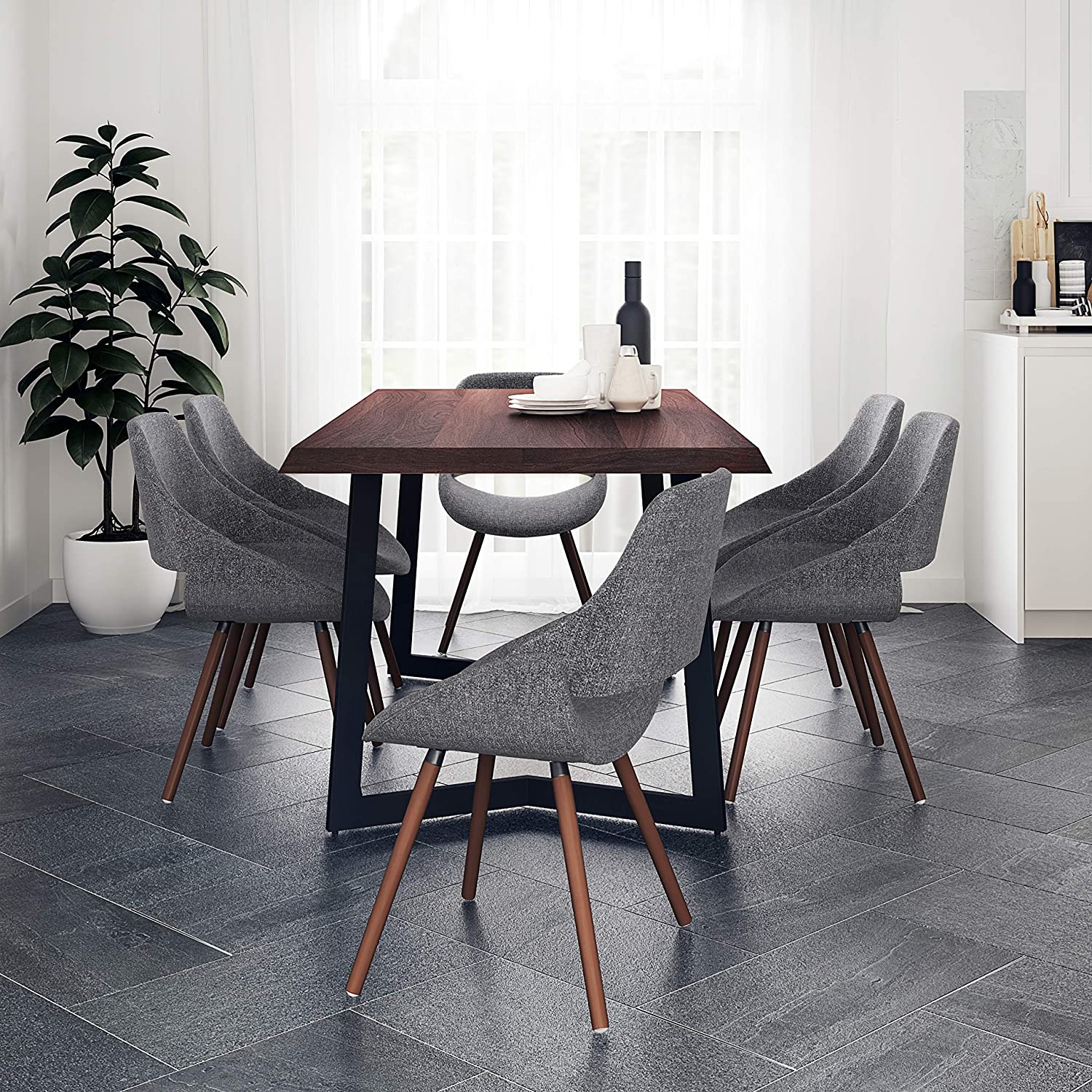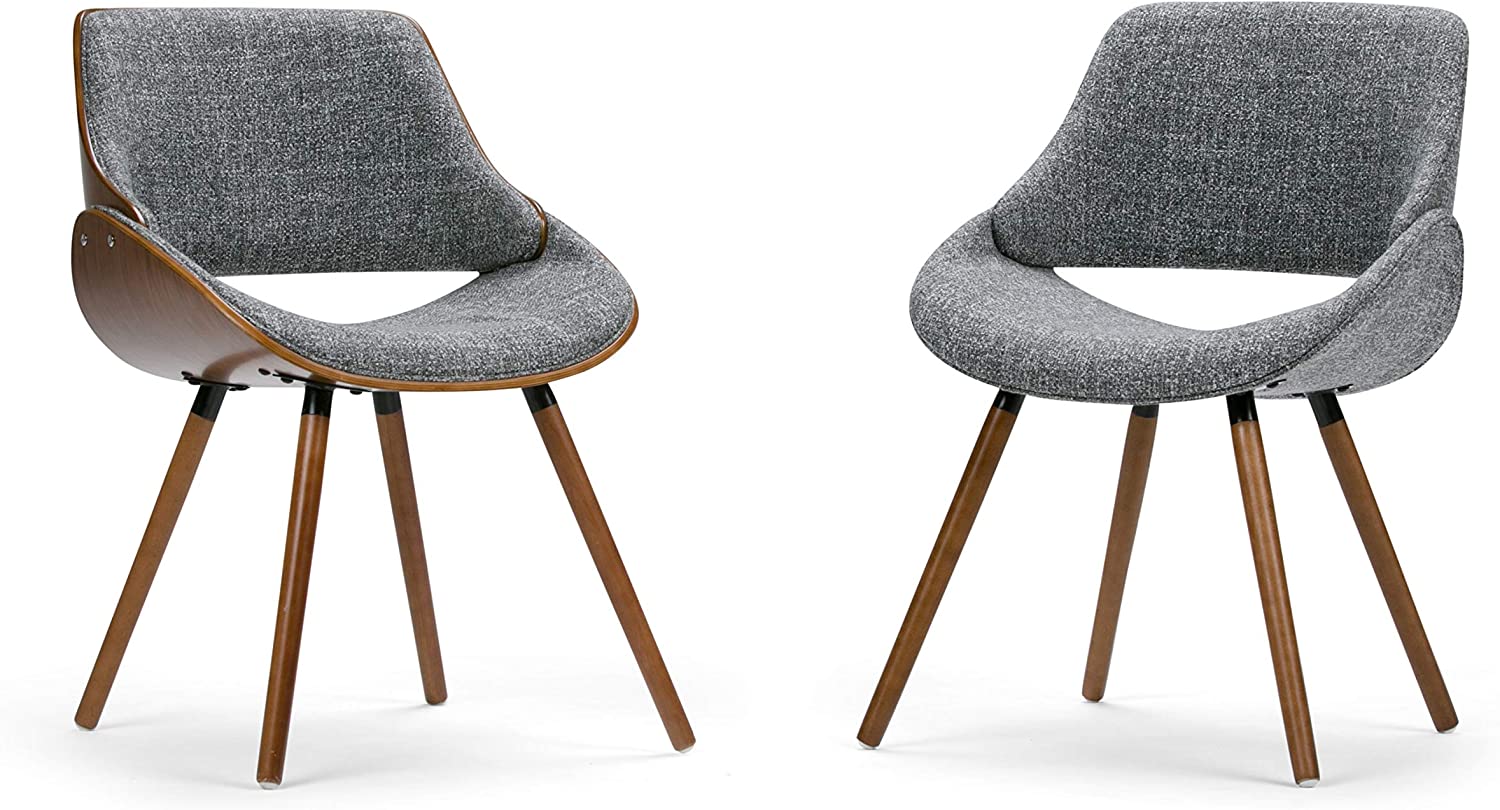 SIMPLIHOME Malden Mid Century Modern V 7 Pc Dining Set with 6 Upholstered Bentwood Dining Chairs in Natural Woven Polyester Fabric and 66 inch Wide Table SOLID MANGO WOOD Full Assembly Required
