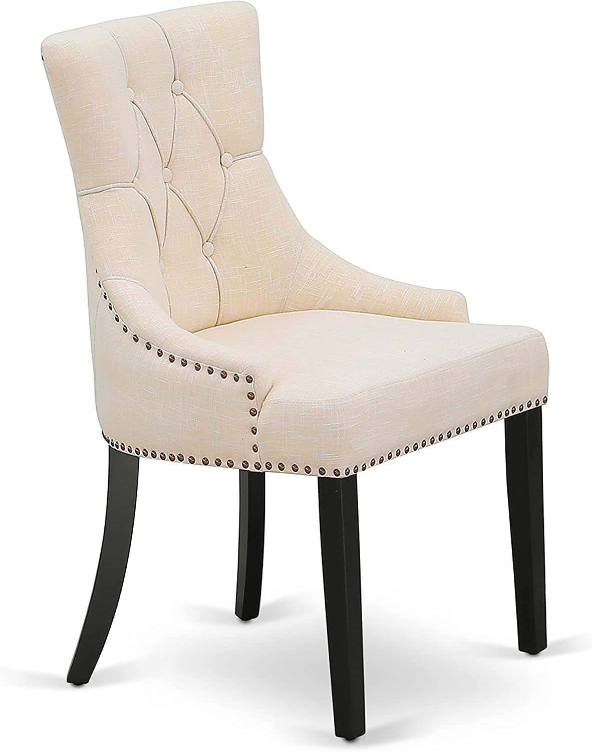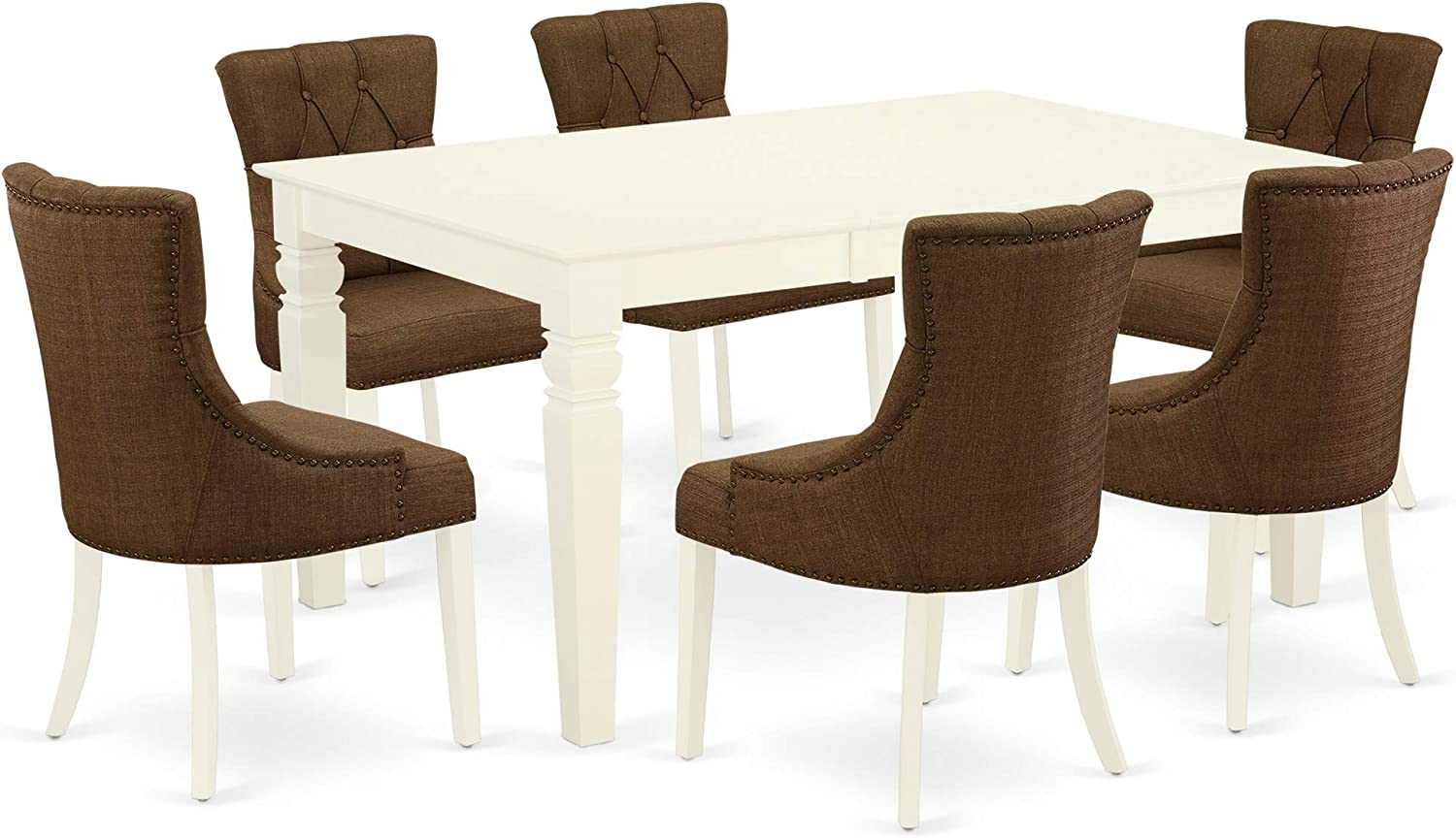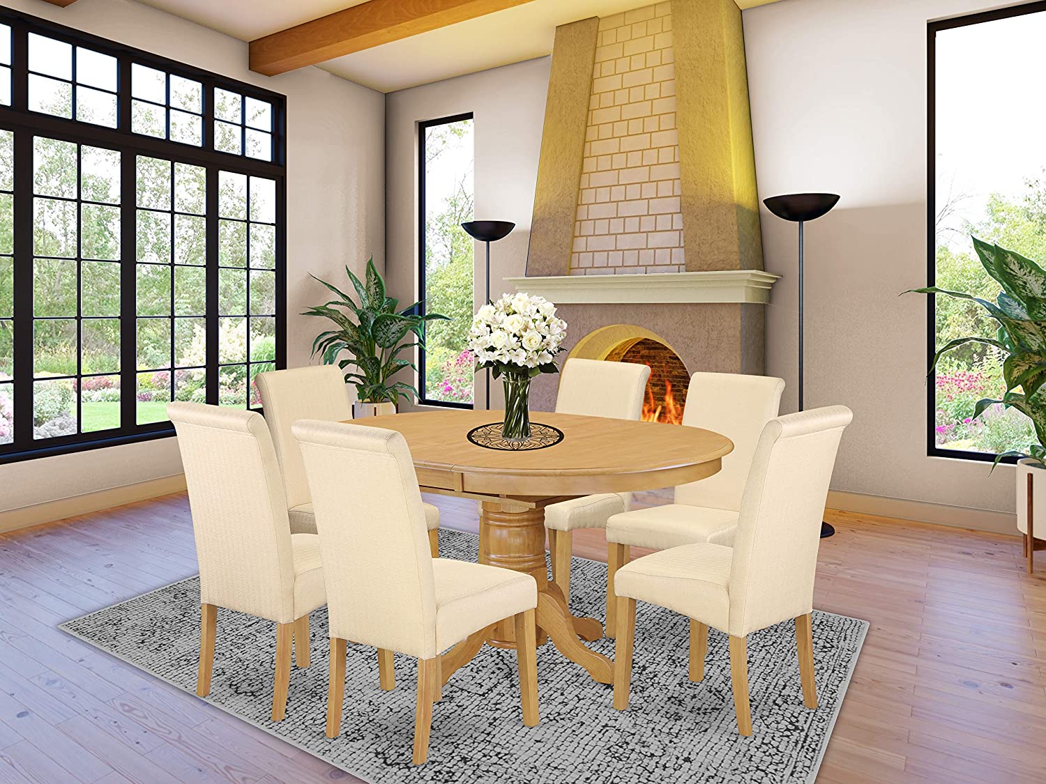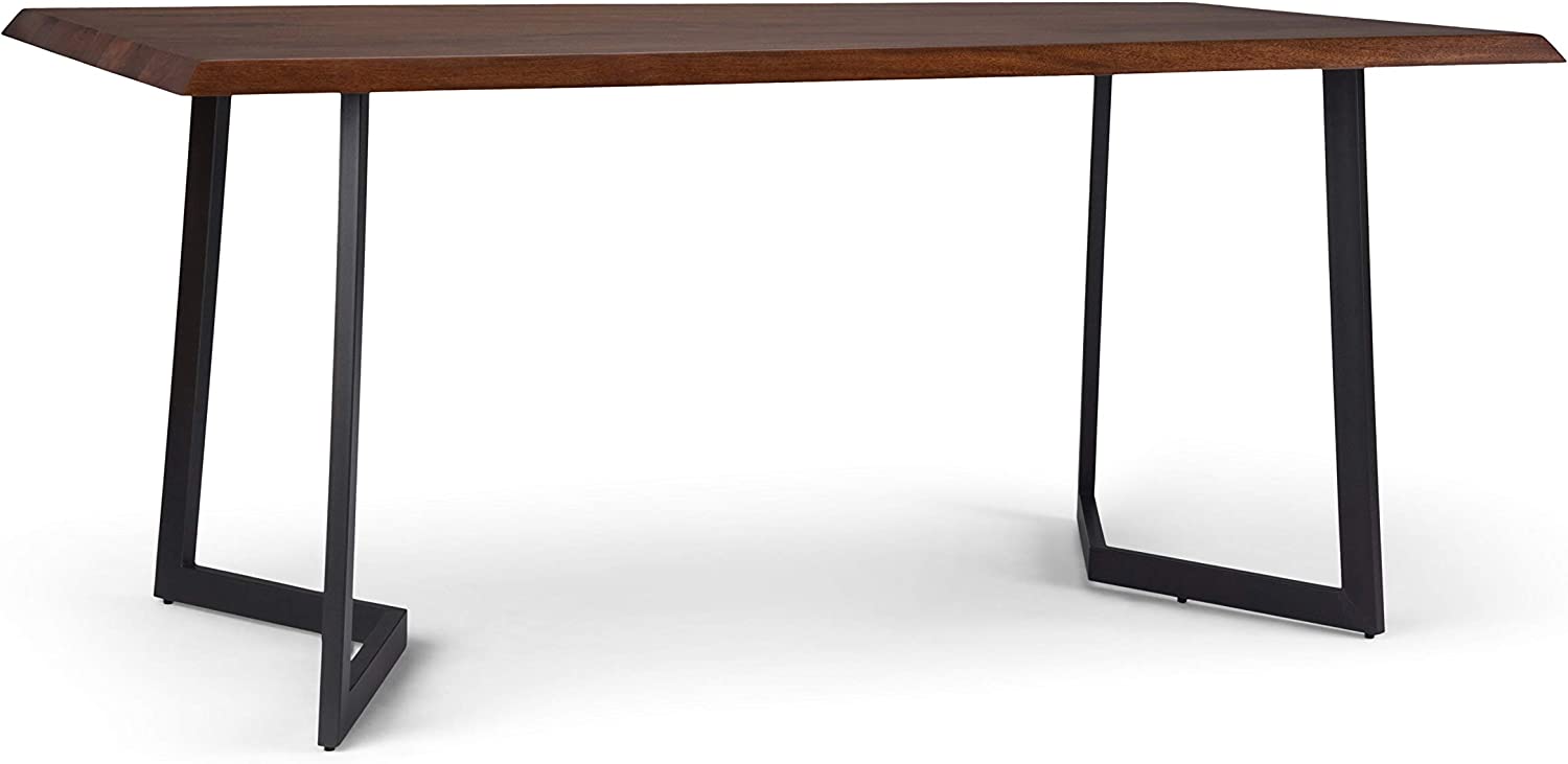 SIMPLIHOME Malden Mid Century Modern V 7 Pc Dining Set with 6 Upholstered Bentwood Dining Chairs in Natural Woven Polyester Fabric and 66 inch Wide Table SOLID MANGO WOOD Full Assembly Required