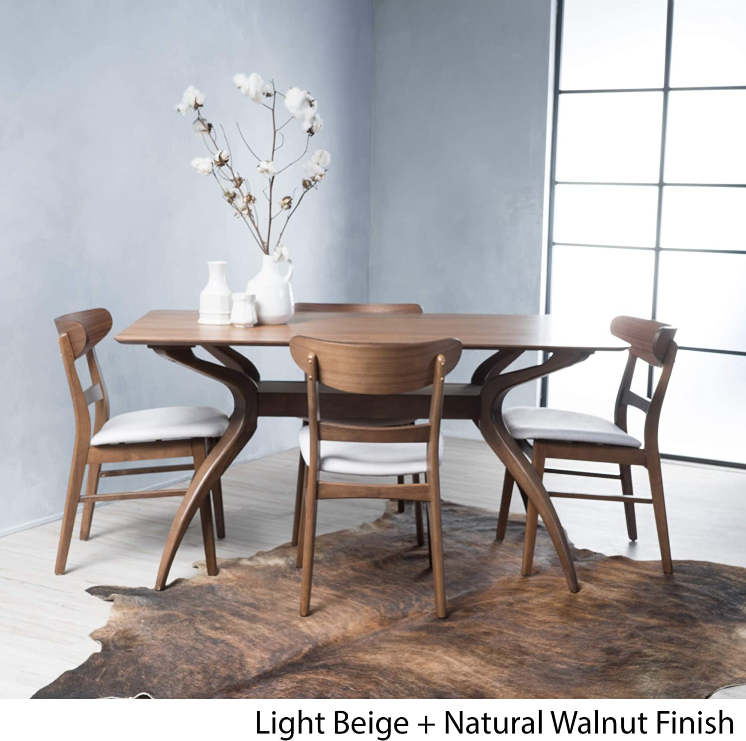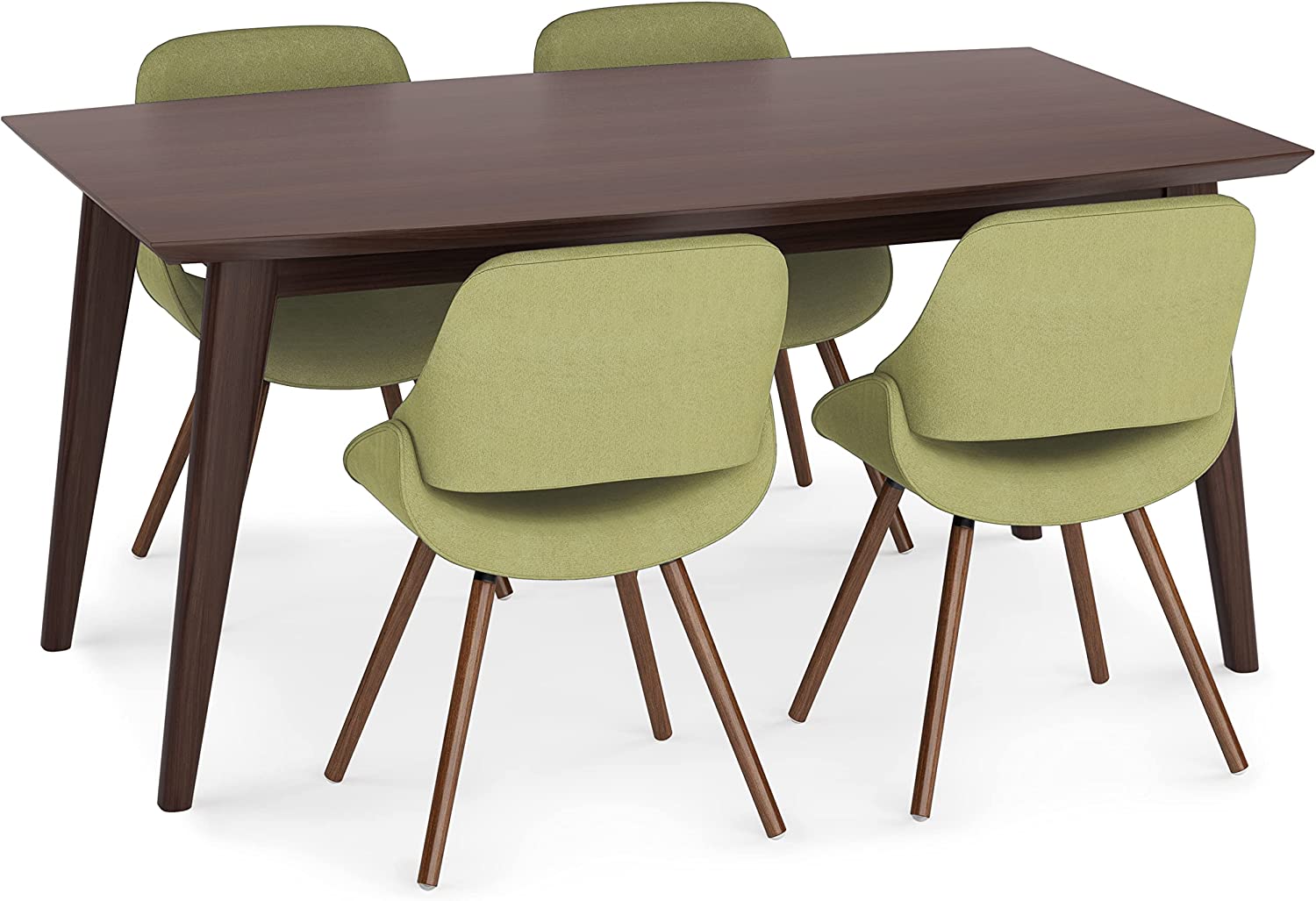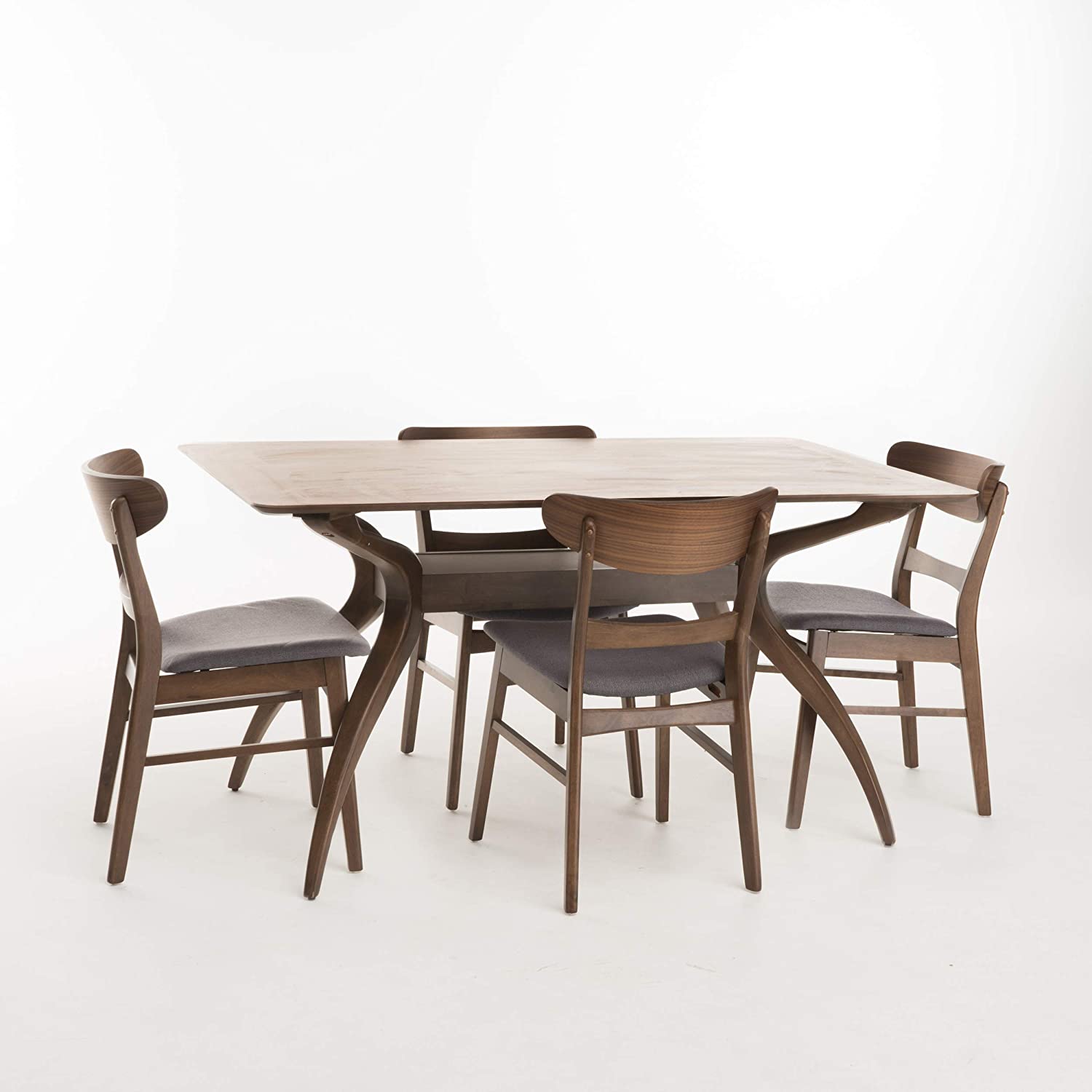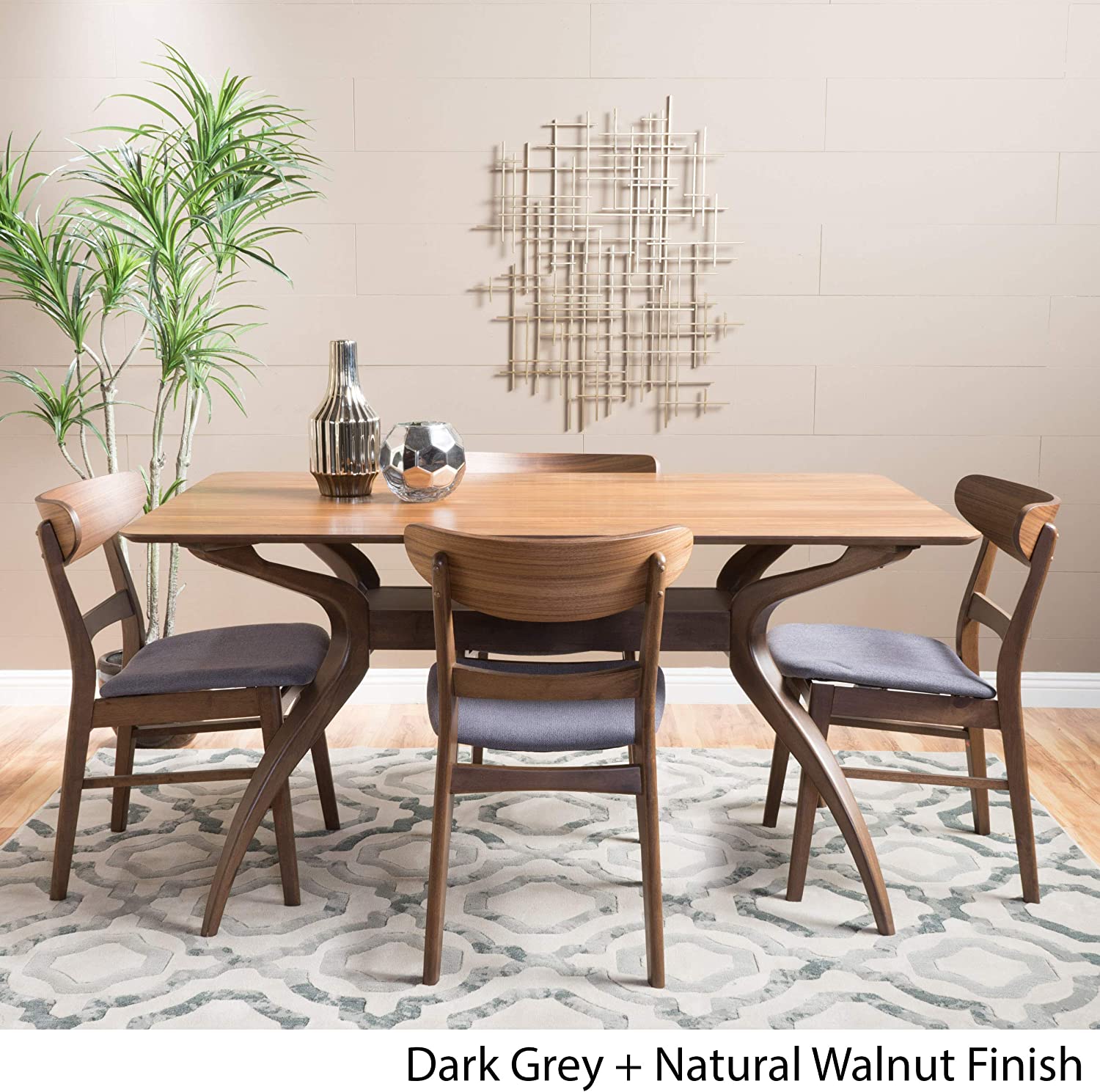 Christopher Knight Home Megann Mid-Century Wood Dining Set with Fabric Chairs, 5-Pcs Set, Natural Walnut / Mint