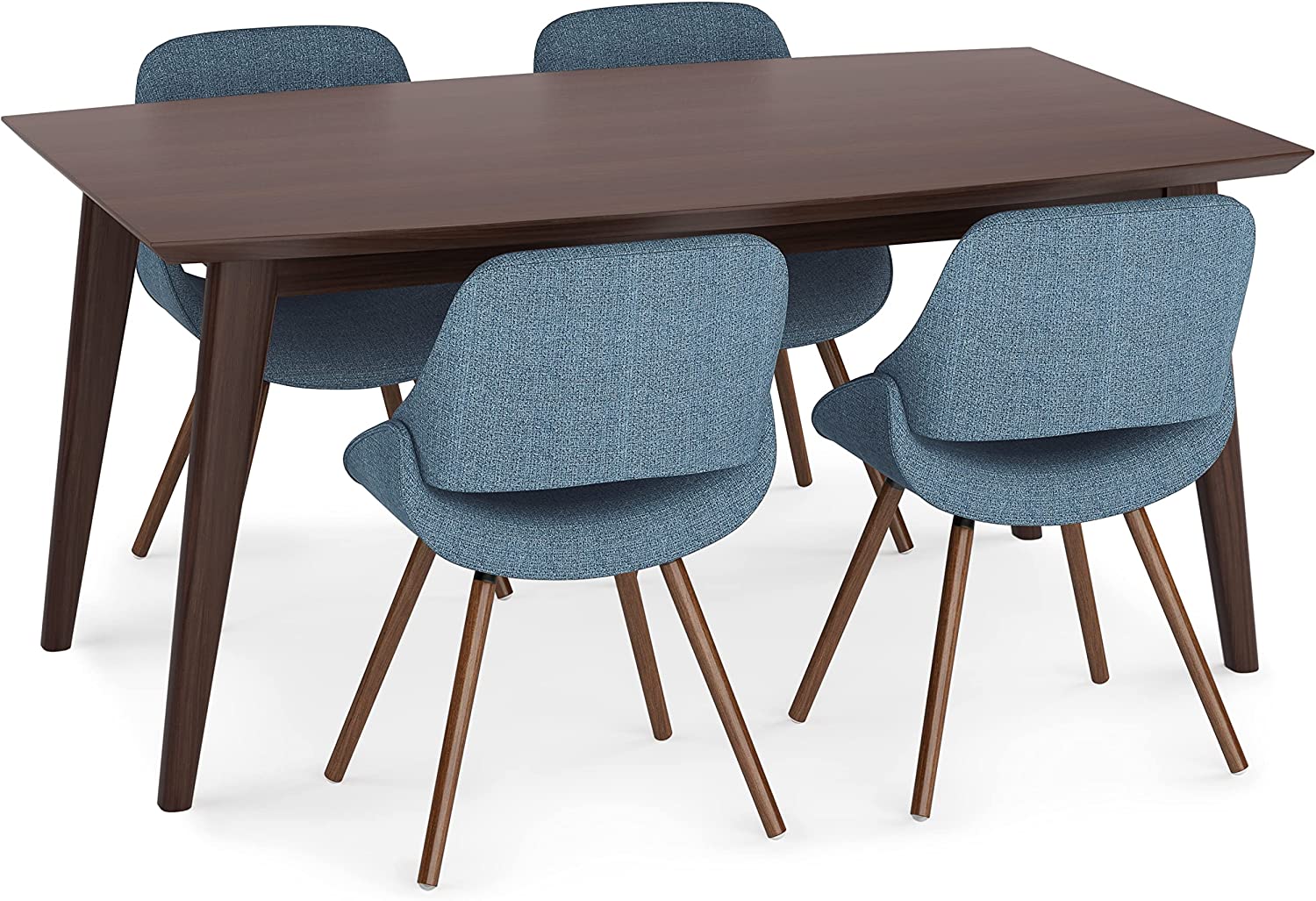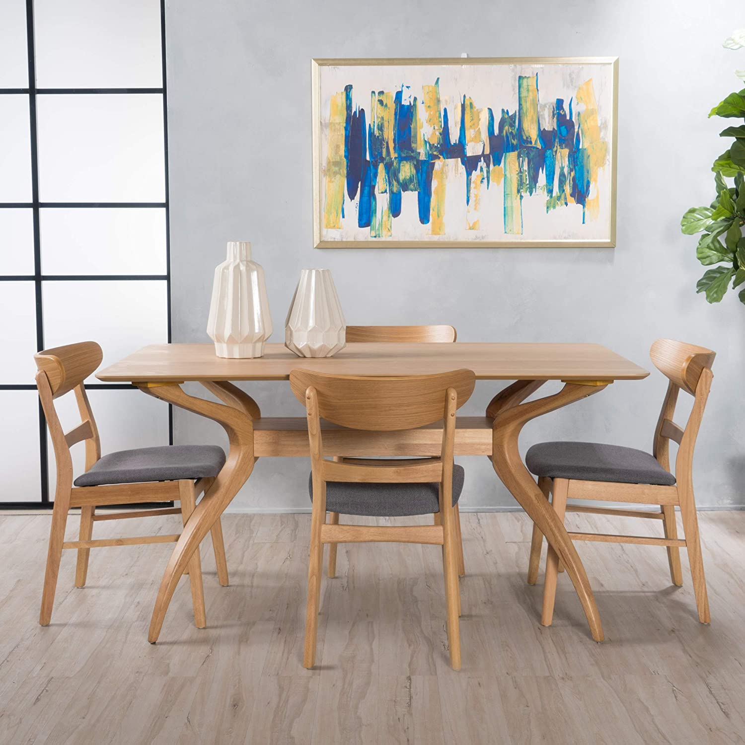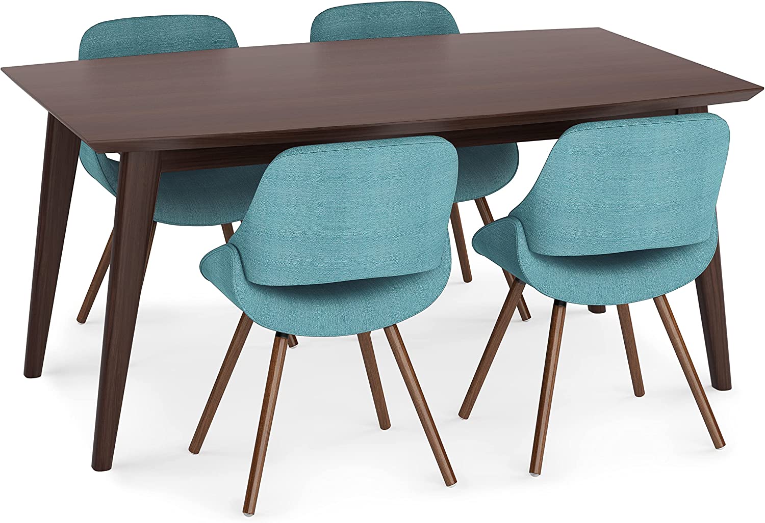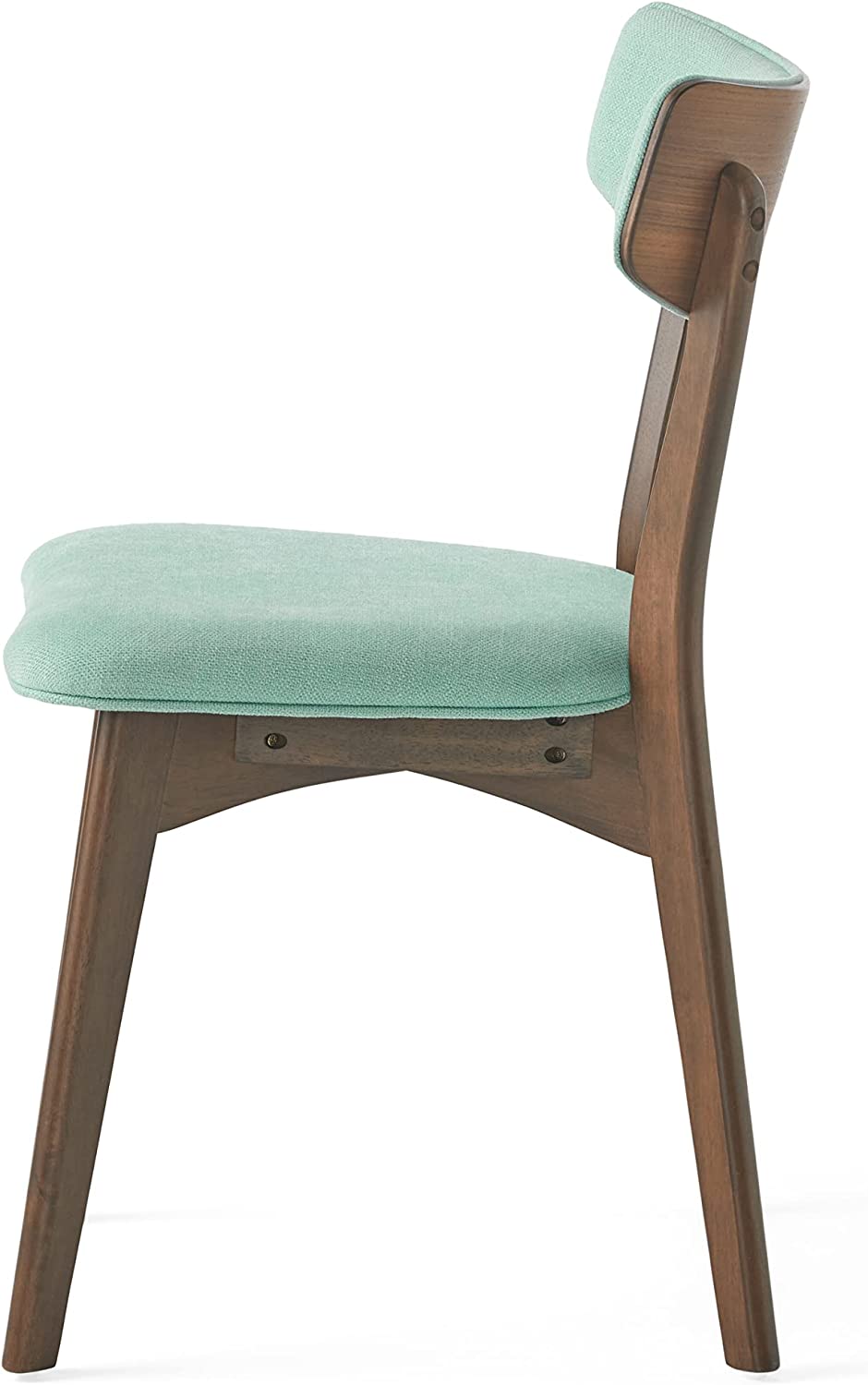 Christopher Knight Home Megann Mid-Century Wood Dining Set with Fabric Chairs, 5-Pcs Set, Natural Walnut / Mint