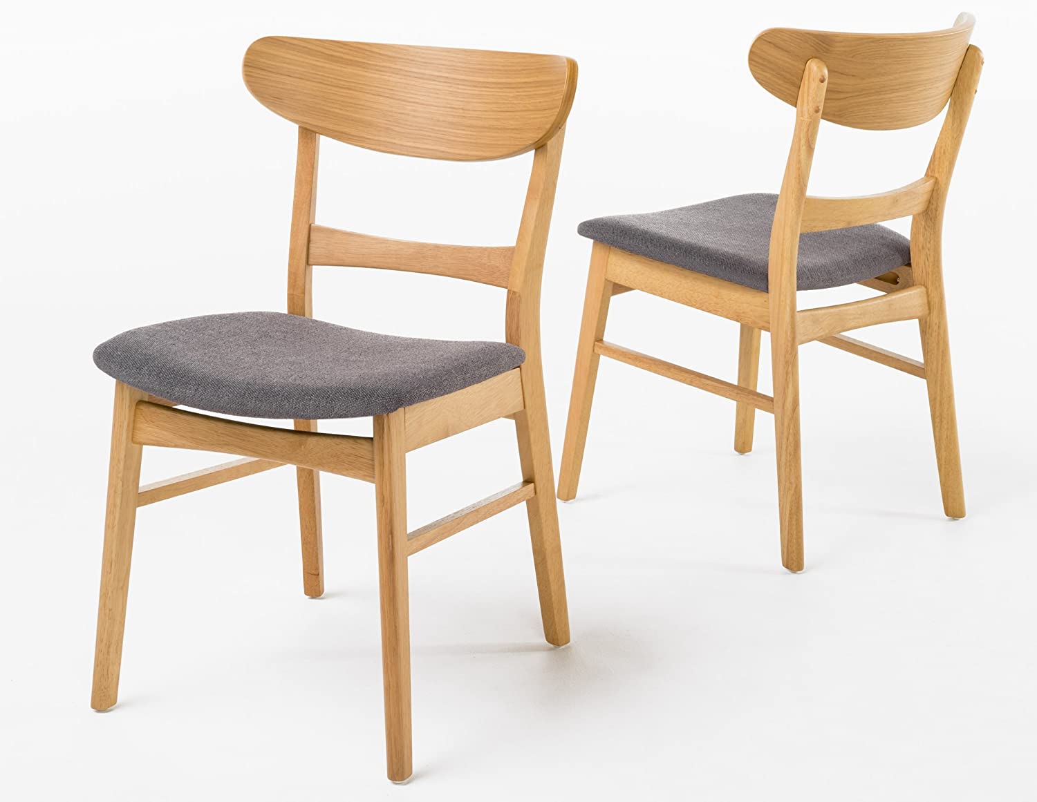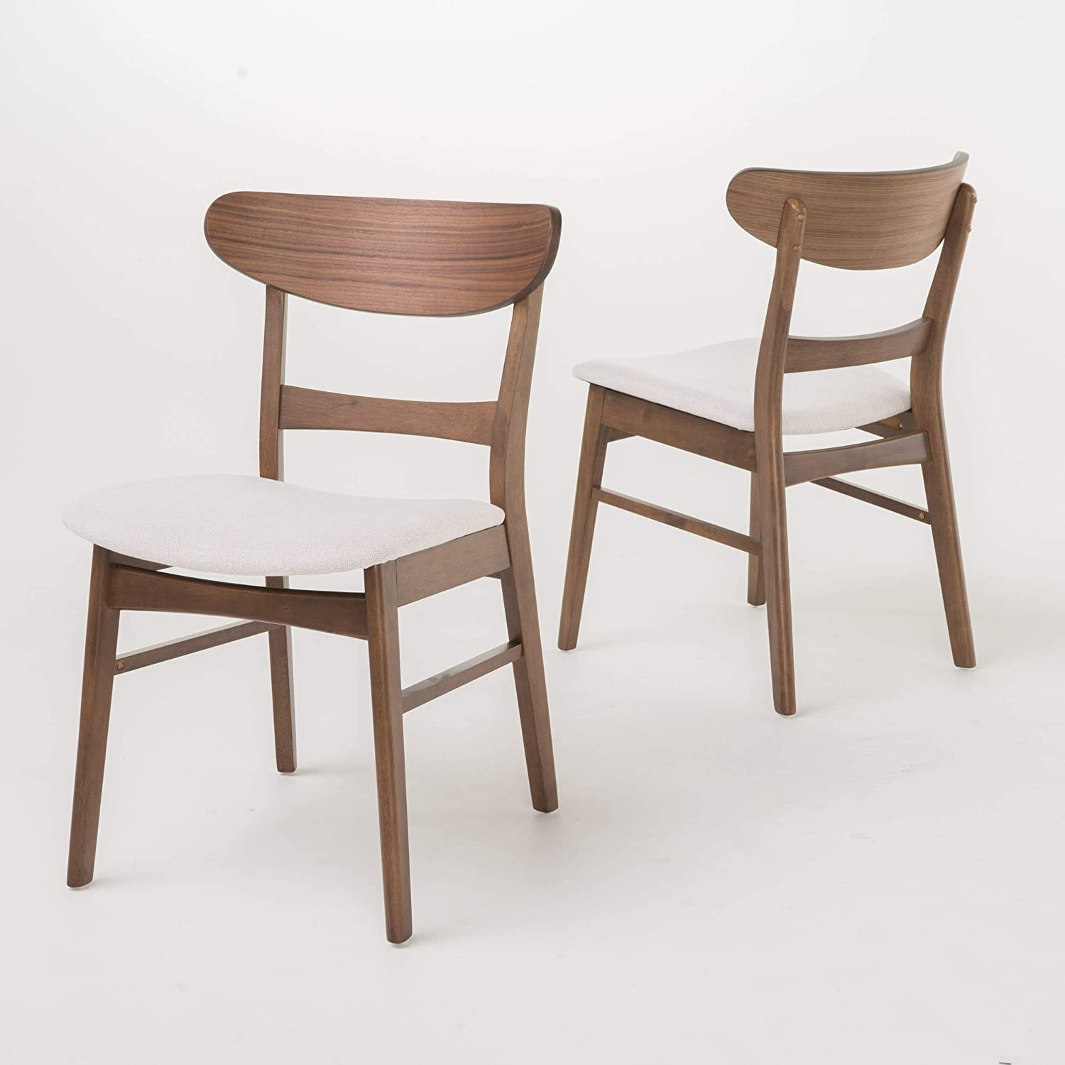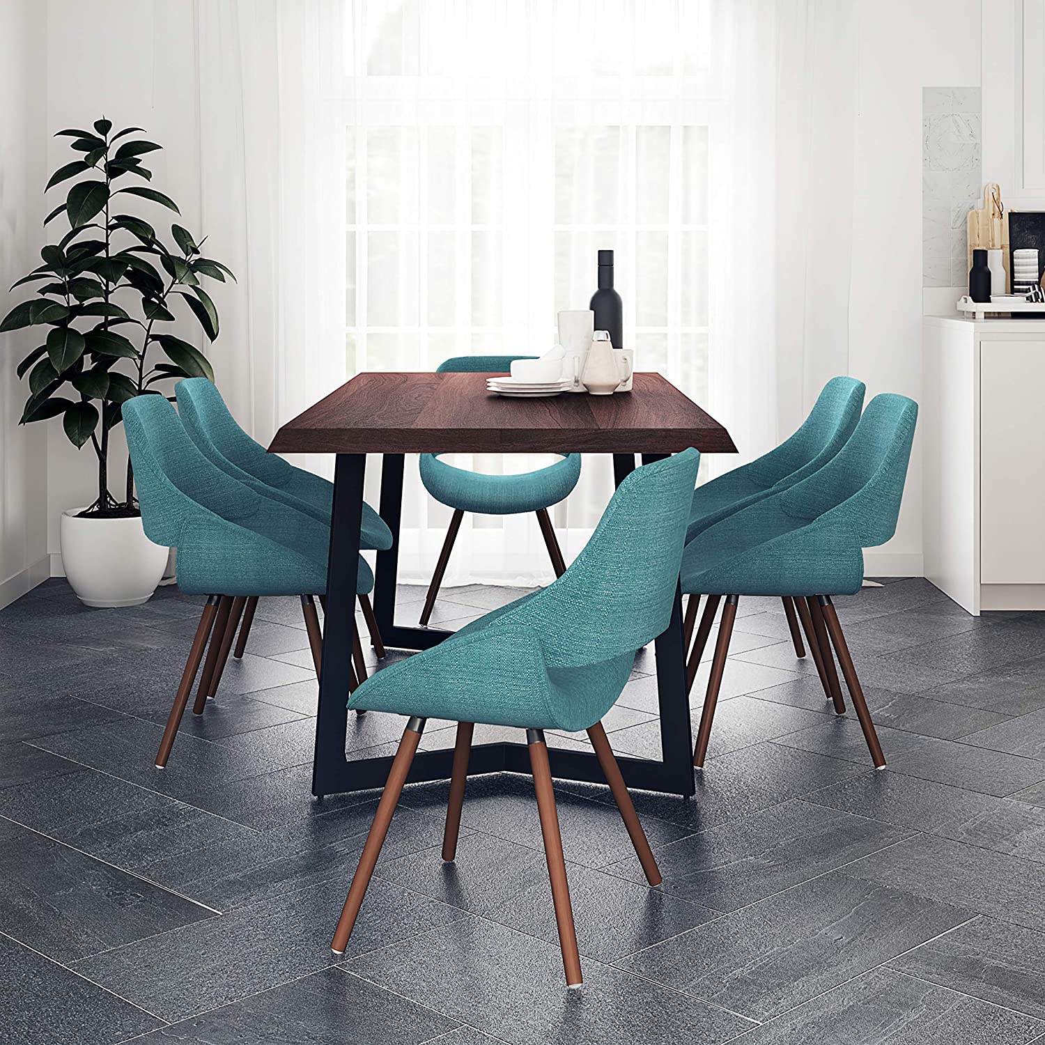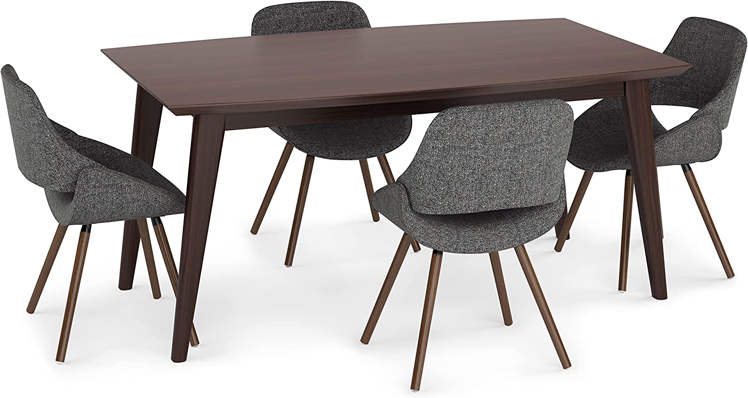 Christopher Knight Home Megann Mid-Century Wood Dining Set with Fabric Chairs, 5-Pcs Set, Natural Walnut / Mint